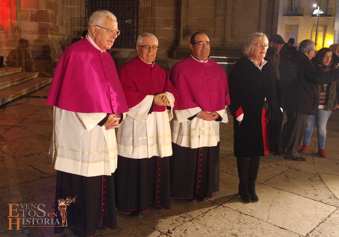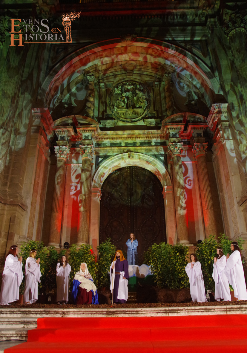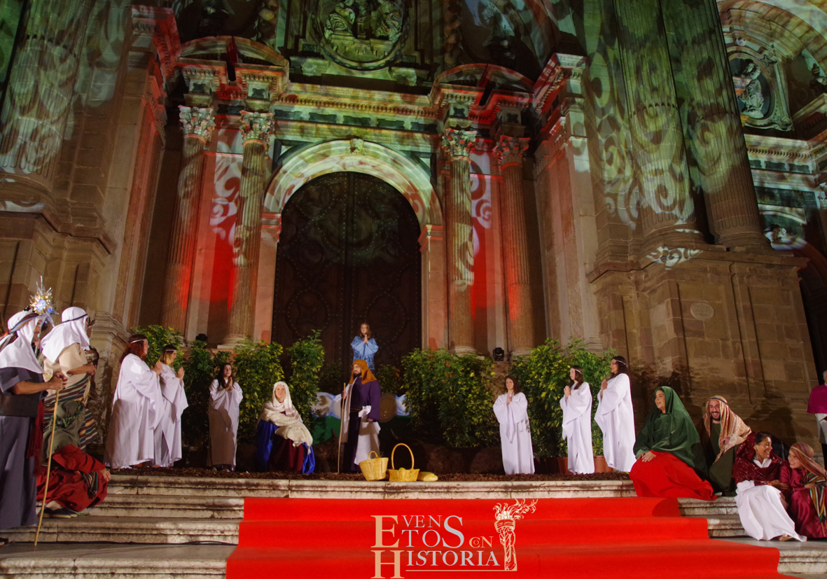 Voces blancas (del Orfeón Universitario de Málaga) solemnizaron este evento tan importante que fue narrado ante un nutrido aforo que se congregó en la Plaza del Obispo. Pudieron contemplar cómo la catedral se vistió de gala luciendo una artística iluminación en su fachada que envolvió de magia este espectacular momento.