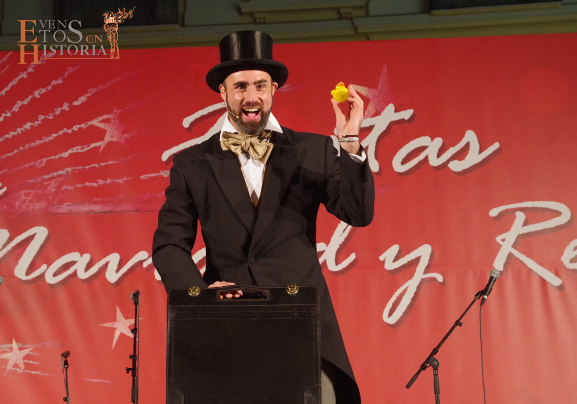 La presentación corrió a cargo del humorista Justo Gómez, que hizo referencia a la trayectoria de Eventos con Historia y destacó nuestro papel en las visitas teatralizadas en el Cementerio Histórico San Miguel.