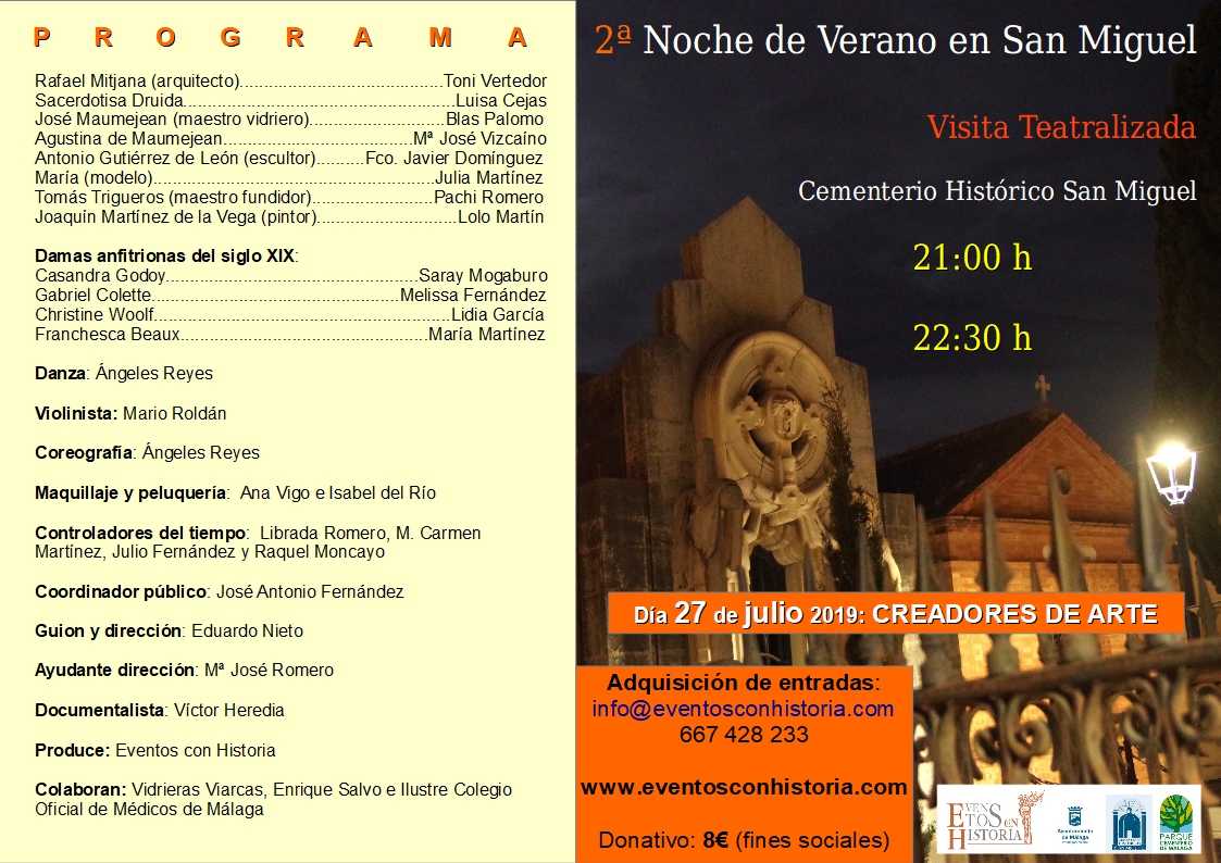 Con gran sobrecogimiento terminaba esta noche de verano. Eduardo Nieto pronunció unas palabras finales, presentando al gran elenco de artistas y al equipo de Eventos con Historia. Asimismo, adelantaba el contenido de nuestra próxima Noche de Verano el 31 de agosto que nos llevará a la Málaga industrial de los años 50 donde haremos un guiño al mundo del circo, entre otros episodios destacables, y quizás olvidados, de personas que hicieron grande a Málaga.