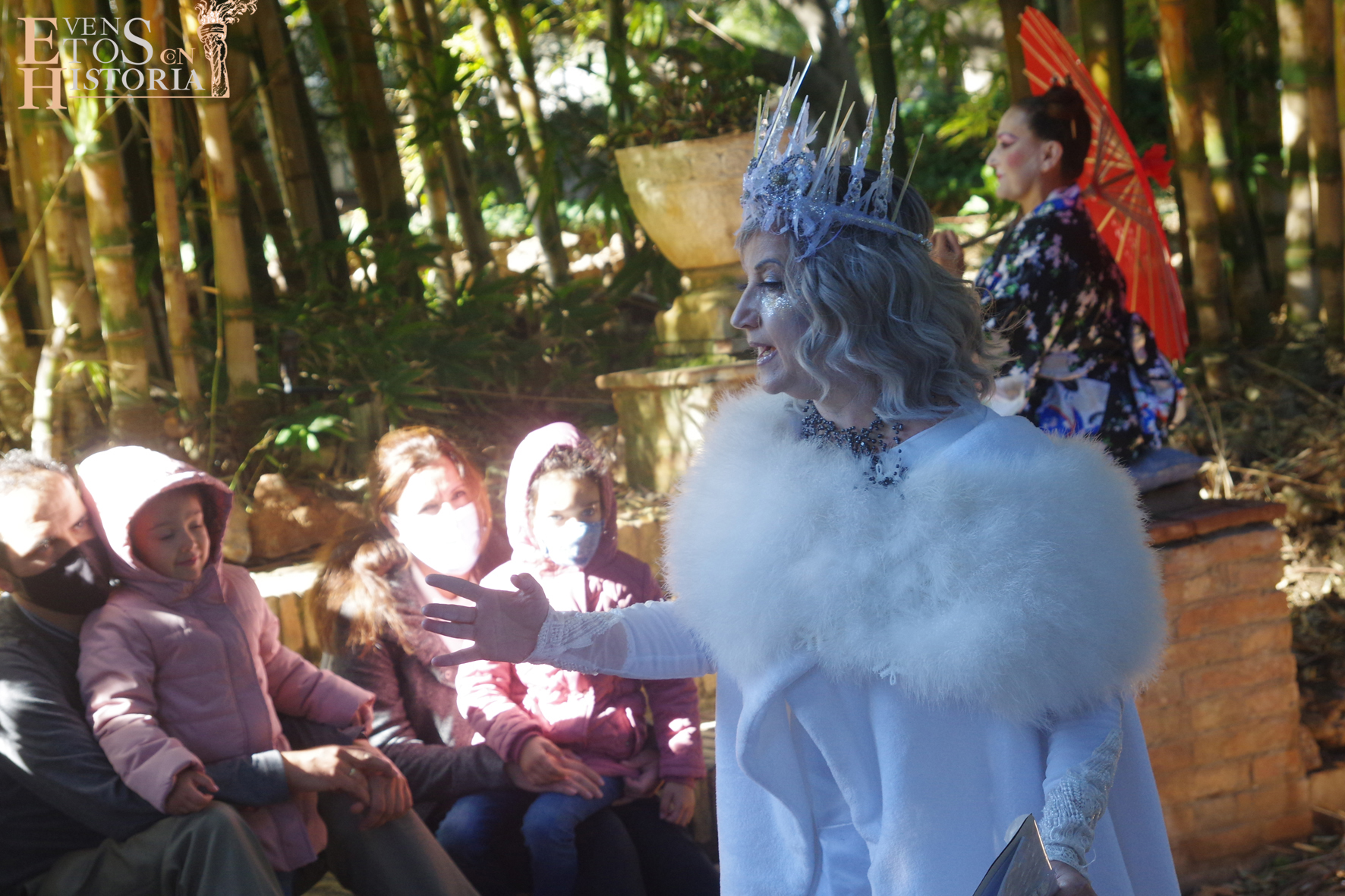 Según el pase, ya que había dos cada mañana, fueron recibidos por La Sirenita o por la Reina del Hielo. Fueron los personajes que pidieron por favor a su creador, Andersen, que querían ser ellas quienes contaran sus maravillosos cuentos. La una, porque al fin podía caminar al llegar al mundo de las hadas, y la otra, porque no quería perderse un jardín tan extraordinario, pues el verde le llamó poderosamente la atención.