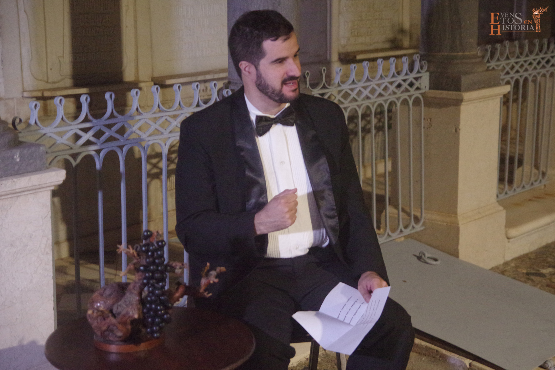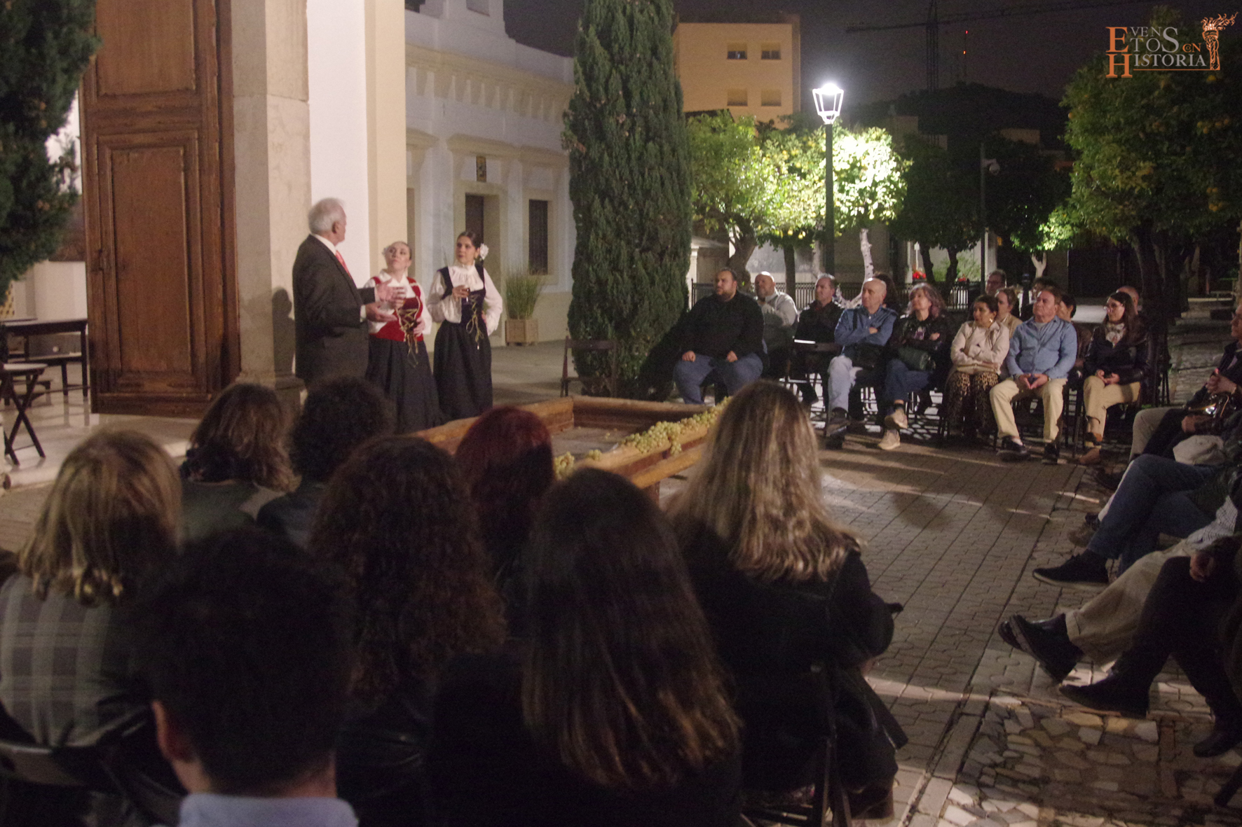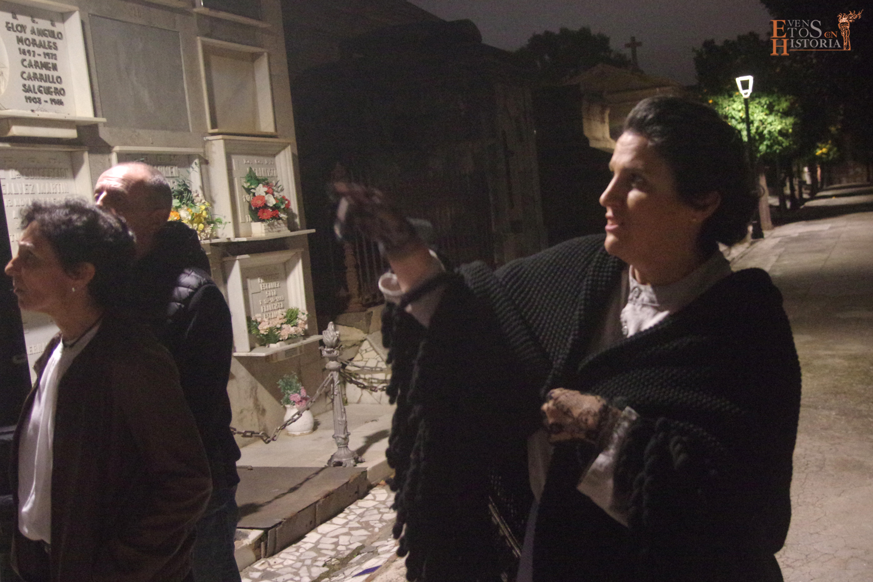 Es por ello que rescatamos de la historia a personajes relacionados con el mundo del vino y las pasas. Cuatro anfitrionas trabajadoras en este gremio acompañaron a los 100 asistentes por los mausoleos de distintas familias bodegueras que se encuentran en este espacio tan singular con una explicación basada en la documentación del profesor de la Universidad de Málaga Francisco José Rodríguez Marín. Los actores dieron vida a Narciso Díaz de Escovar, José Aurelio Larios, a Baldomero Ghiara, a Carlos Juan Krauel y a Quirico López junto a sus dos sobrinas, Trini y Rita.