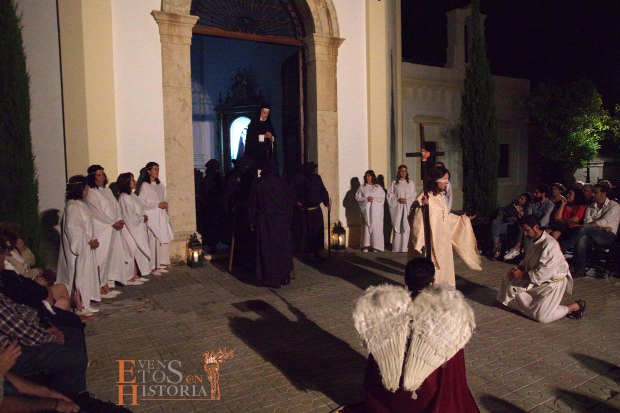 Las tres representaciones que se llevaron a cabo estuvieron cargadas de acción, de mensajes profundos, de sorpresas… Los espectadores pudieron contemplar una procesión de flagelantes de época medieval, una lucha sin cuartel entre seres oscuros y seres de luz, un hombre atormentado por la duda y la espectacular escena del trono de una Virgen María viviente, vestida al estilo del medievo y llevada por hombres que usaban correajes y horquillas como era costumbre en esa época. Una escena impactante, que ponía el punto y final al tiempo de hacer la aparición la mismísima Fe.