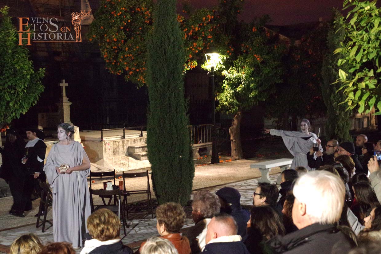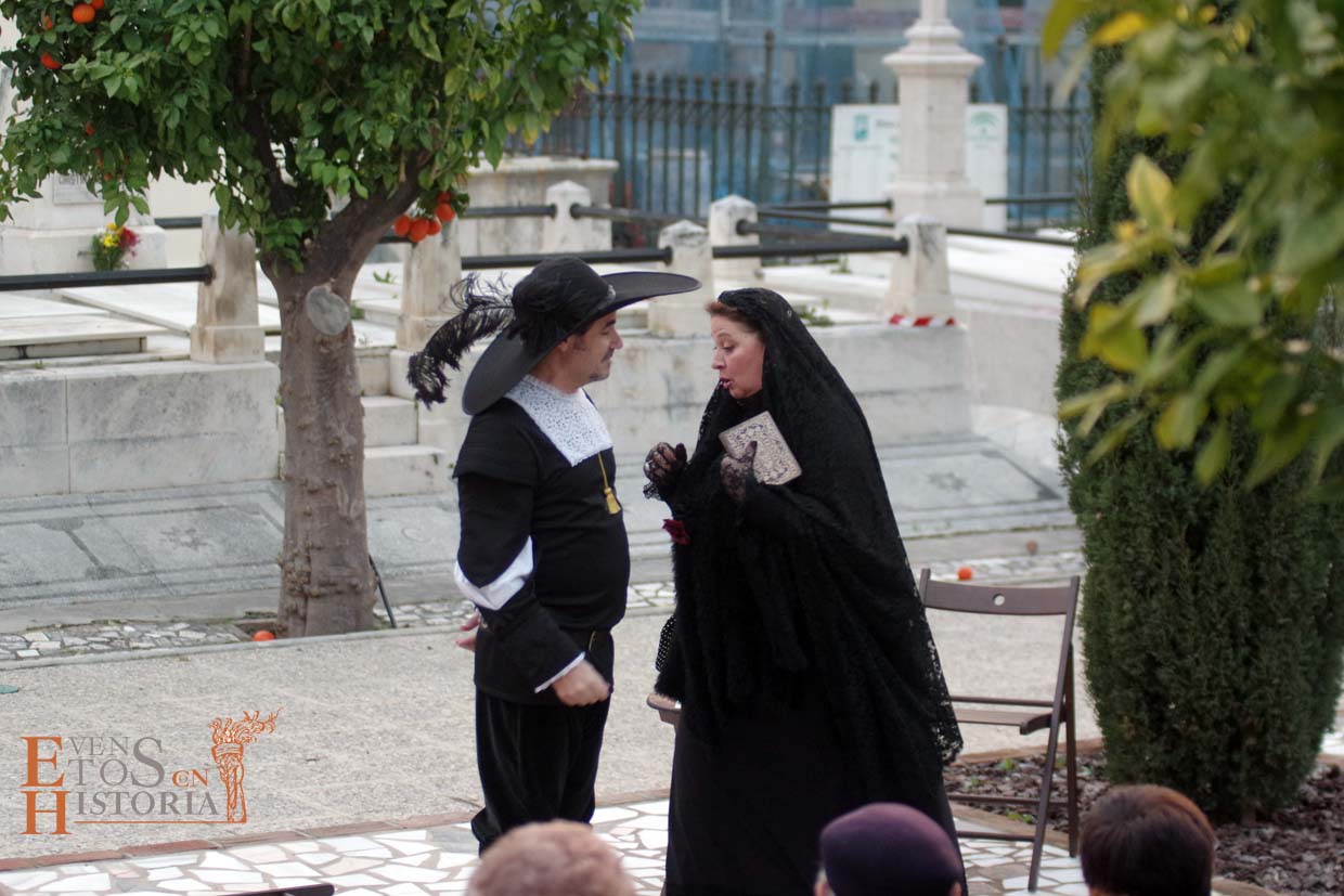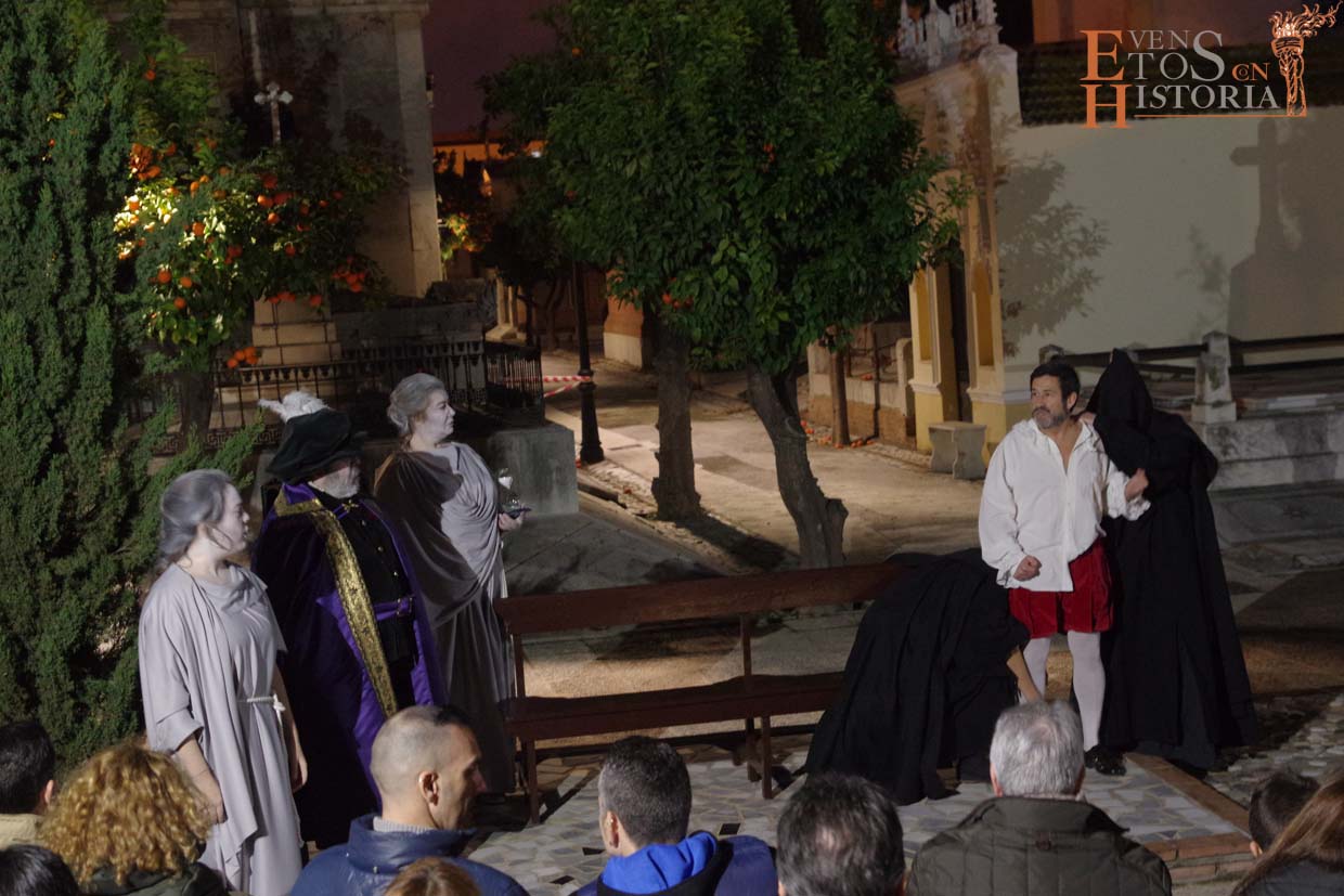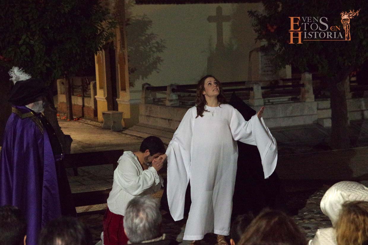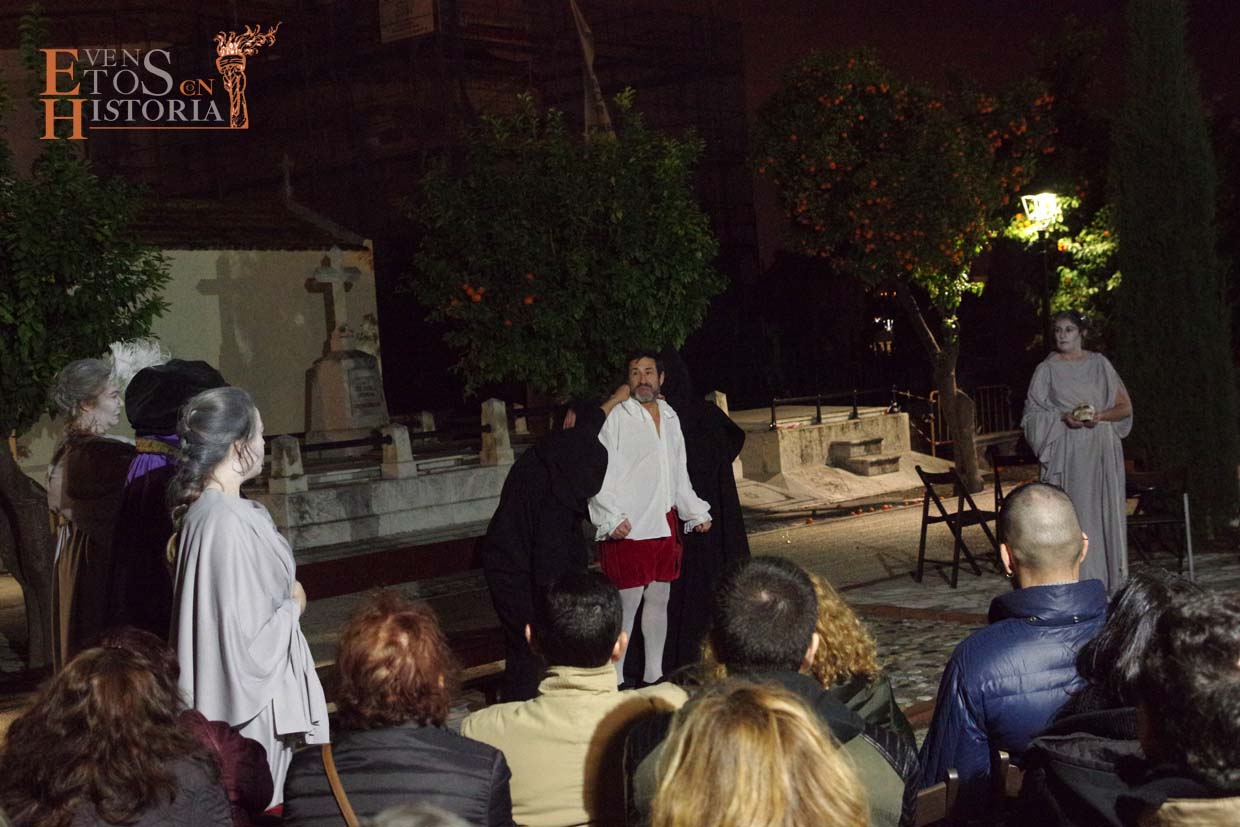 La lluvia se rindió al amor y quiso que la pareja de enamorados más famosa de nuestra literatura romántica brillara en el incomparable marco de la avenida de cipreses del cementerio histórico de San Miguel. Como dijo Dña Catalina: ‘el amor todo lo puede’. Y el tiempo permitió que el público se deleitase con las ESTAMPAS DEL TENORIO con motivo del día de San Valentín. Hasta Venus se asomó desde el cénit para honrar a los enamorados.
