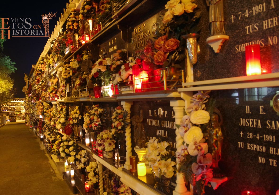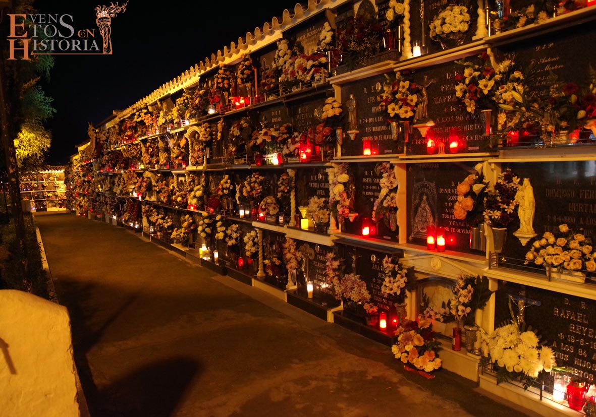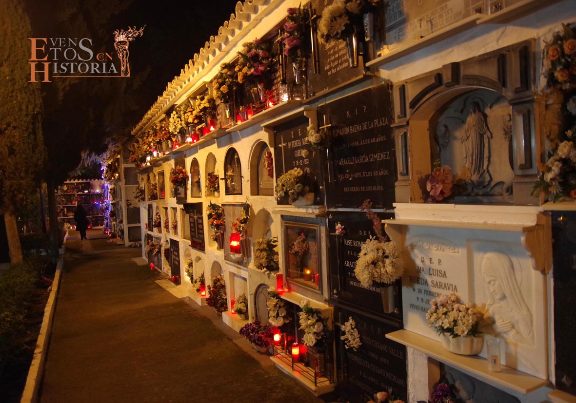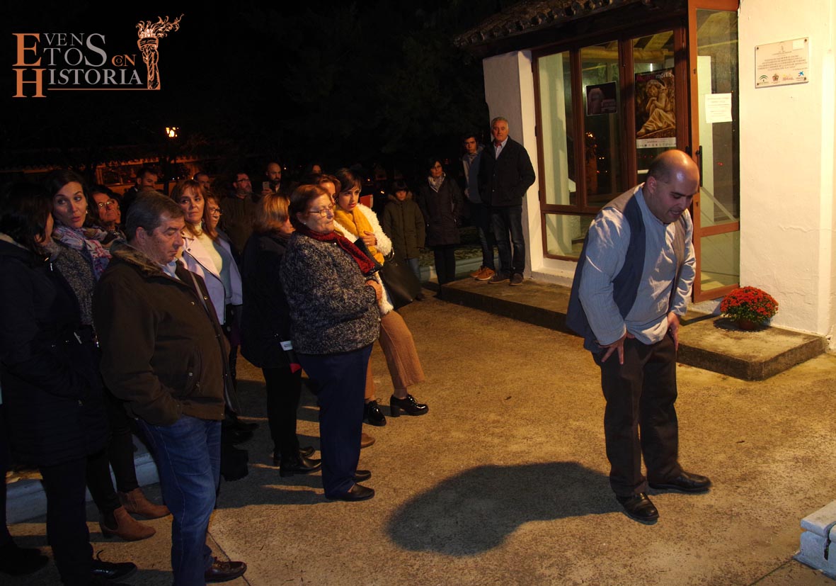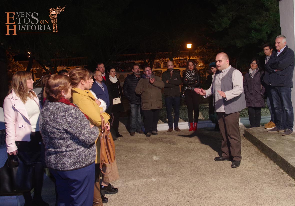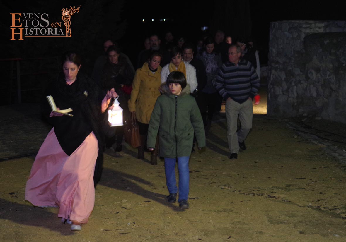 Continúa el recorrido en una atmósfera mágica entre tenues luces de velas que alumbran los nichos y Dolores «la Santera» irrumpe con su mensaje que habla de tradición en el mes de Todos los Santos. A pocos metros, esperaba en su silla «la maestra», Mª Carmen Corpas. La encontramos ensimismada eligiendo a los actores para su próxima obra de teatro. Cuando vio a los visitantes, les contó su gran pasión, la enseñanza a niños de párvulos que marcaría su vida y la de muchos monturqueños que aún hoy la recuerdan con cariño.