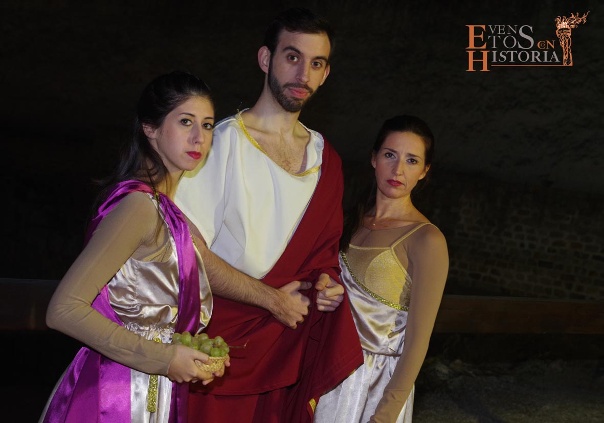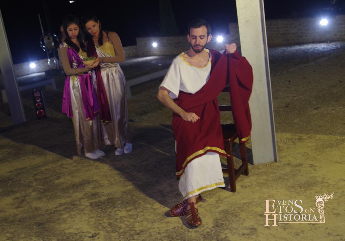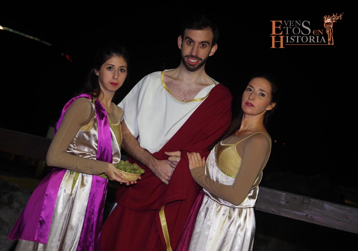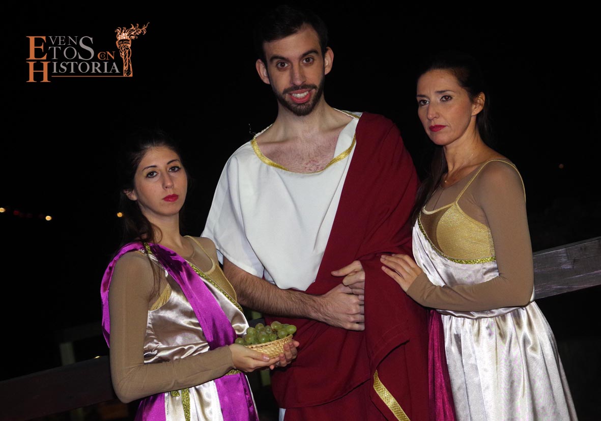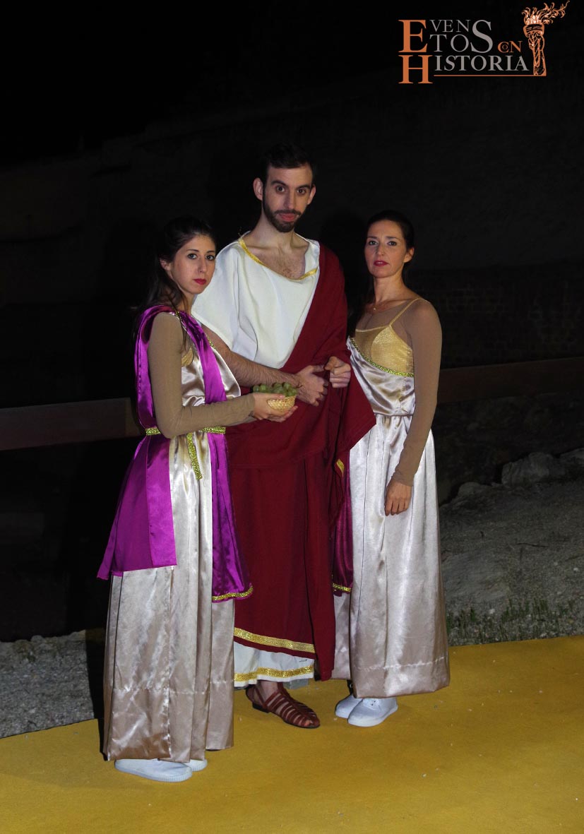 La visita a la cultura romana continuó en el Patio de los Ahorcados, donde Mesalina se despidió, y prosiguió en las termas una dama del siglo XIX, Aurora Gómez, quien acompañó a los visitantes a ver unas reflexiones de Quinto Cornelio, patricio romano que buscaba relajarse en los momentos previos a la gran batalla de Munda. Sus dos esclavas nos deleitaron con una danza en honor a Neptuno, dios del Agua.