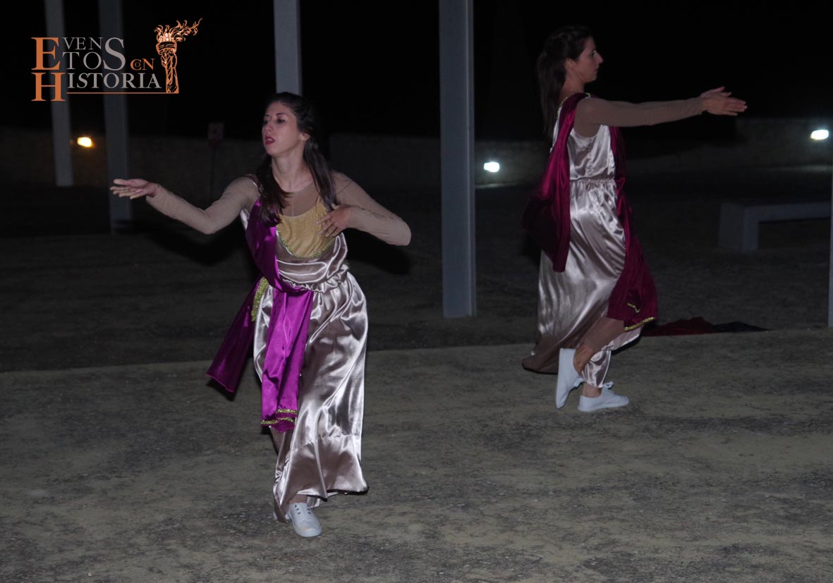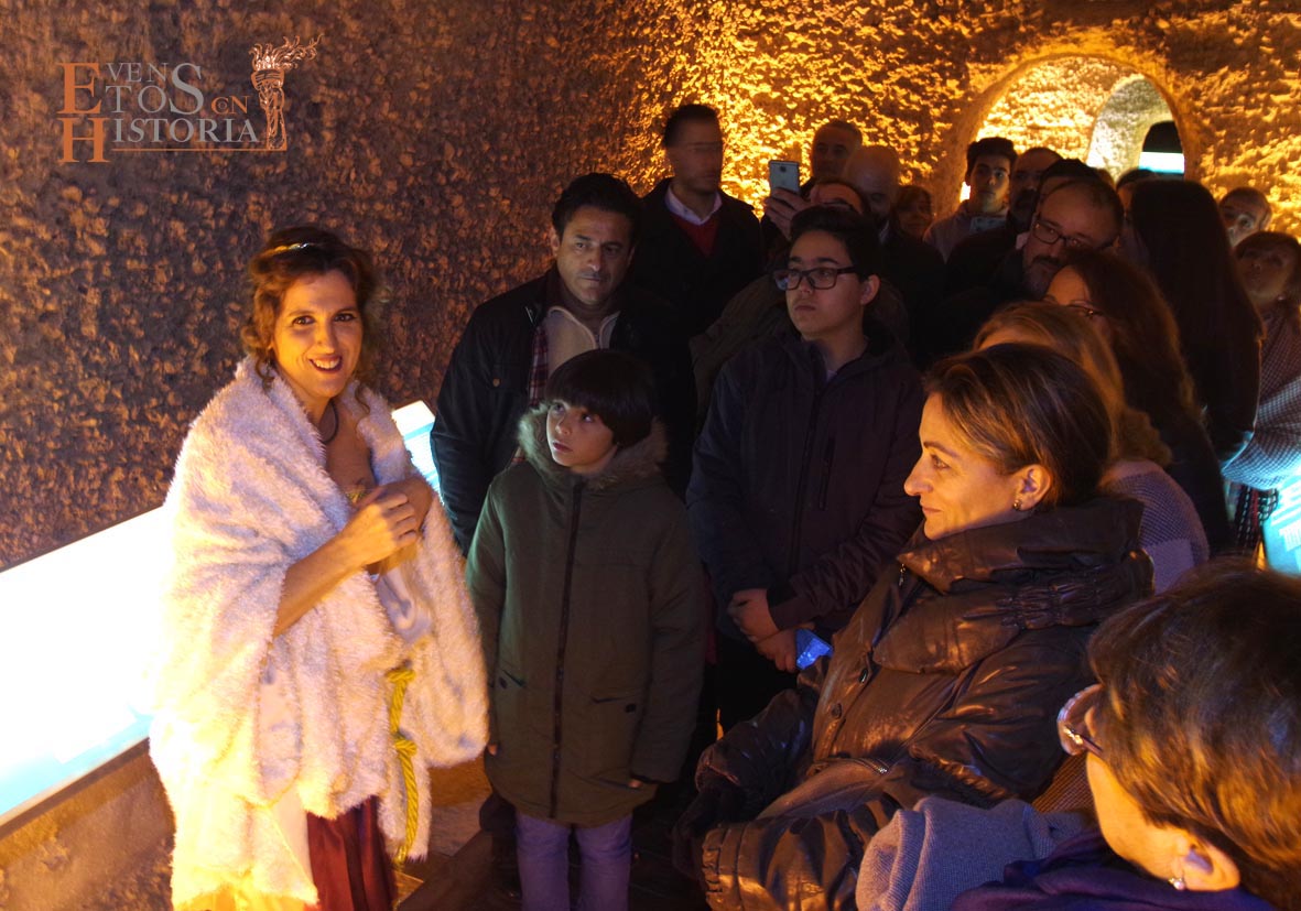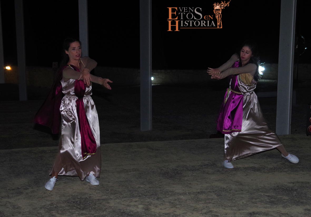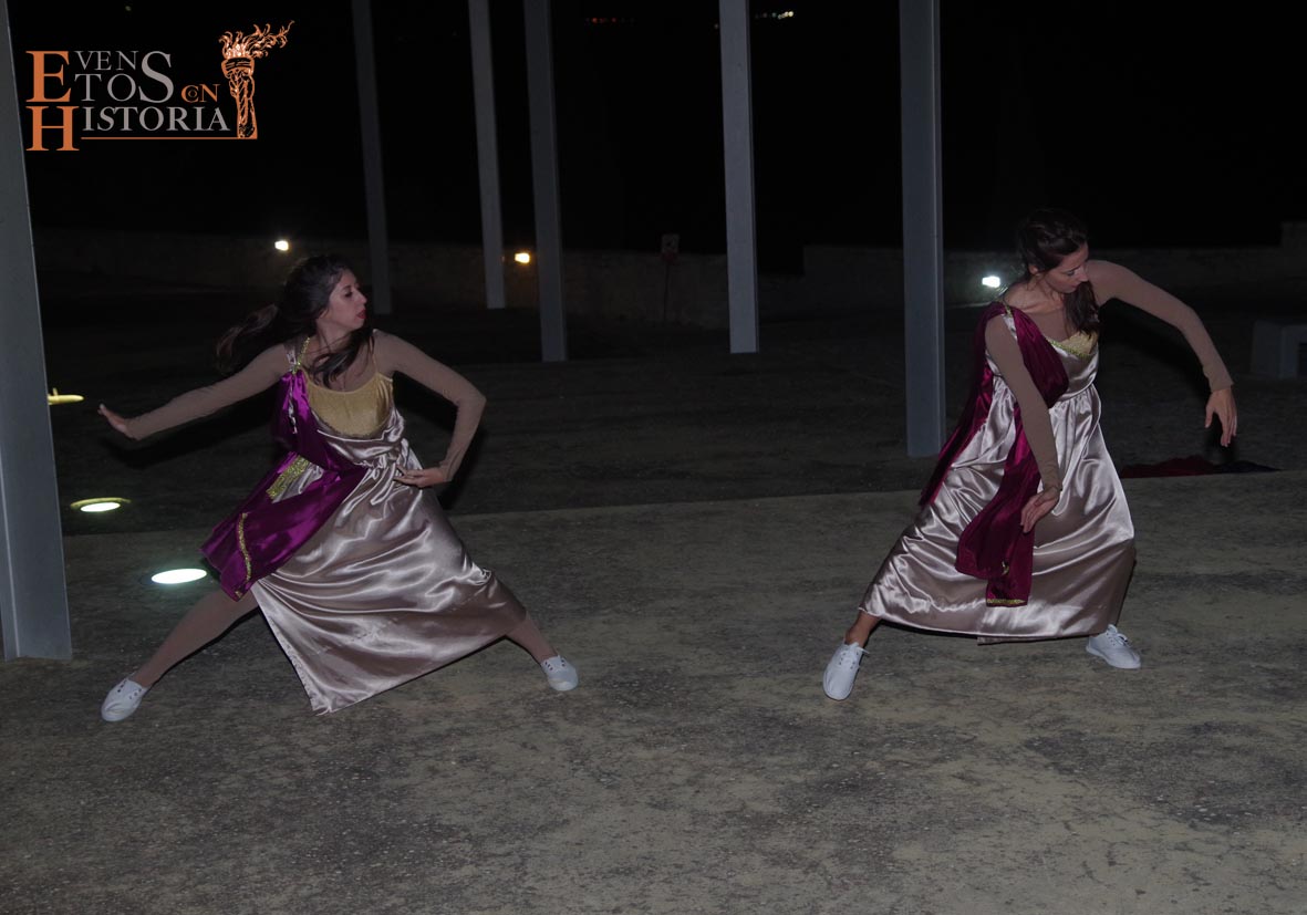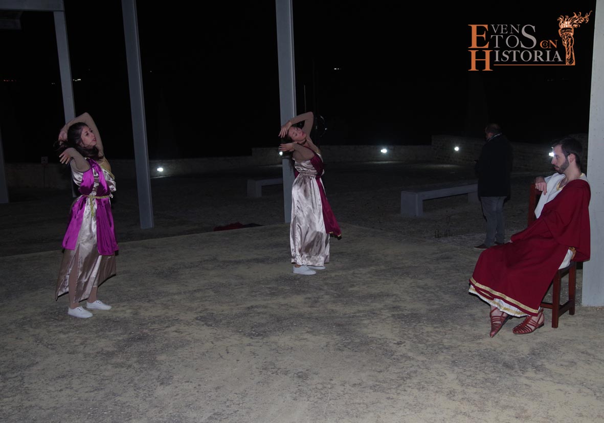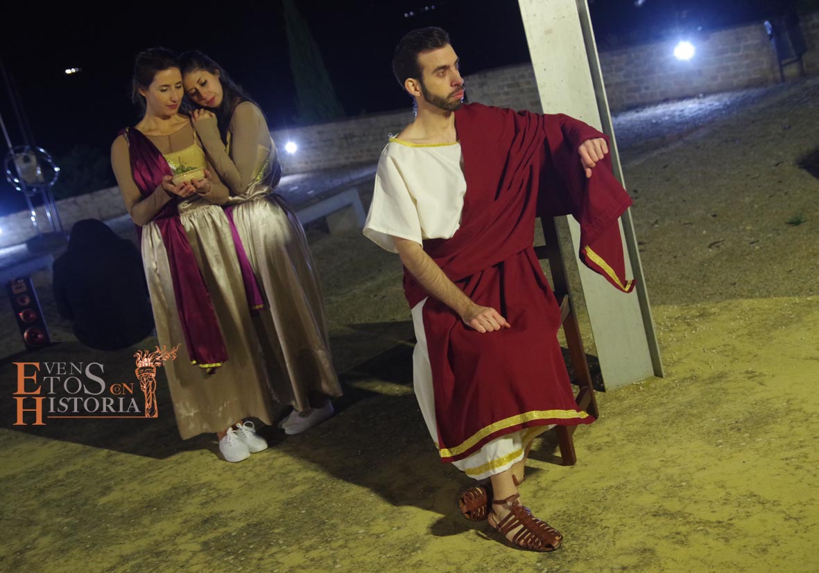La visita a la cultura romana continuó en el Patio de los Ahorcados, donde Mesalina se despidió, y prosiguió en las termas una dama del siglo XIX, Aurora Gómez, quien acompañó a los visitantes a ver unas reflexiones de Quinto Cornelio, patricio romano que buscaba relajarse en los momentos previos a la gran batalla de Munda. Sus dos esclavas nos deleitaron con una danza en honor a Neptuno, dios del Agua.