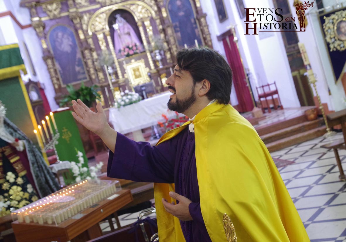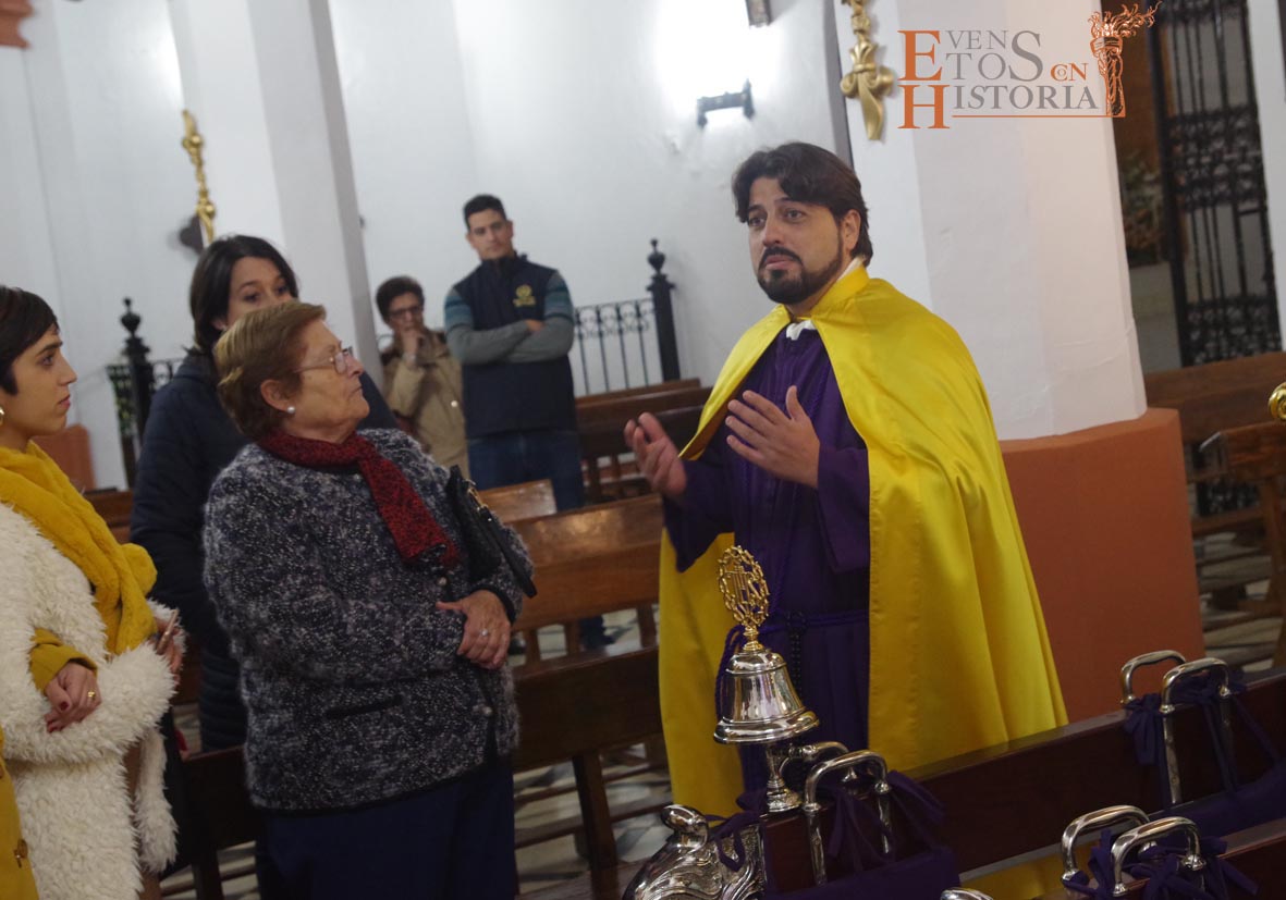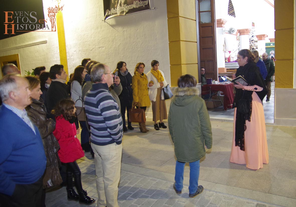 Continúa la visita desde el Mirador de los Paseíllos hacia la parroquia de San Mateo. Aurora Gómez habló de las impresionantes vistas de este enclave tan estratégico, de las cisternas privadas y, cómo no, del arte que encierra el templo que alberga a Nuestro Padre Jesús Nazareno de Monturque junto a otras imágenes de su semana santa. Tras su despedida, Pedro Díaz, hermano mayor que fue durante 30 años de la Hermandad de Nuestro Padre Jesús Nazareno nos emocionó con unas sentidas palabras momentos antes de la salida procesional y sobrecogió al público con una oración del Padre Nuestro en forma de saeta que puso el broche de oro a esta edición de visitas teatralizadas en Mundamortis.