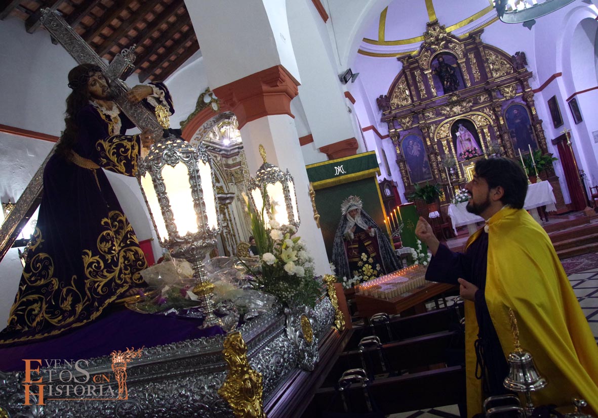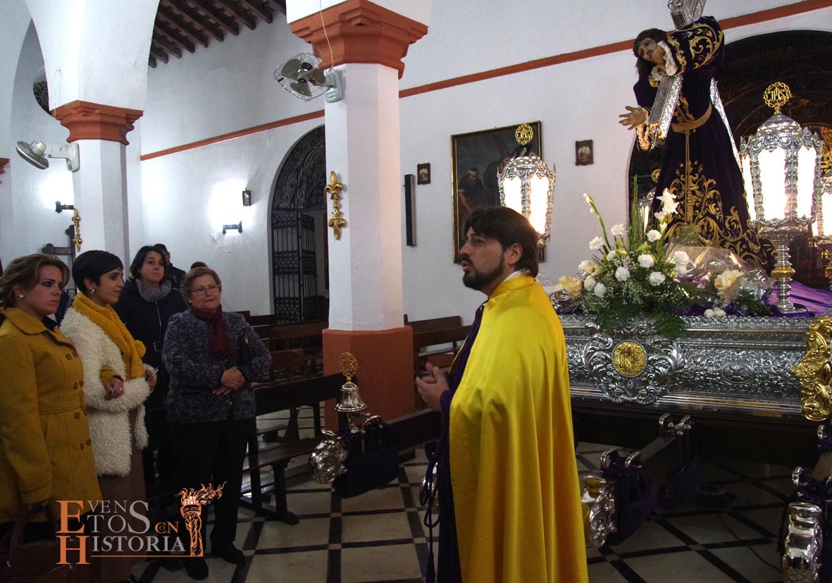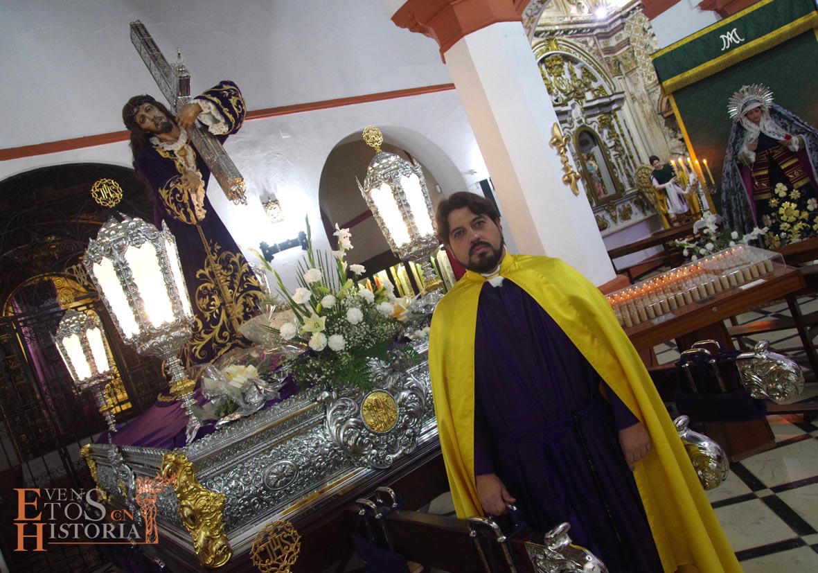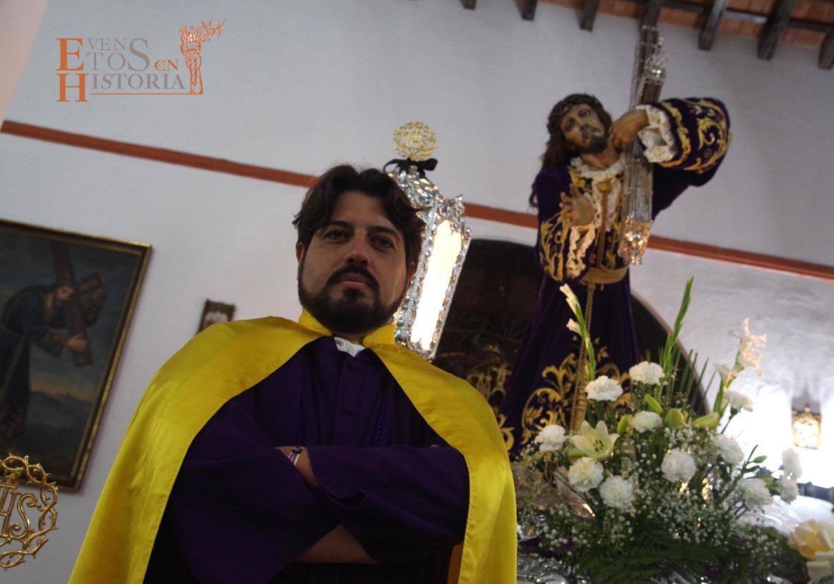 Continúa la visita desde el Mirador de los Paseíllos hacia la parroquia de San Mateo. Aurora Gómez habló de las impresionantes vistas de este enclave tan estratégico, de las cisternas privadas y, cómo no, del arte que encierra el templo que alberga a Nuestro Padre Jesús Nazareno de Monturque junto a otras imágenes de su semana santa. Tras su despedida, Pedro Díaz, hermano mayor que fue durante 30 años de la Hermandad de Nuestro Padre Jesús Nazareno nos emocionó con unas sentidas palabras momentos antes de la salida procesional y sobrecogió al público con una oración del Padre Nuestro en forma de saeta que puso el broche de oro a esta edición de visitas teatralizadas en Mundamortis.