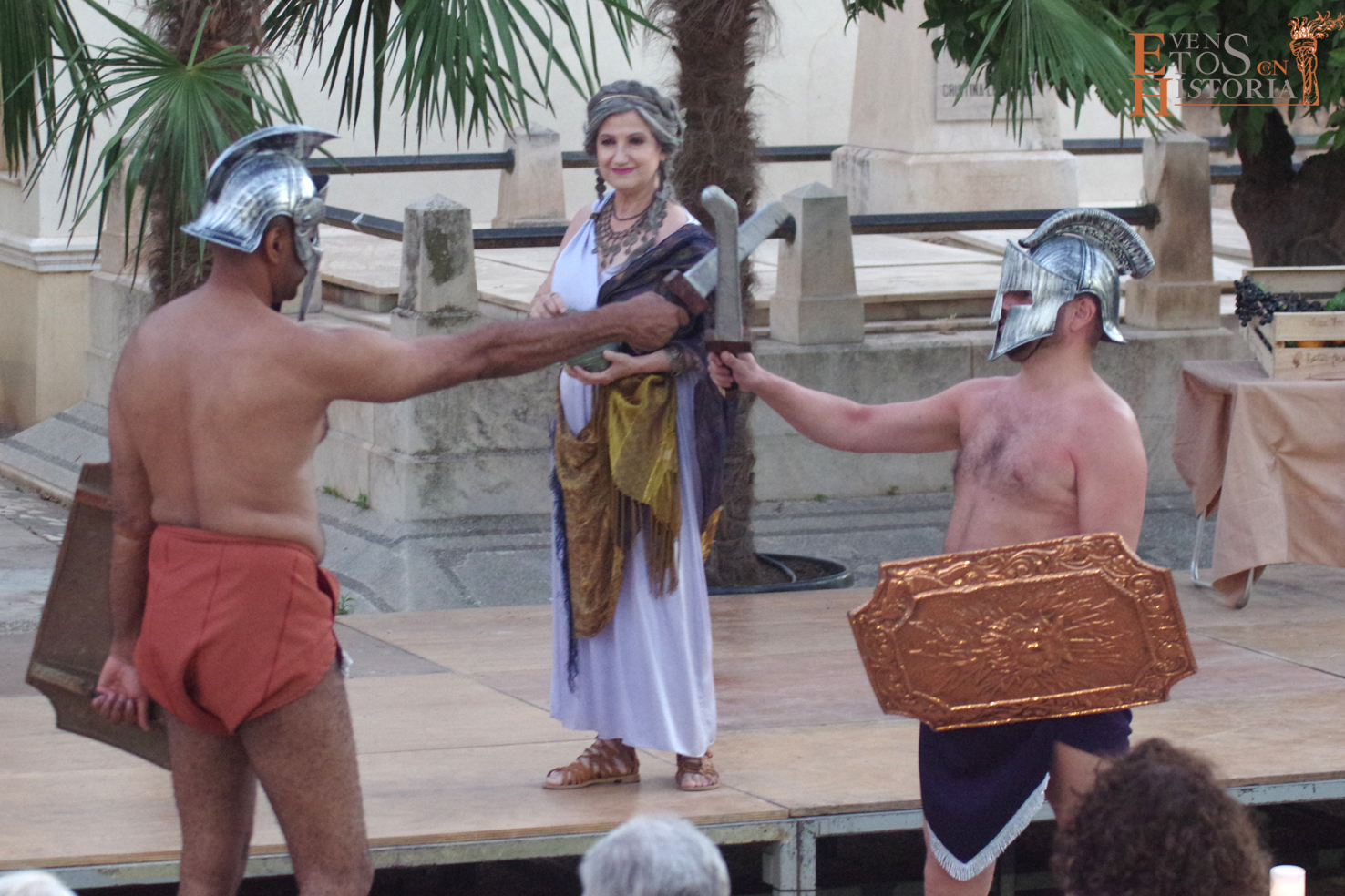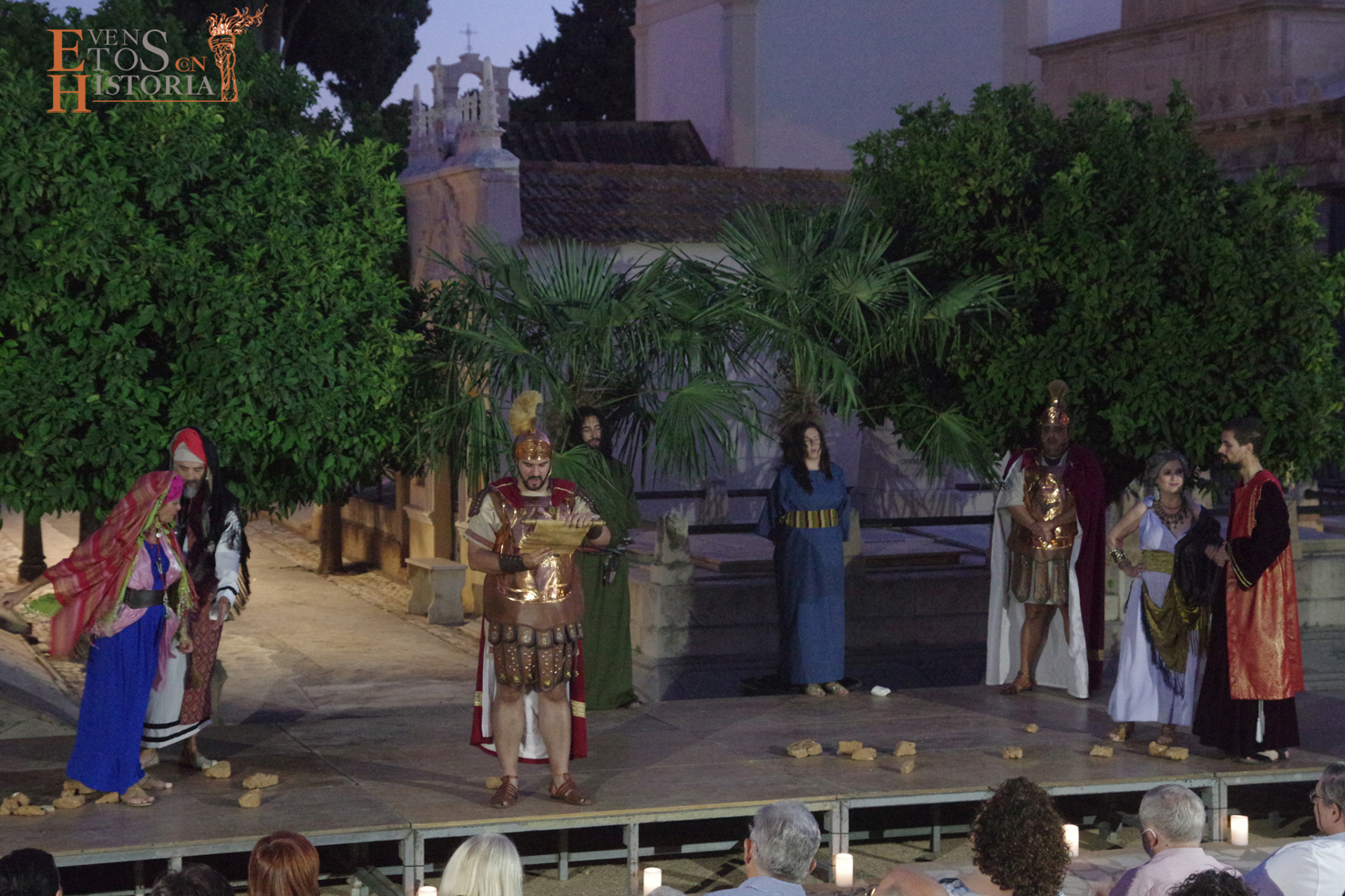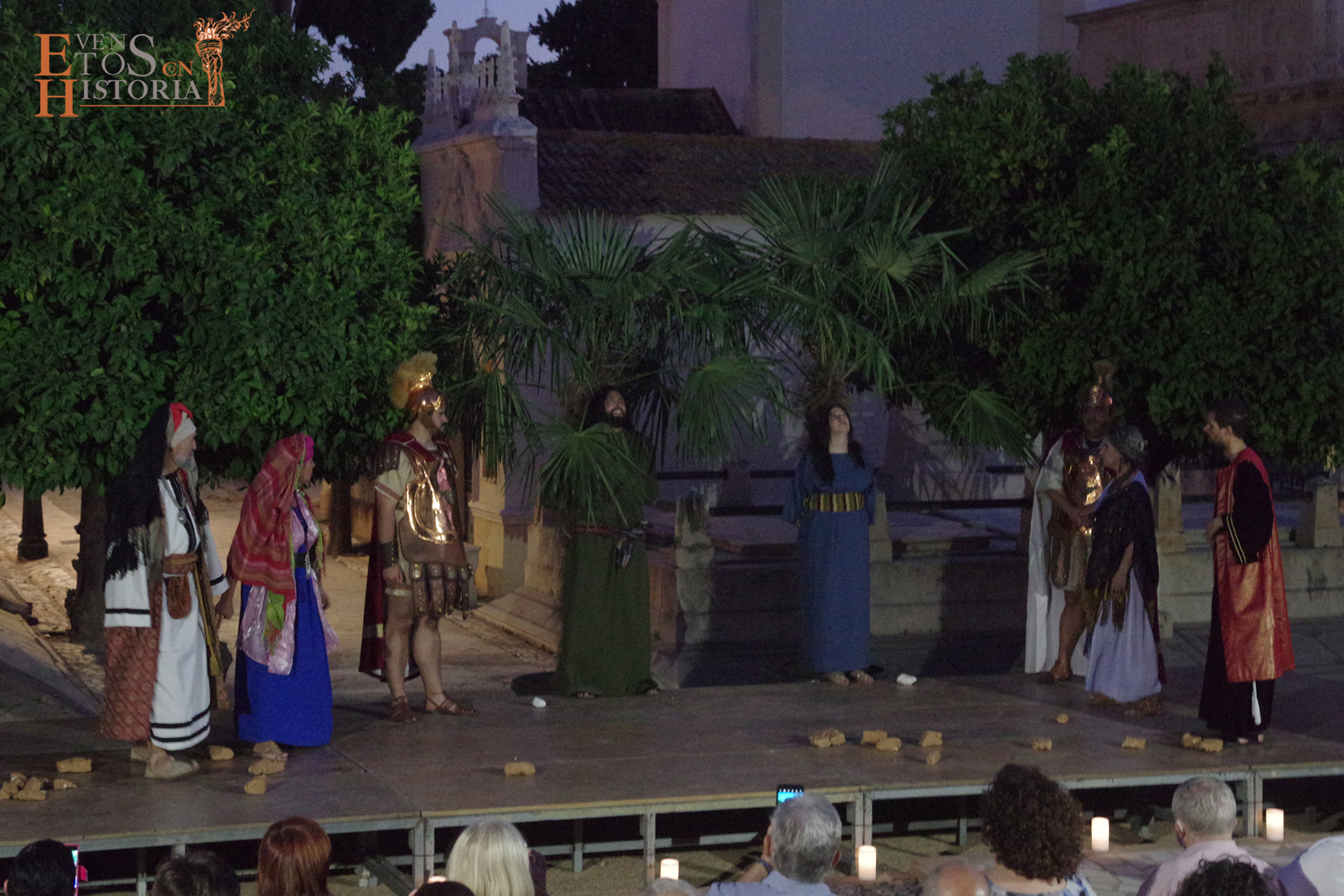 Fue un marco de lujo para una puesta en escena impresionante que transportó al público a la pureza espiritual de la ceremonia sencilla de las primeras comunidades cristianas, al bullicio del mercado romano del siglo IV en Malaca donde hubo lugar para una exhibición de aguerridos gladiadores, a la suntuosidad del palacio del temido Silvano, a las tramas e intrigas de poder, a la crueldad de un pueblo que se revuelve presa del miedo y el odio, al dolor del martirio, a un lamento plasmado en un baile que expresa todo sin palabras… y a la historia de Málaga a través de los patronos, Ciriaco y Paula. La cultura mozárabe, los Reyes Católicos con fray Juan de Carmona y Pedro de Mena dejaron su huella con el sello de los patronos.