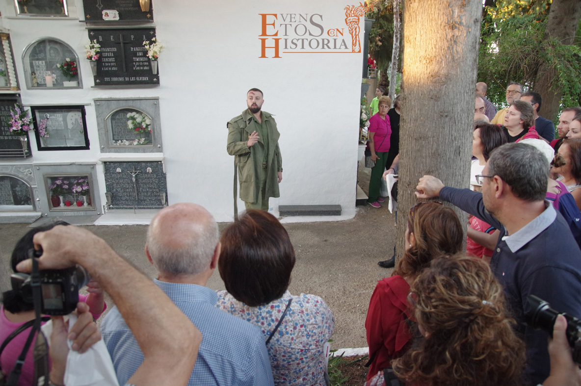 En varias localizaciones del recorrido, aparecieron cuatro personajes enterrados en este camposanto de Monturque, quienes en pocos minutos, hablaron desde el alma y el corazón: Pablo Muñoz, el primer caído en la guerra civil del pueblo; la entrañable maestra Carmen Corpas; el sepulturero José Jiménez «Rufino» junto a su «ayudante», Paco, y un bandolero de sueños, Antonio José Molina.