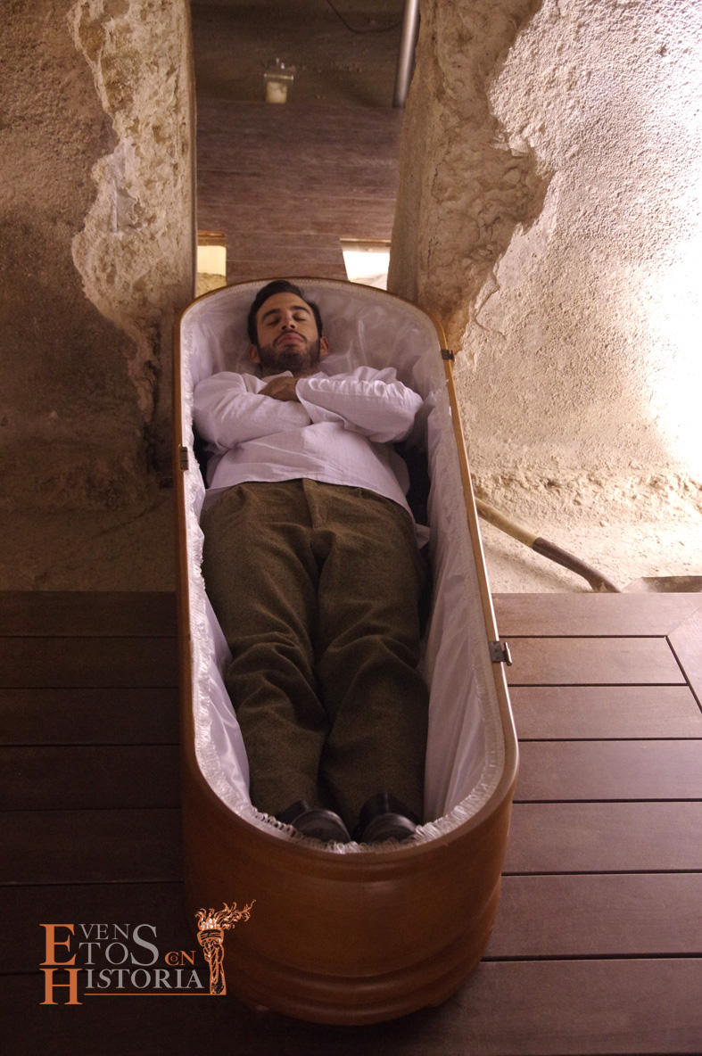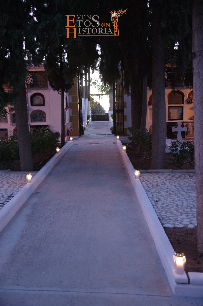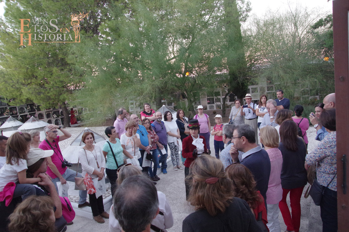 Dos anfitrionas del siglo XIX guiaron a los viajeros del tiempo que se dieron cita en un total de cinco pases. Primero, fueron recibidos por María Gallardo, poetisa de almas, quien los condujo entre detalles de algunas lápidas de San Rafael, contando su historia, su flora y el dolor contenido en sus epitafios, acompañado todo por tenues sones de violín. Doña Catalina «La del Marqués» sumergió a nuestros viajeros hasta el tesoro oculto del cementerio: las Cisternas Romanas, además de la zona del camposanto destinada a difuntos ajenos a la confesión católica.