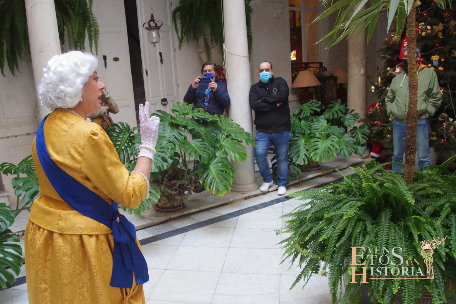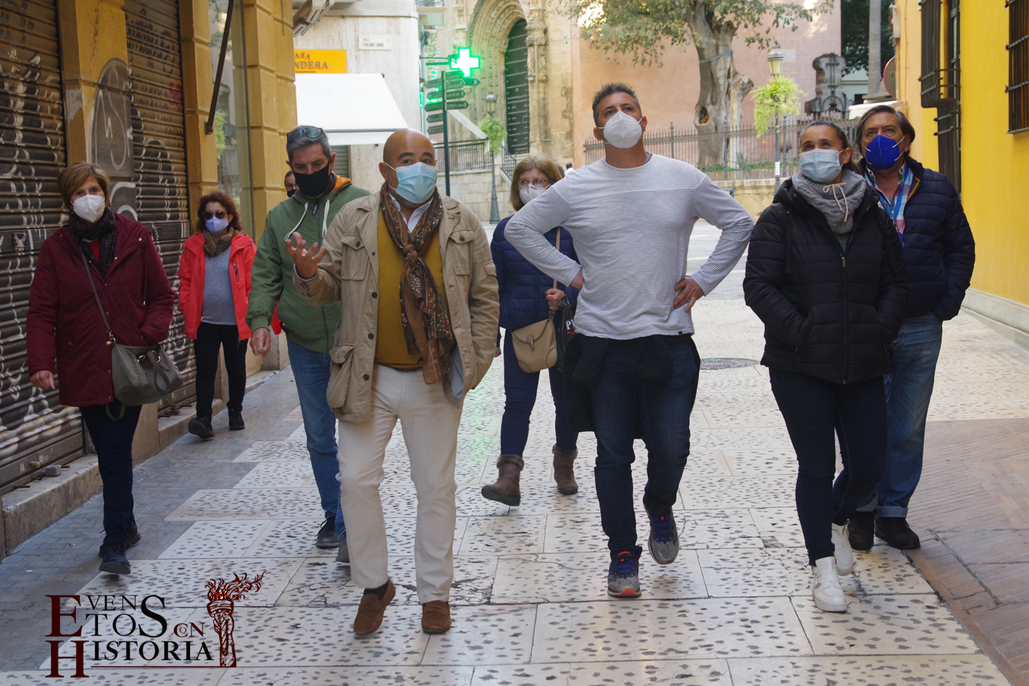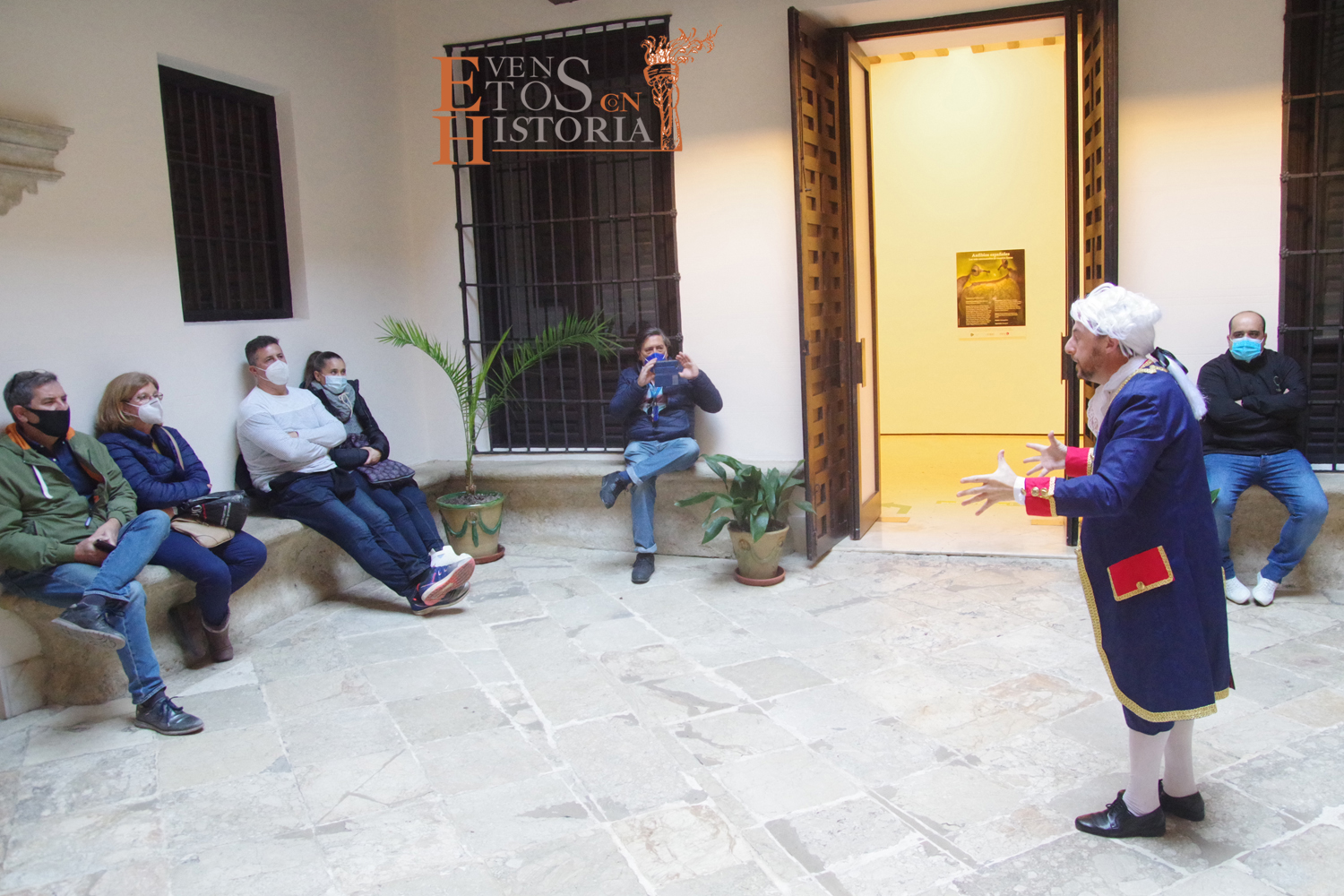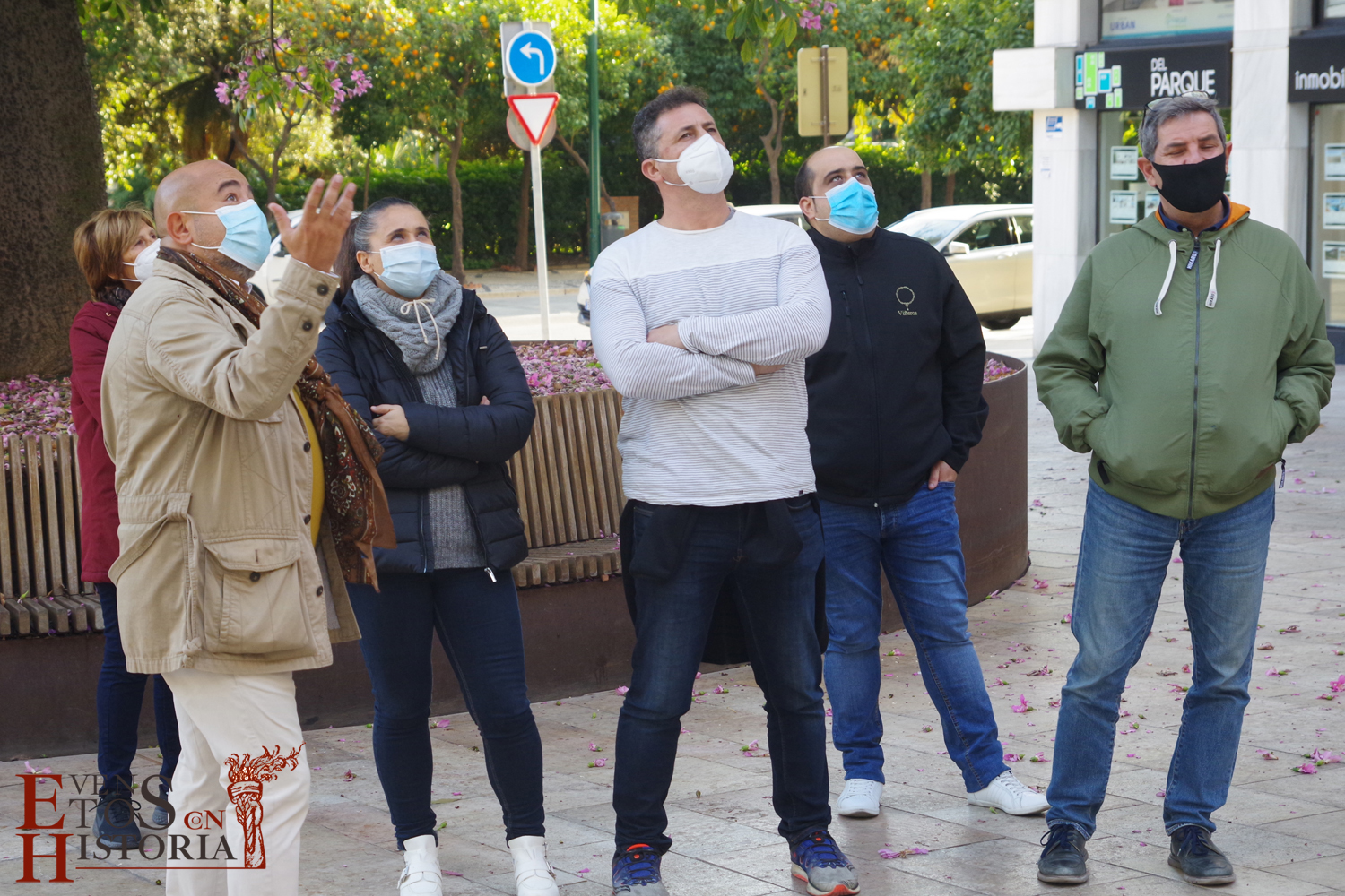 Fernando Carmona y Francisco José Montosa fueron los conductores que iban explicando aspectos histórico-artísticos de este singular paseo por el centro histórico de la ciudad y presentaban y aclaraban episodios de los personajes que sorprendieron a los grupos: