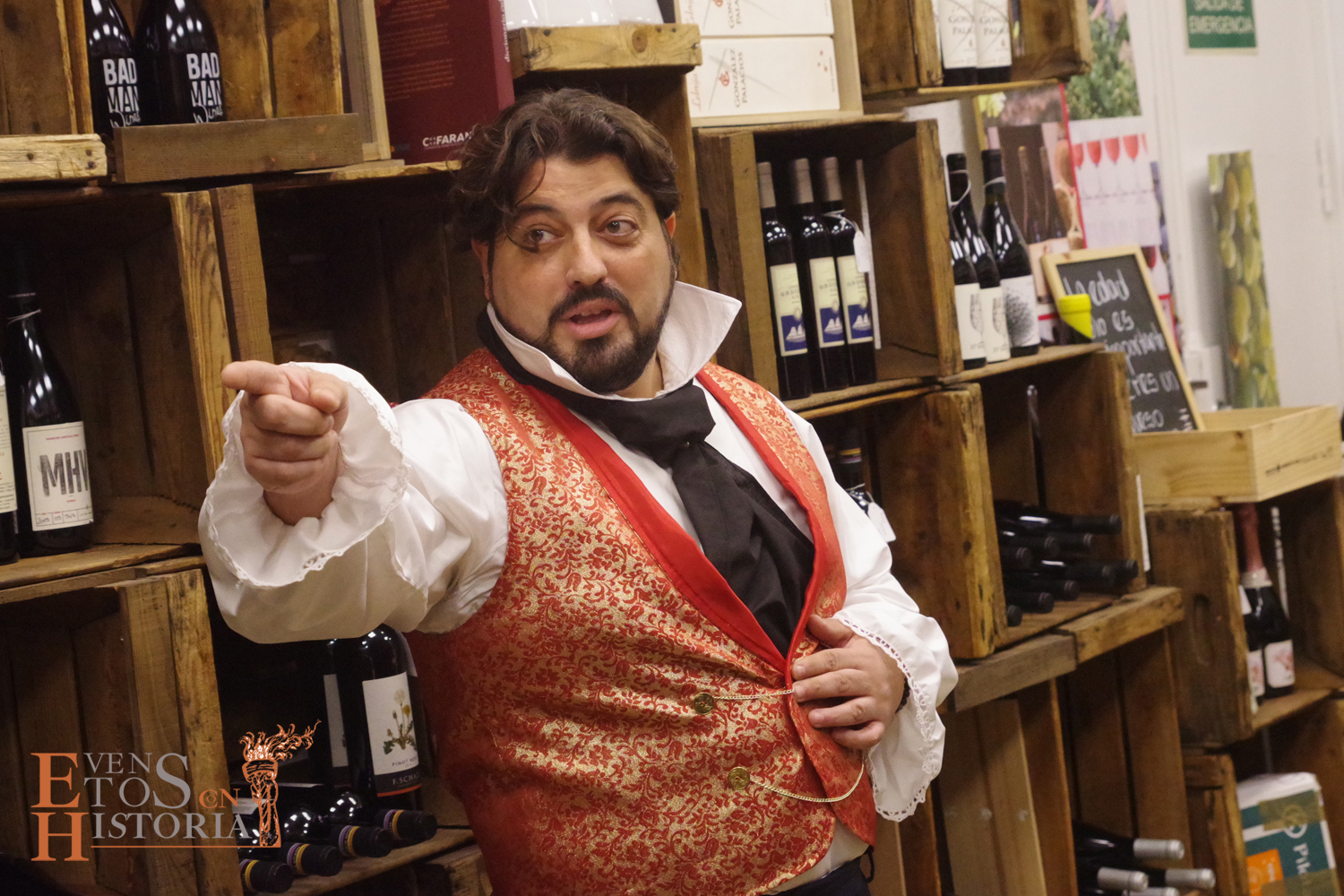 El Conde de Montecristo, quien daba la bienvenida a sus “huéspedes” en las bodegas de su palacio en la vinoteca Vinaliti.