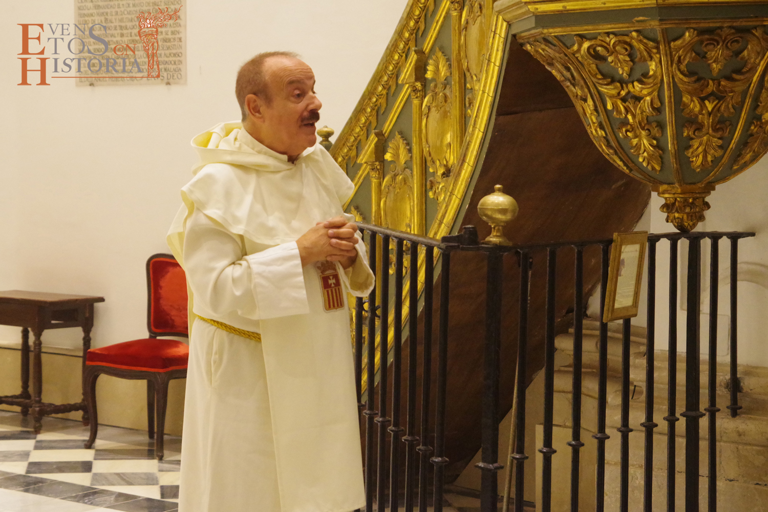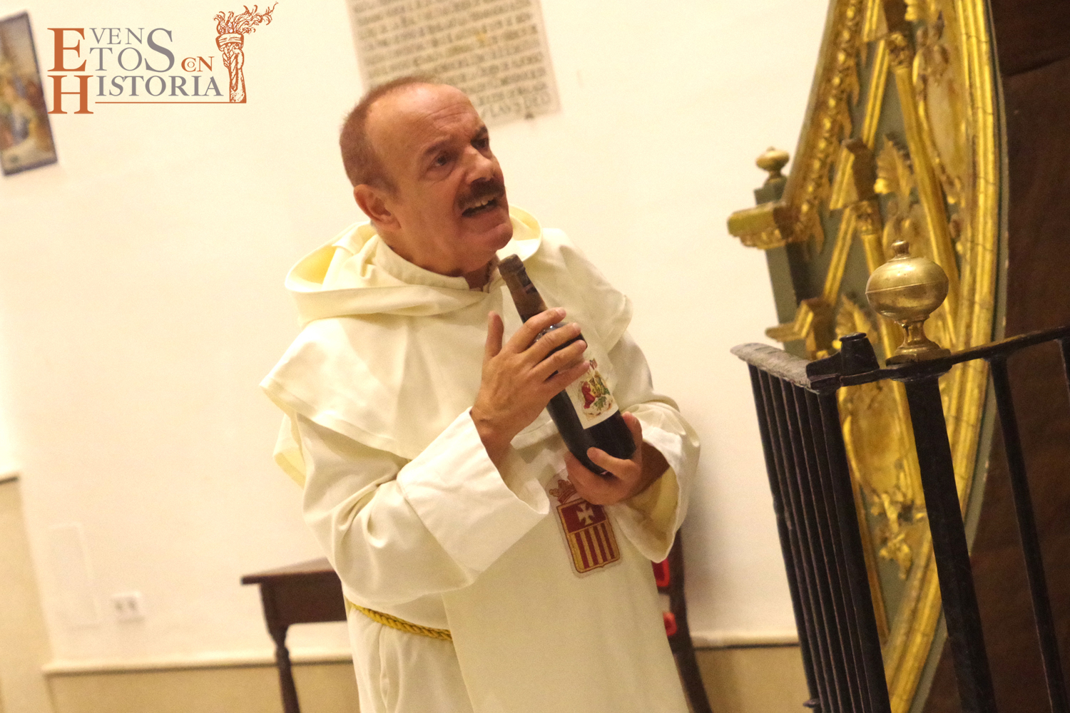 Fray Miguel del Pozo recibió al público en la iglesia de Santa Catalina, sede de la hermandad Sacramental de Viñeros, para hablar sobre el vino de consagrar, “Vinum de Vite”, marca original cedida por Bodegas Krauel.
