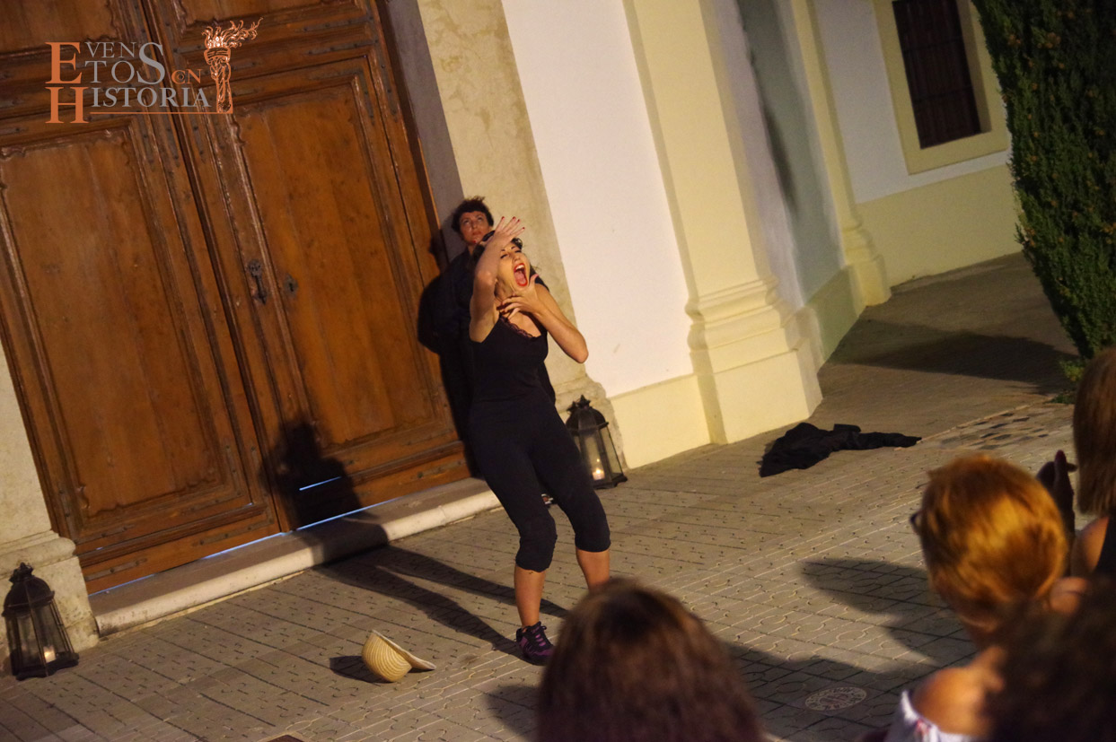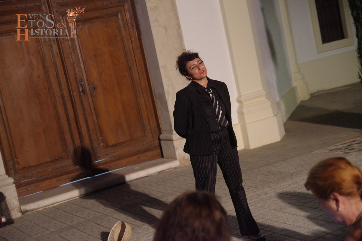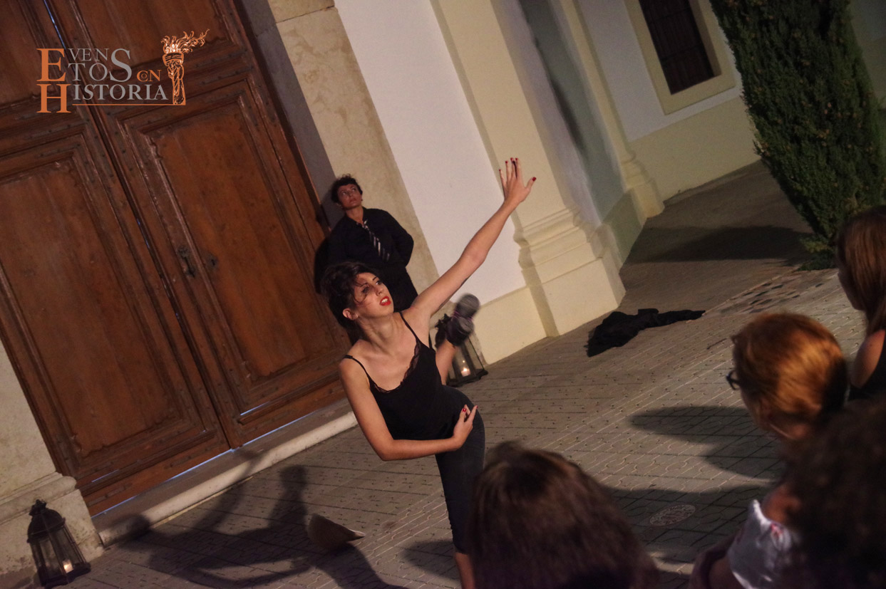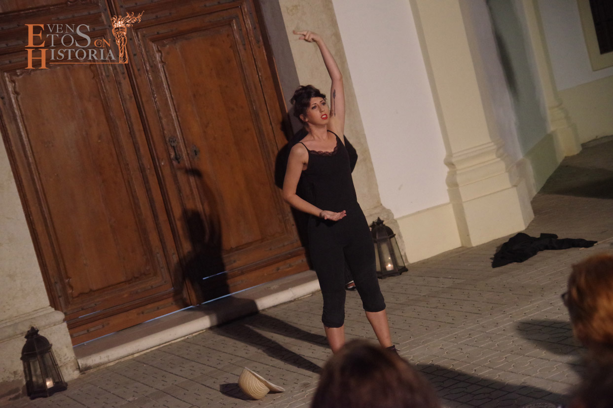 - La actuación final, en el centro de la capilla de los Heredia, acogió de forma sobrecogedora la trayectoria vital de la escritora Jane Bowles, cargada de altibajos, pasión y extremos, hasta llegar a la locura, expresada por un impactante número de danza. Aquí en Málaga vivió el final de sus días y realizó una desconocida labor social. Hoy nos dice para ellas: “No pierdan nunca la libertad, vivan con amor y sean felices”.
