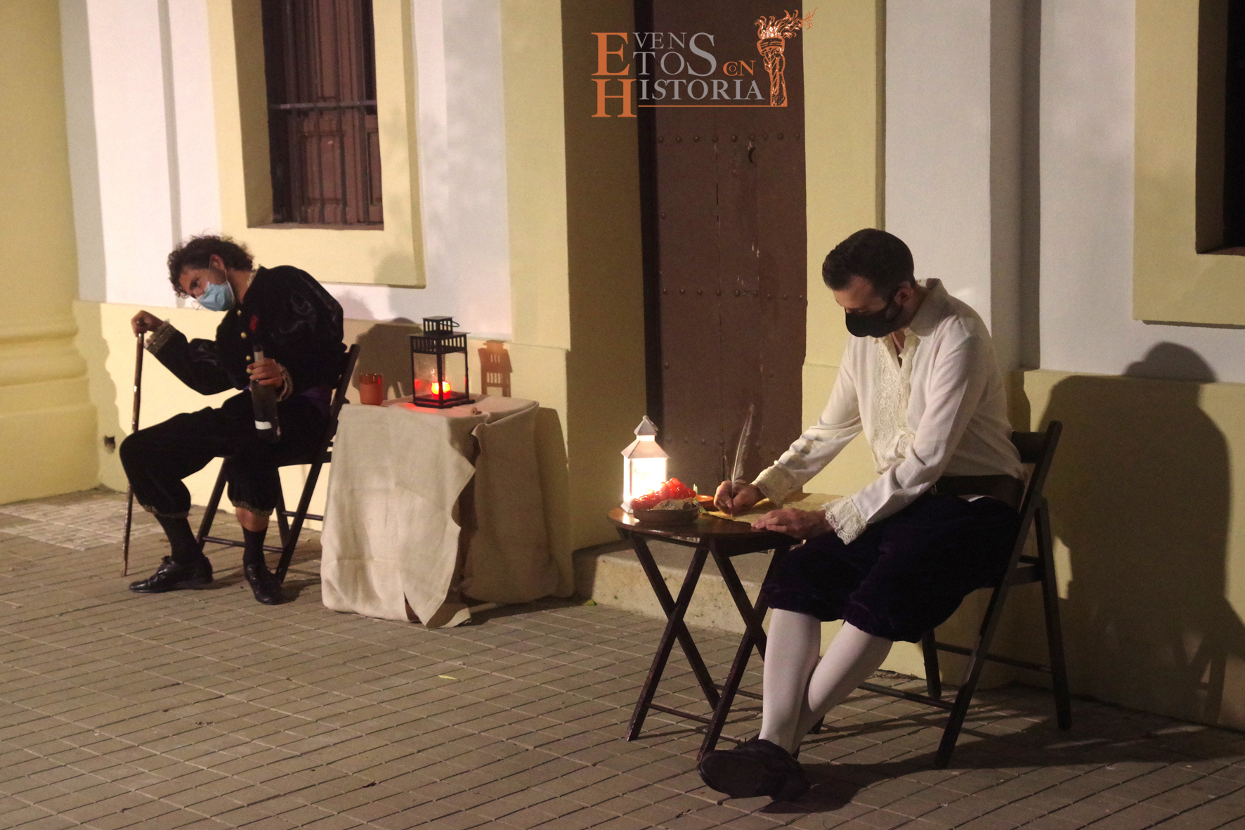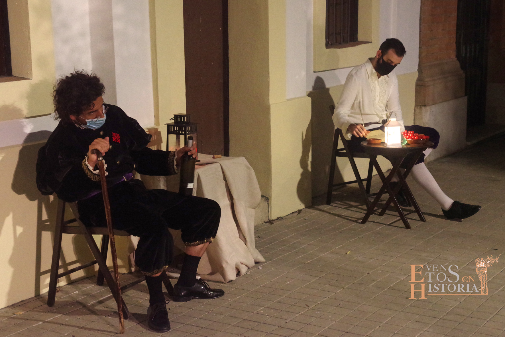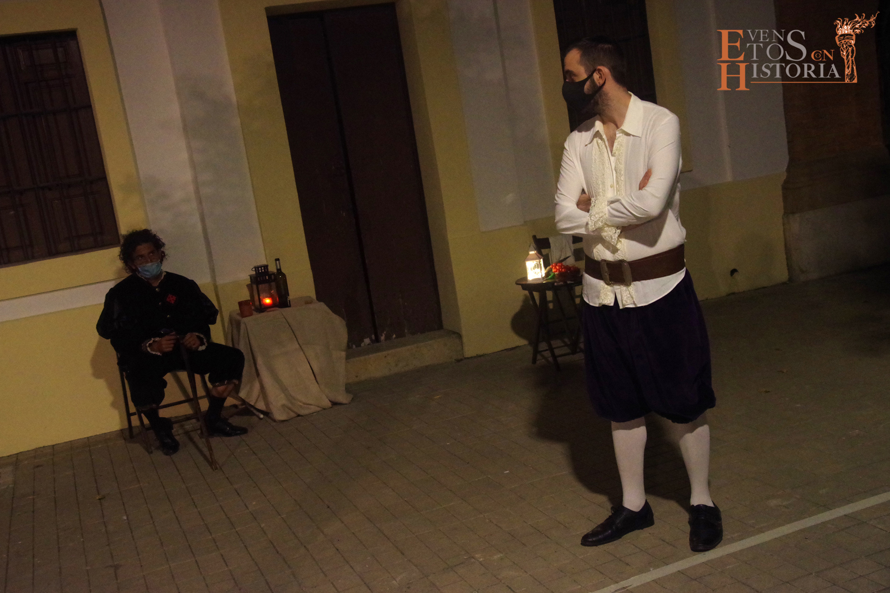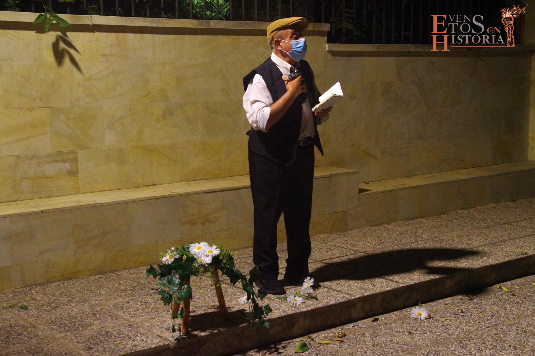 En esta velada de otoño vivimos el romanticismo de José de Espronceda con su Canción a la Muerte. También acudió fiel a su cita, él, Salvador Rueda, morador del cementerio junto a otros ilustres. Una batalla y dos nombres: Quevedo y Góngora, dos máximos exponentes del Siglo de Oro de nuestras letras, dejaron boquiabiertos al personal con el grado sumo al que llevaron la lengua castellana en sus admirables sonetos. Juan Ruiz Arcipreste de Hita, lejos de hablarnos de la muerte tan presente en el medievo, nos deleitó con unos versos de su Libro del Buen Amor, Elogio a la Mujer Chiquita. Y terminamos la noche en un emblemático punto, el Café de Chinitas. El espíritu de Lorca embrujó al público en la actuación final flamenca que adornaba su mítico poema.