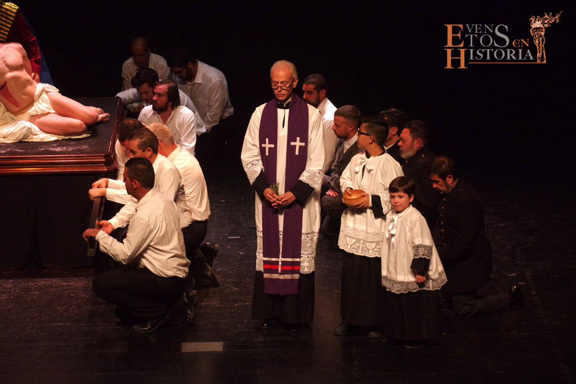 Casi más de medio centenar de participantes, entre actores y figurantes, dieron vida a cómo se gestó el nacimiento de esta devocional obra que diseñara Palma García en 1929. El encuentro del autor con los carteros, el modelo de la esposa de Palma para configurar el rostro de la Virgen o las inmortales palabras que le dedicó el poeta Salvador Rueda, fueron expuestas a través del lenguaje de las artes escénicas.