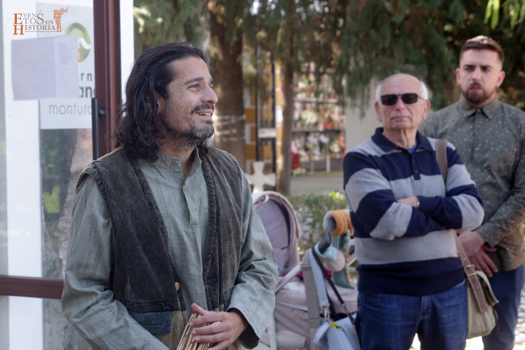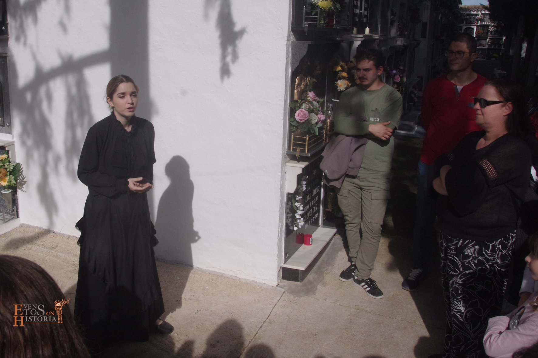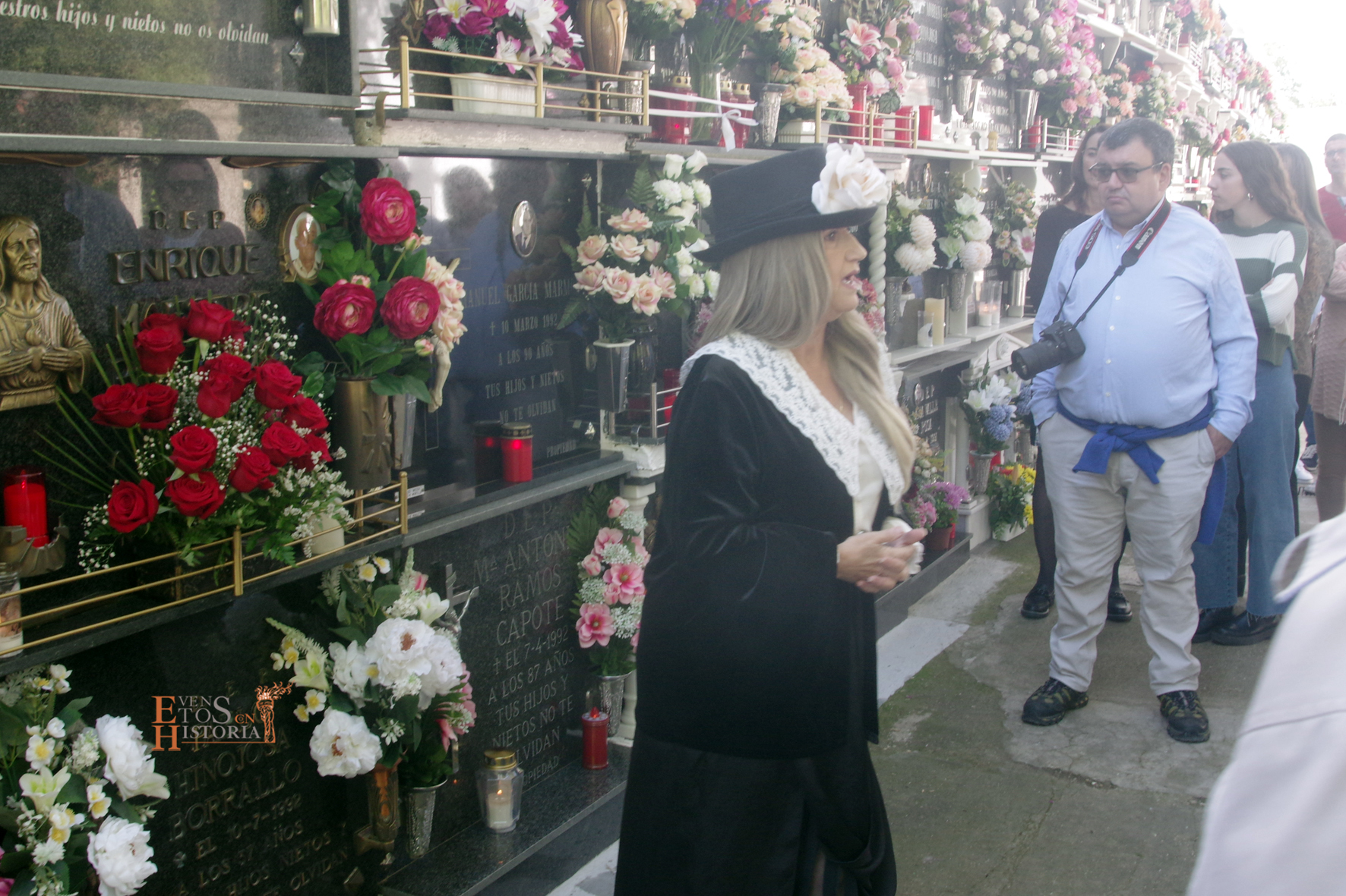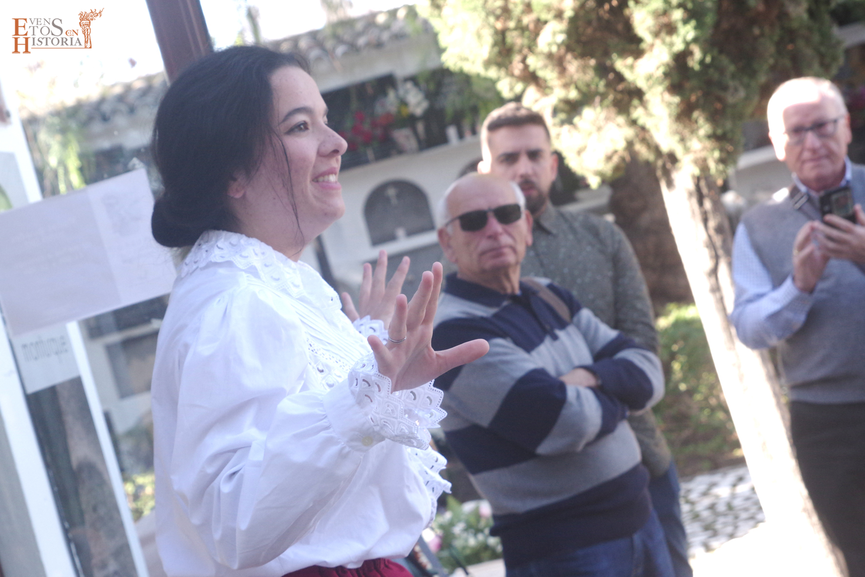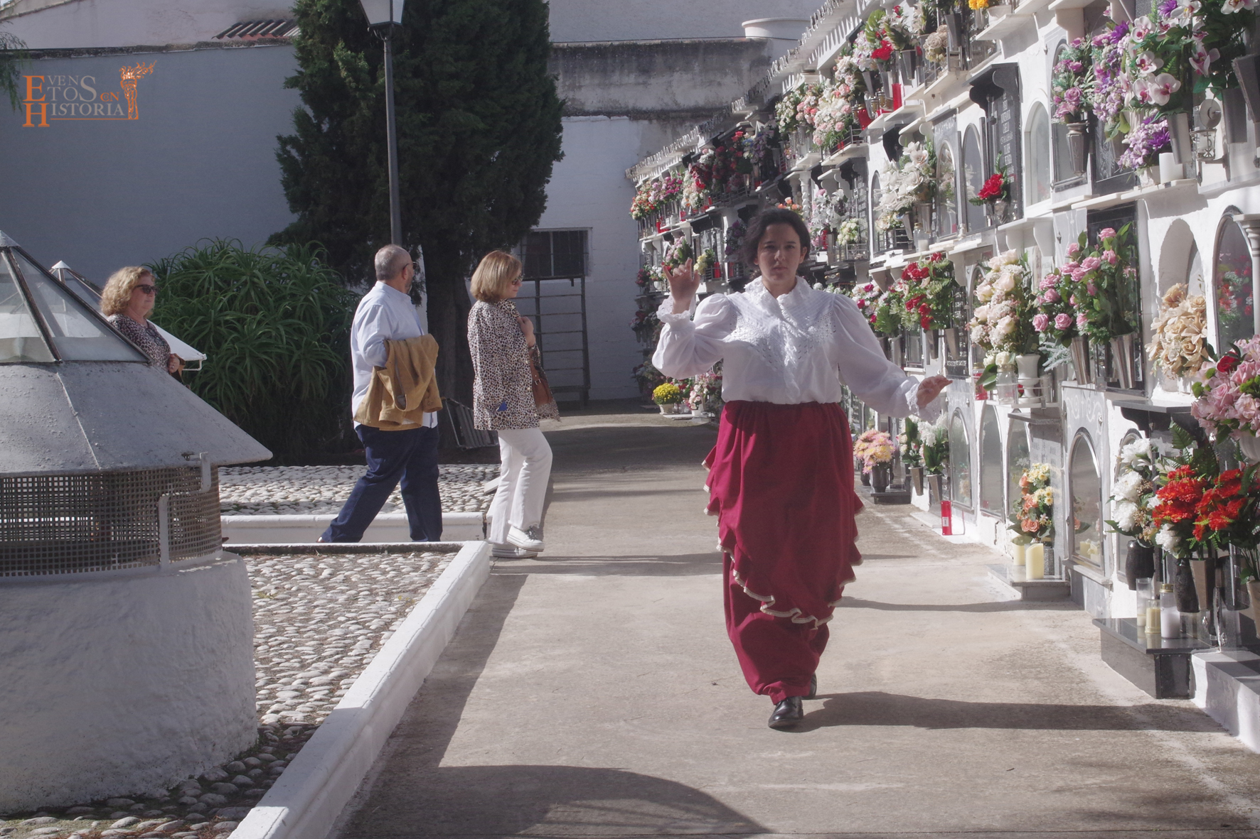Nuestras visitas teatralizadas cerraron el programa de las XVI Jornadas Culturales y Gastronómicas Mundamortis. Con el nombre de Un Museo Viviente a Cielo Abierto, el público a lo largo de los cinco pases que se desarrollaron y de la mano de tres damas anfitrionas (María Gallardo, Aracne y Catalina) conoció este cementerio, las cisternas romanas que atesora en su subsuelo, el patio de los Ahorcados y el Mirador de los Paseíllos. Y en diferentes puntos del recorrido, varios personajes iban actuando rememorando a vecinos ilustres de esta localidad cordobesa como el alcalde Ángel Carrillo, el sepulturero Rafael Cabello y el hermano mayor de la hermandad de la Aurora Rafael Jiménez. Hubo lugar para honrar a los difuntos pues la alegoría del cementerio de San Rafael se hizo presente y en forma de danza se nos recordó que la muerte no es el final.