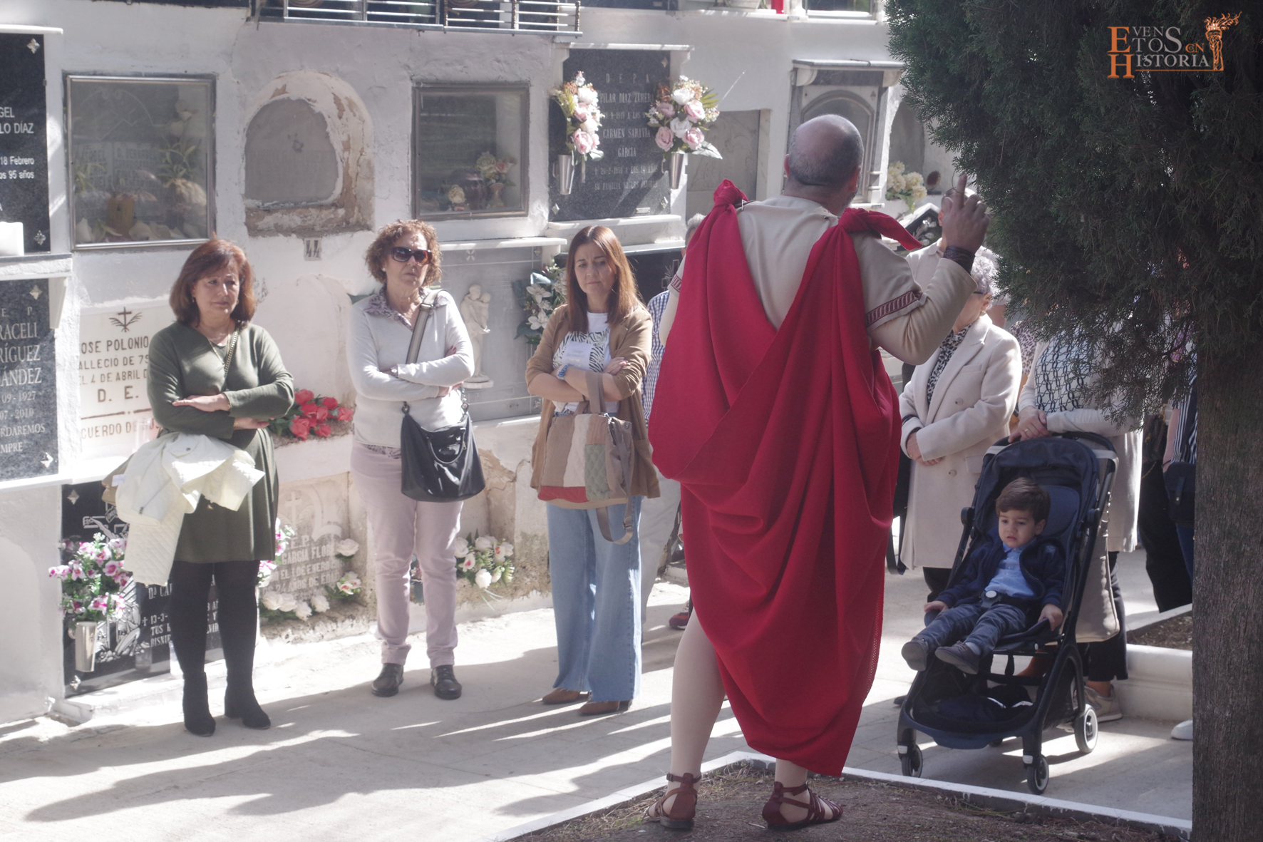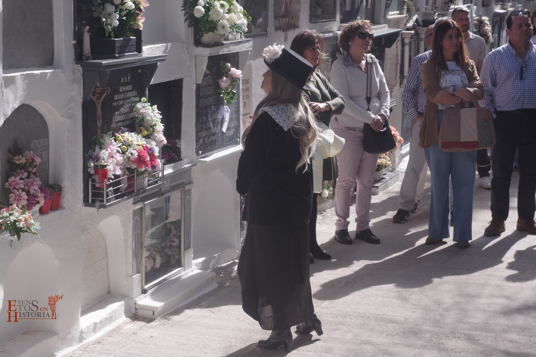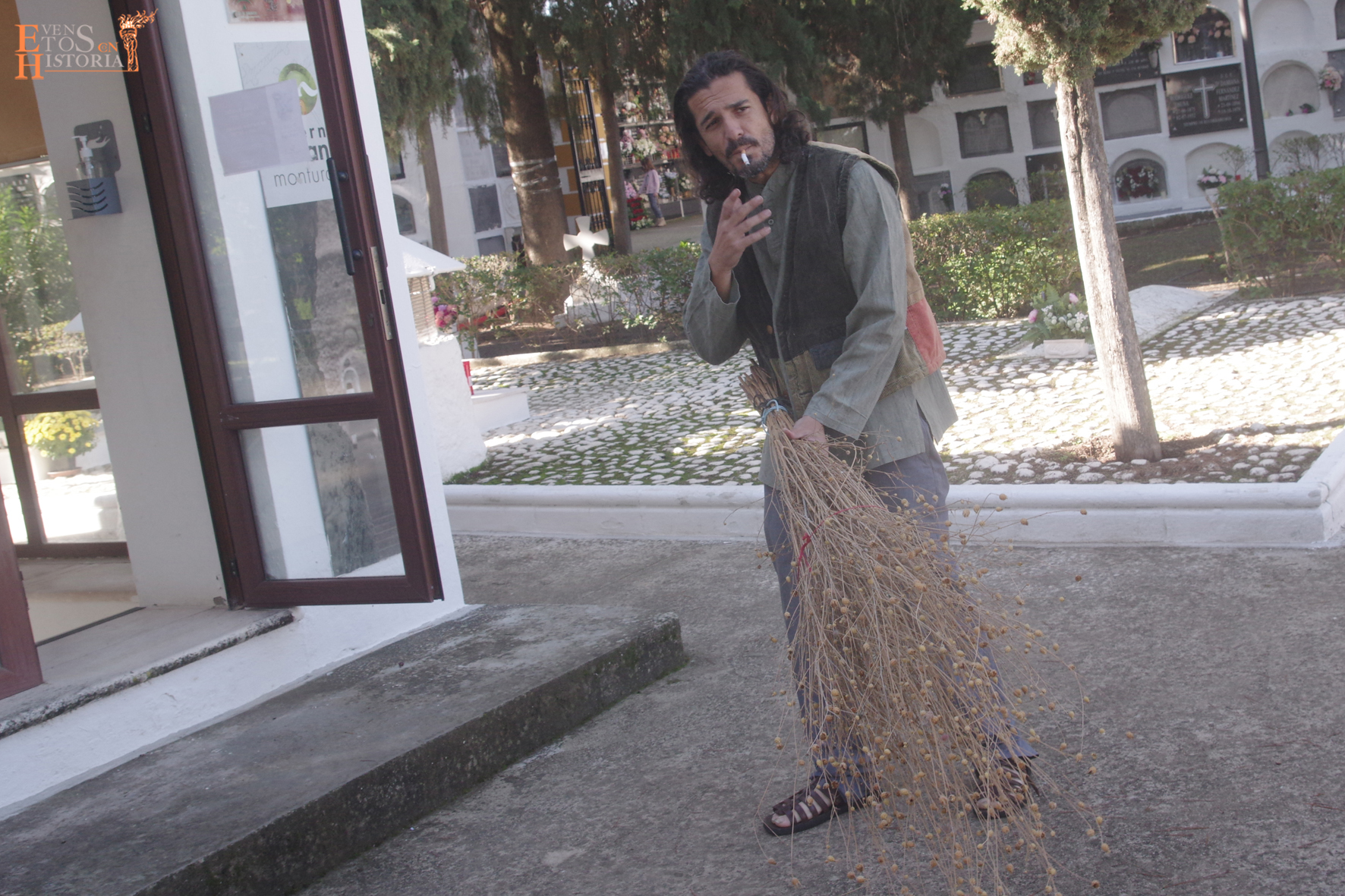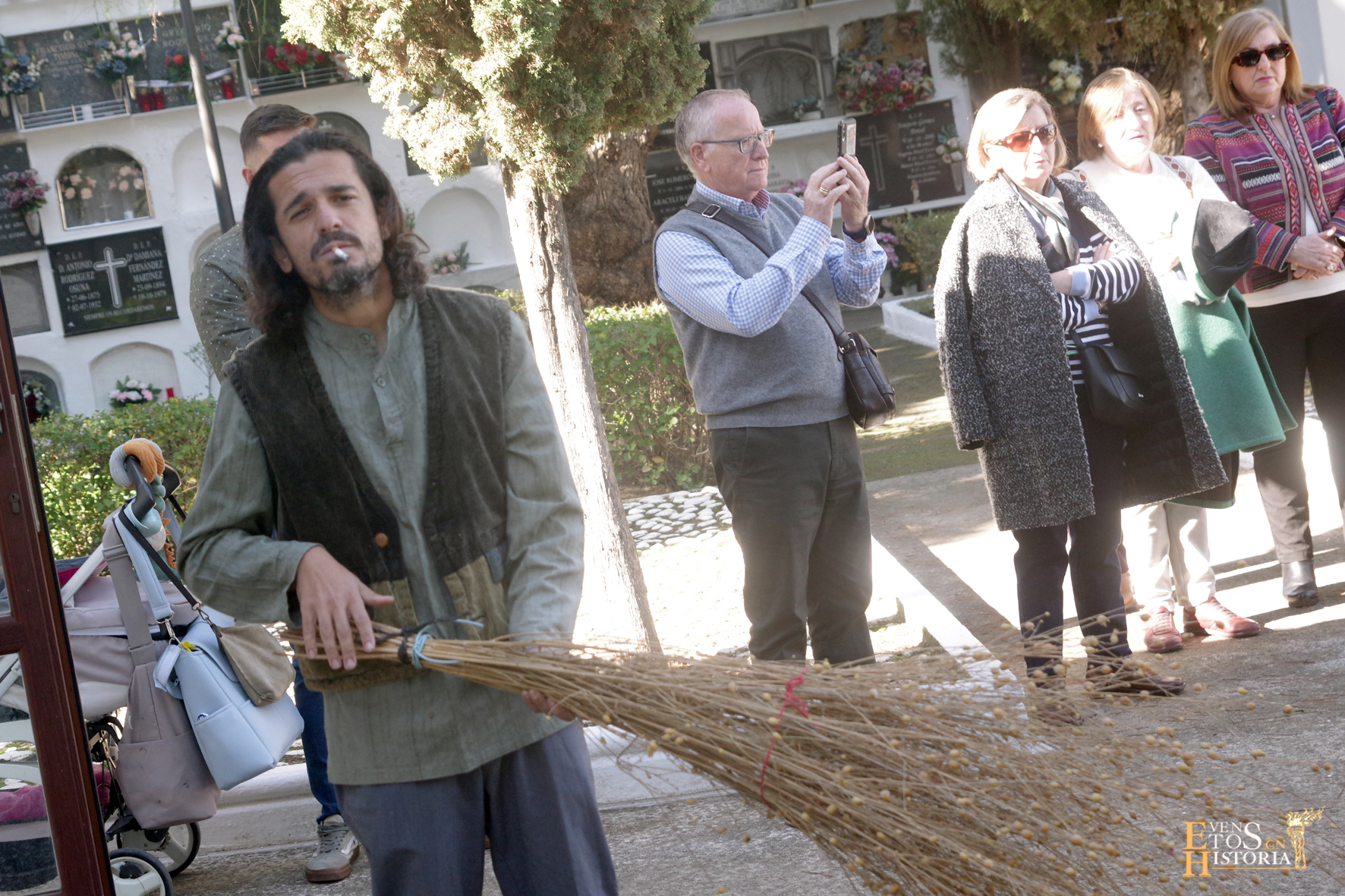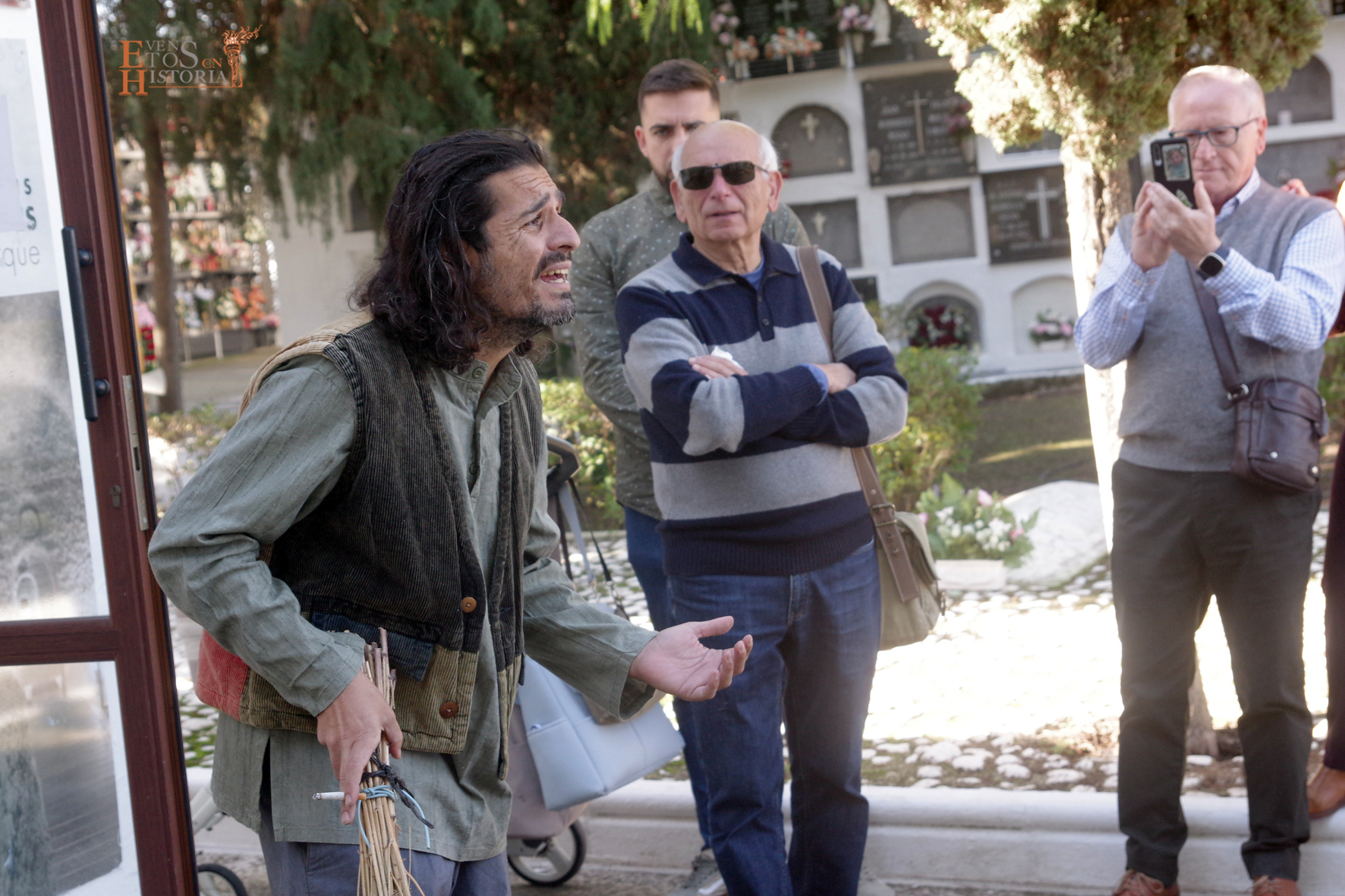 Nuestras visitas teatralizadas cerraron el programa de las XVI Jornadas Culturales y Gastronómicas Mundamortis. Con el nombre de Un Museo Viviente a Cielo Abierto, el público a lo largo de los cinco pases que se desarrollaron y de la mano de tres damas anfitrionas (María Gallardo, Aracne y Catalina) conoció este cementerio, las cisternas romanas que atesora en su subsuelo, el patio de los Ahorcados y el Mirador de los Paseíllos. Y en diferentes puntos del recorrido, varios personajes iban actuando rememorando a vecinos ilustres de esta localidad cordobesa como el alcalde Ángel Carrillo, el sepulturero Rafael Cabello y el hermano mayor de la hermandad de la Aurora Rafael Jiménez. Hubo lugar para honrar a los difuntos pues la alegoría del cementerio de San Rafael se hizo presente y en forma de danza se nos recordó que la muerte no es el final.