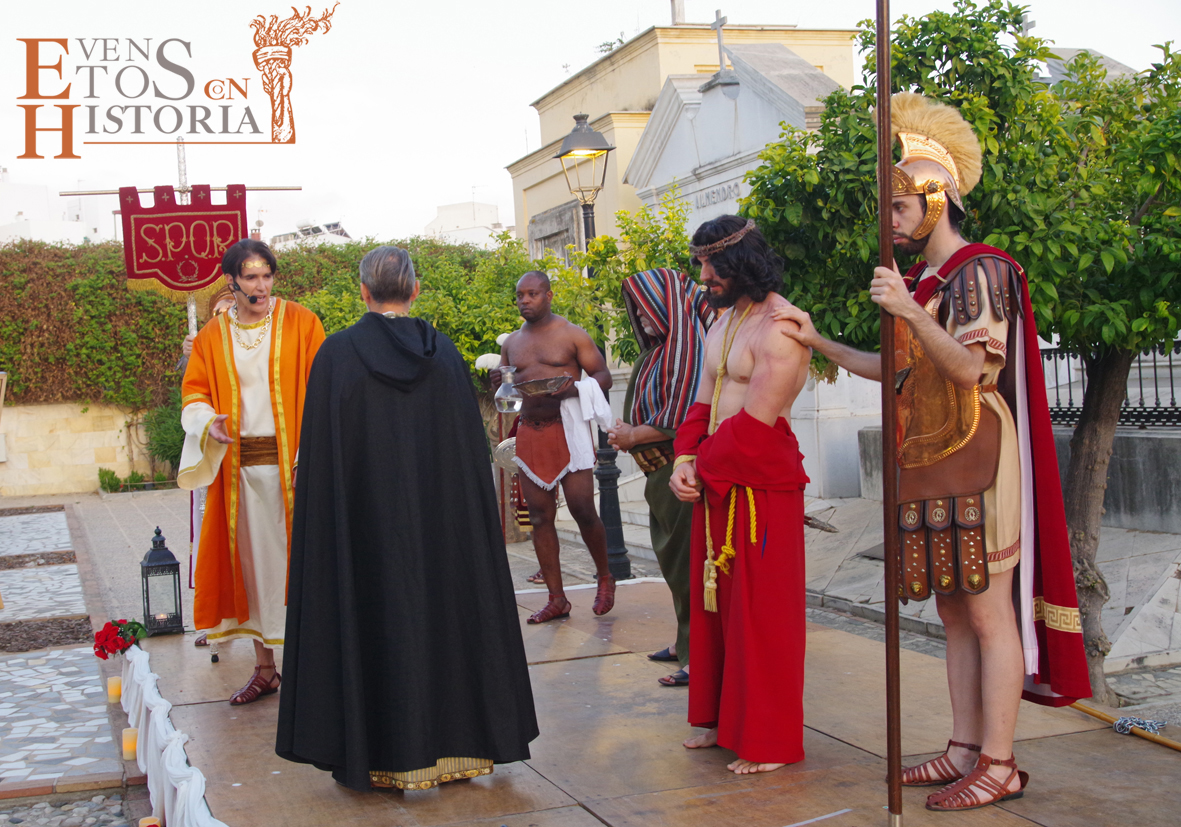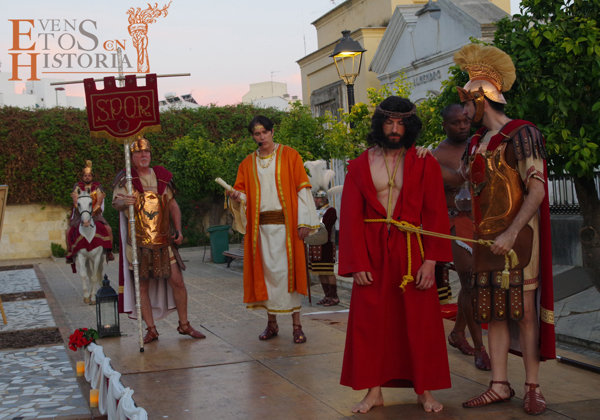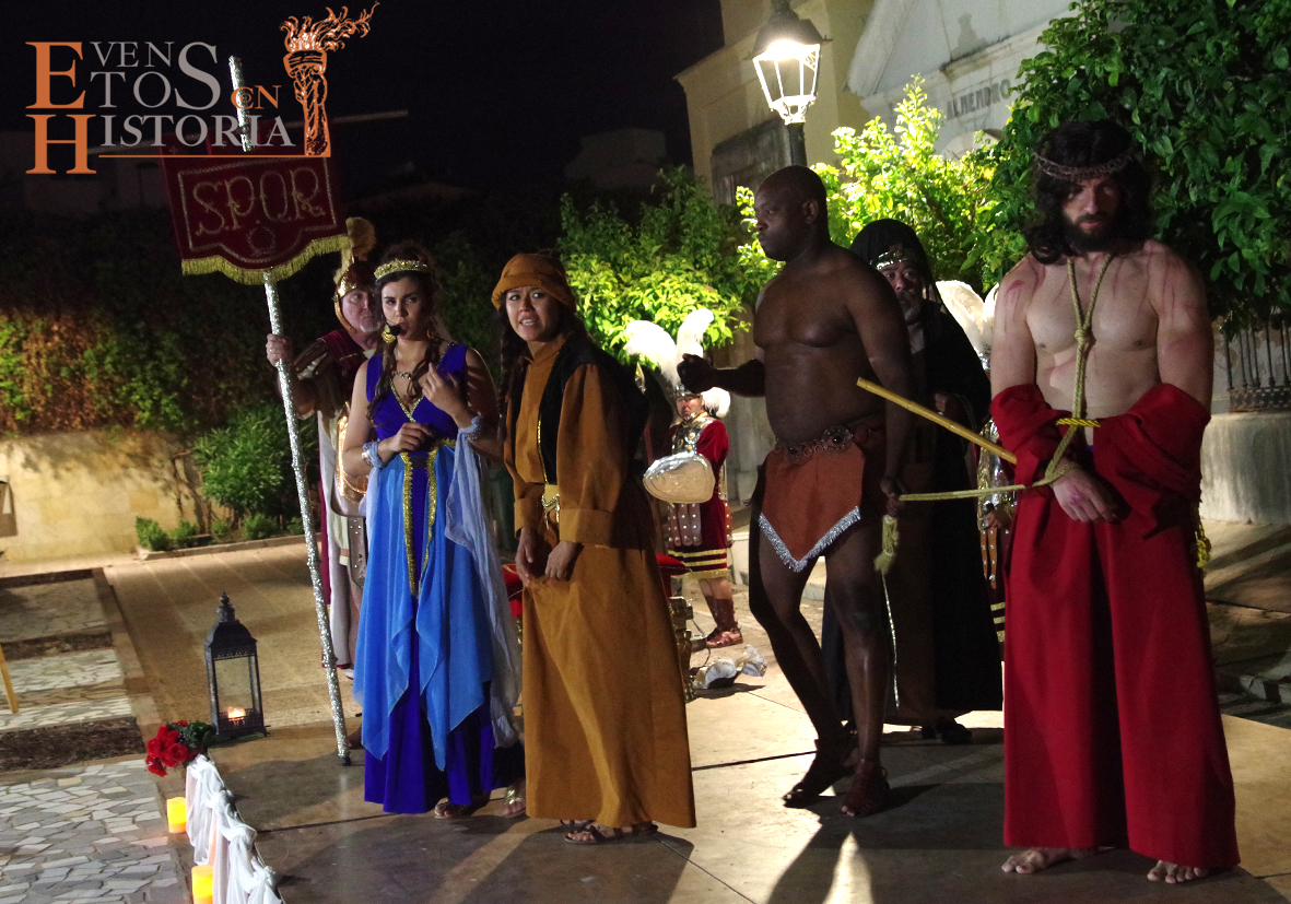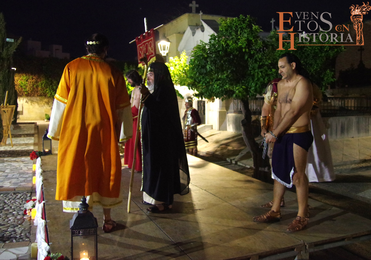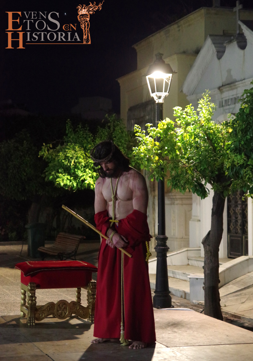 Desde la entrada al cementerio, el camino hacia el lugar de la representación estaba custodiado por soldados romanos. Ya acomodado el público, tras las palabras del presentador del acto, Juan Carlos Galeote, la procesión de un grupo de flagelantes introducía al conferenciante. Comienza su discurso y este se ve interrumpido por unas voces que suenan a lo lejos. Es imposible continuar, se baja del escenario y comienza el espectáculo. La pasión viviente de Cristo representada por vez primera en un camposanto.
