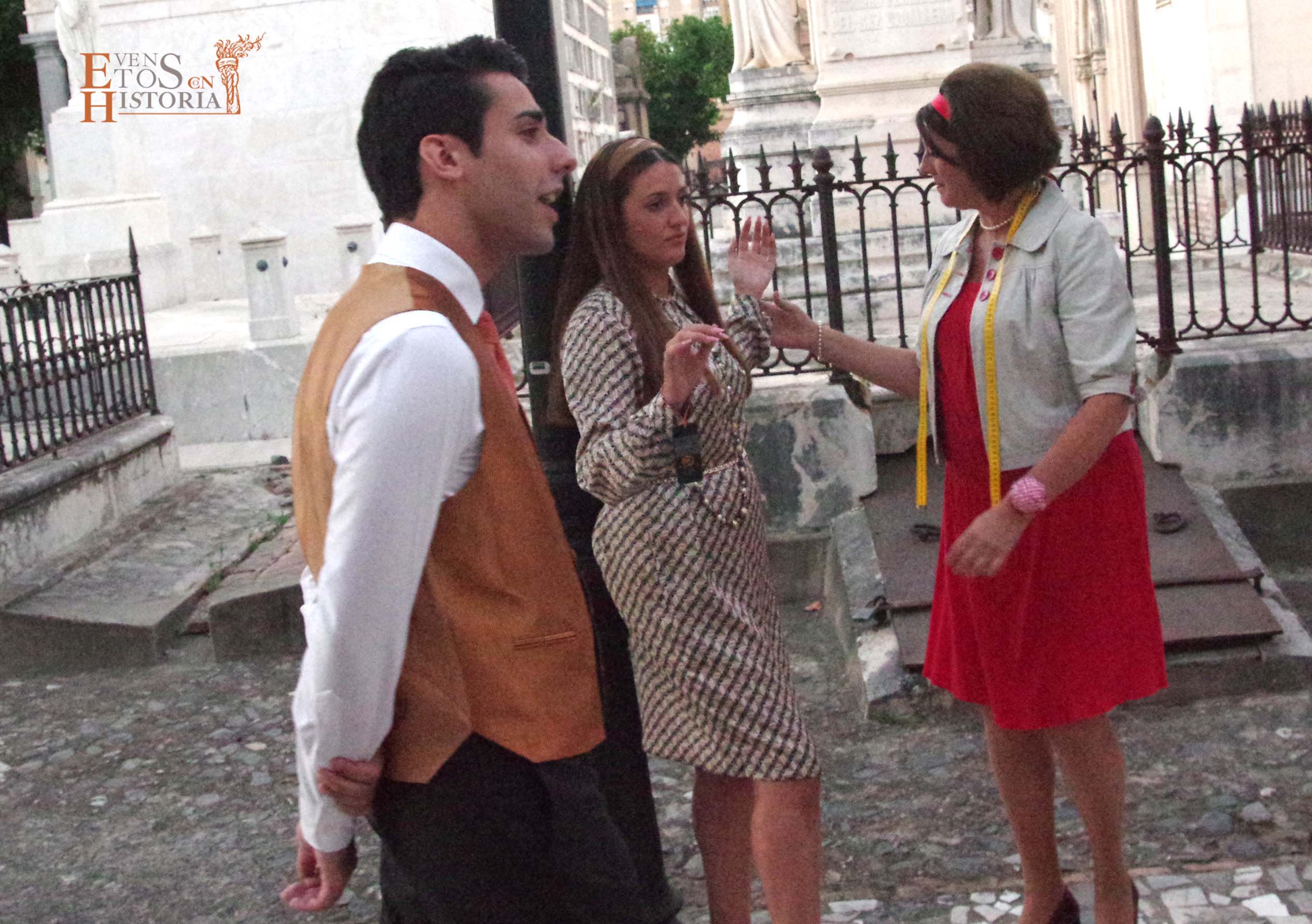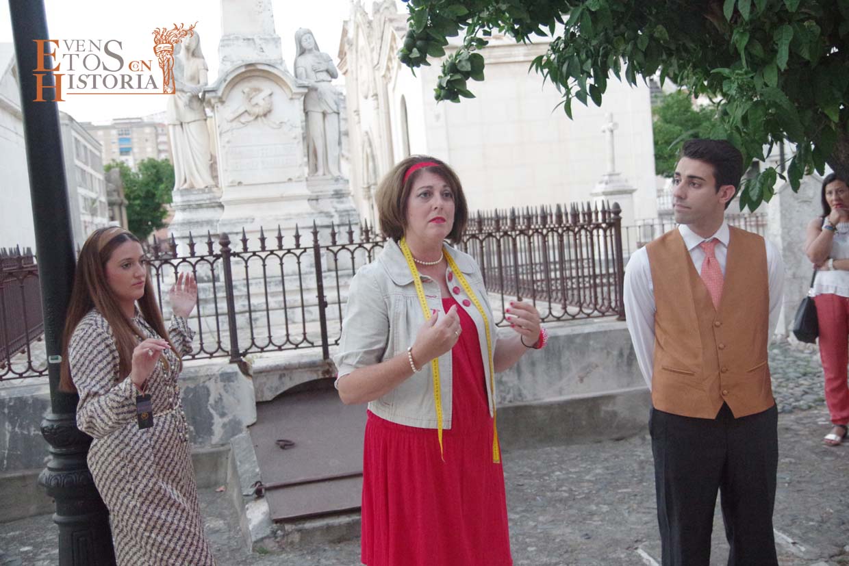 En esta ocasión, los viajeros del tiempo se adentraron de la mano de cuatro distinguidas damas del siglo XIX: la cantante Rosario Soler; la devota de Ntra. del Carmen, Julita Madrid; Dña. Encarnación Calvillo, y la violinista Esperanza Rus. Ellas guiaron a nuestros visitantes de forma amena por los rincones funerarios más destacados mientras oían de fondo suaves melodías de violín.