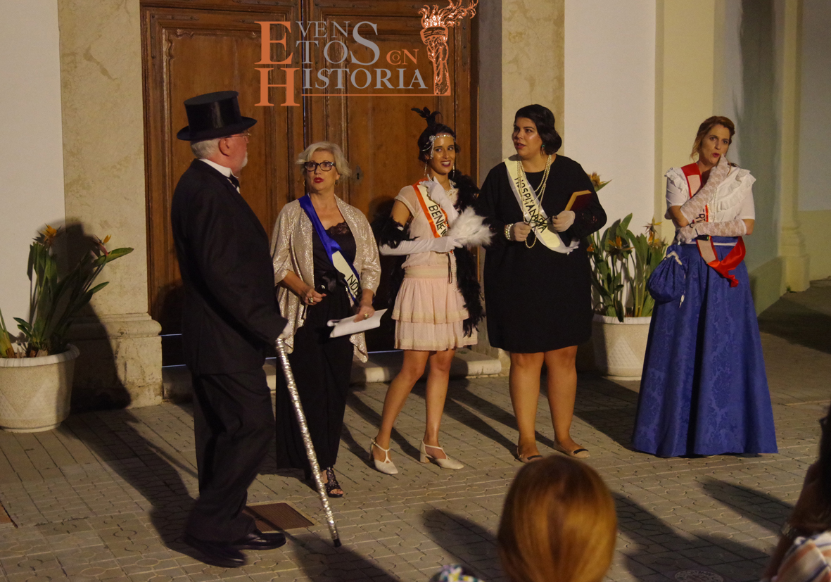 Como cicerones, las alegorías de cuatro títulos de la ciudad de Málaga: Noble, Libertad, Hospitalaria y Benéfica. Hicieron un homenaje al centenario del edificio consistorial a través de su atuendo que abarcaba desde principios del siglo XX a nuestros días.