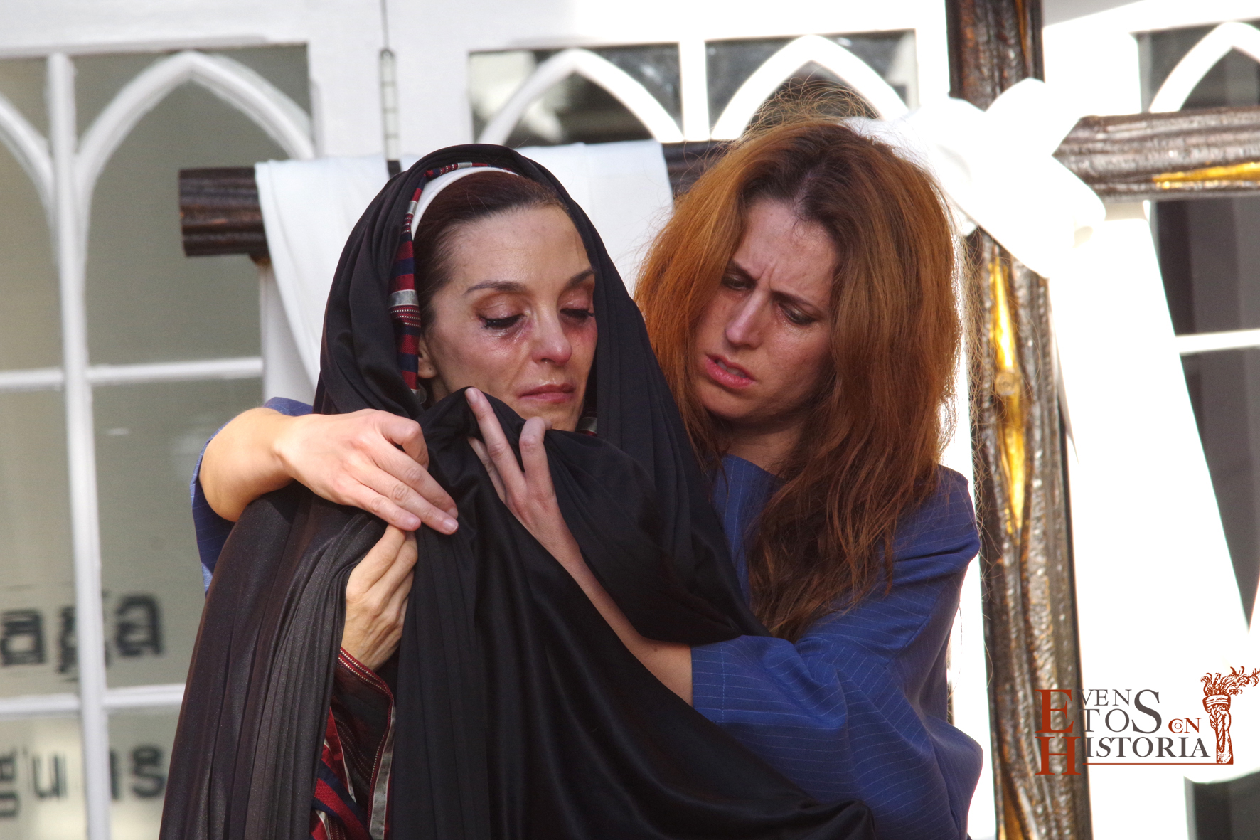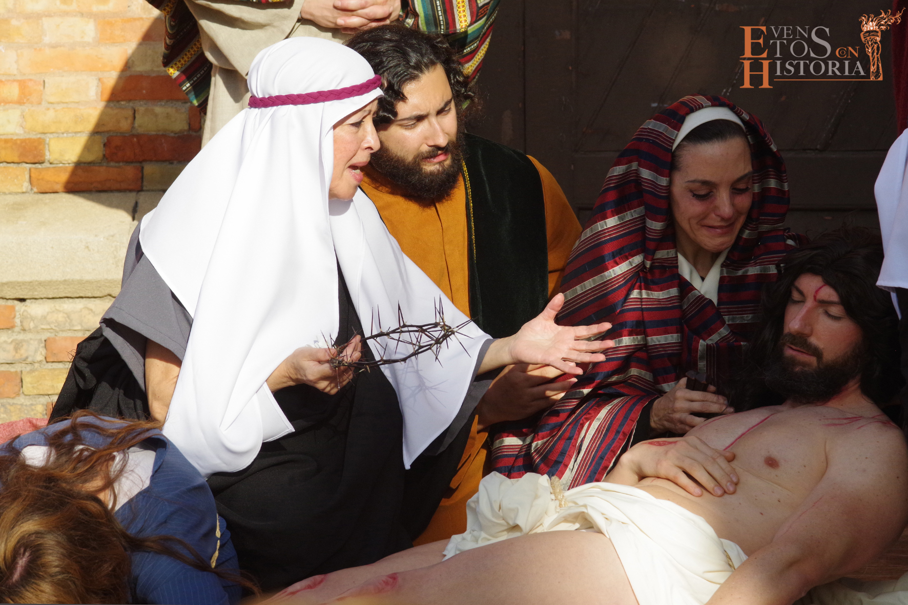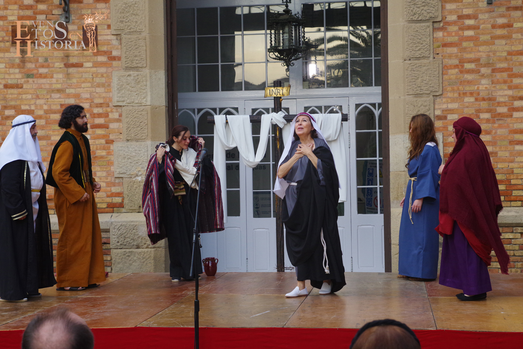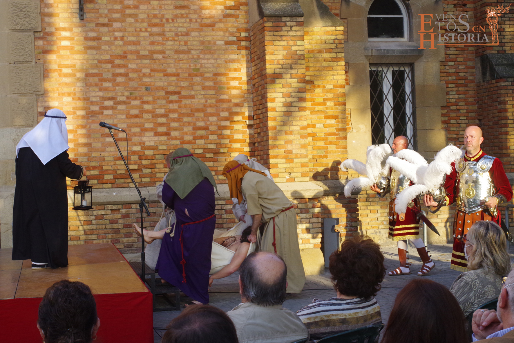 QUINTA ANGUSTIA. El Domingo de Resurrección 4 de abril pusimos en escena una adaptación del auto sacramental del mismo nombre de Juan Timoneda (siglo XVI) en los jardines del Hospital Noble de Málaga. Un solemne clima de luto y lamento se apoderó de este enclave, transportando al público asistente a aquellos momentos finales de la Pasión de Jesús. La cofradía del Sagrado Descendimiento de Málaga fue la encargada de organizar esta actividad para fines sociales de la hermandad y que contó con la colaboración del Ayuntamiento de Málaga y la participación de miembros de la Centuria Romana de Ntro. Padre Jesús Nazareno de la Misericordia de Campillos.