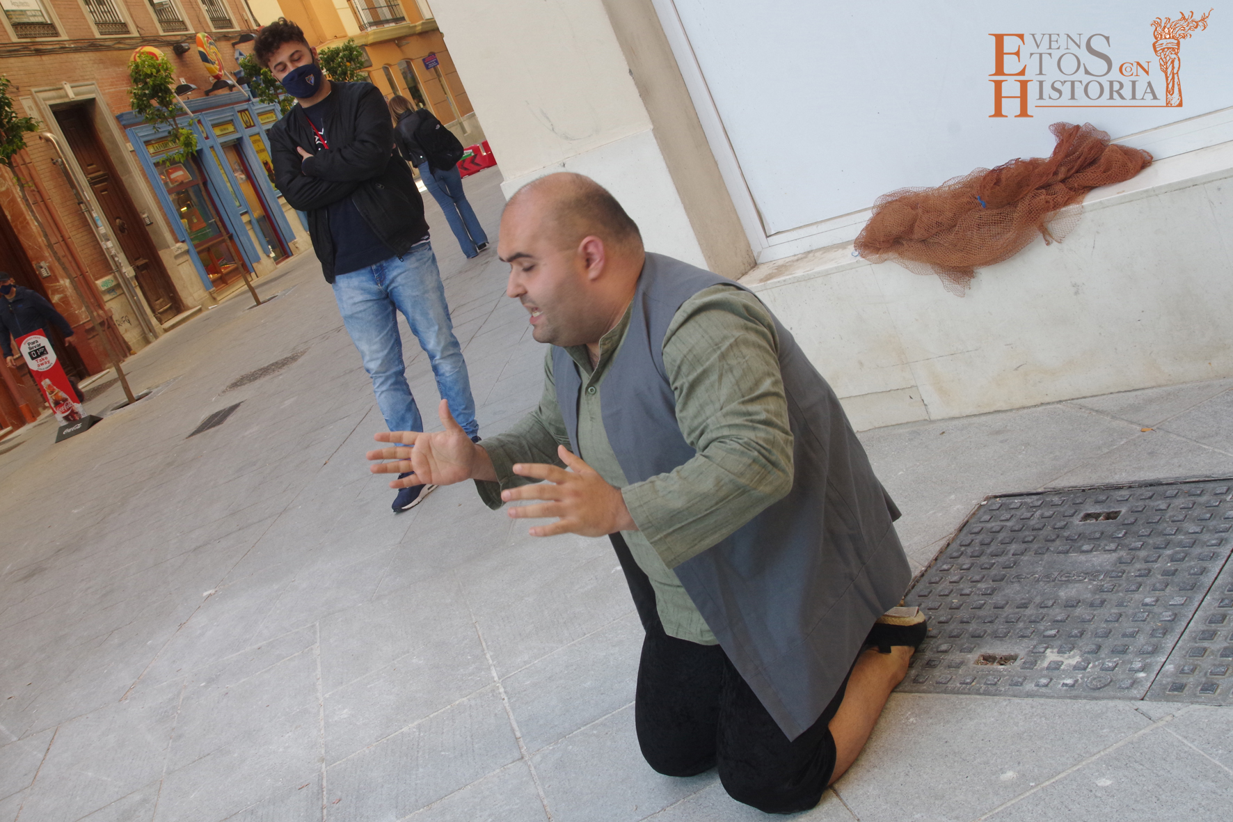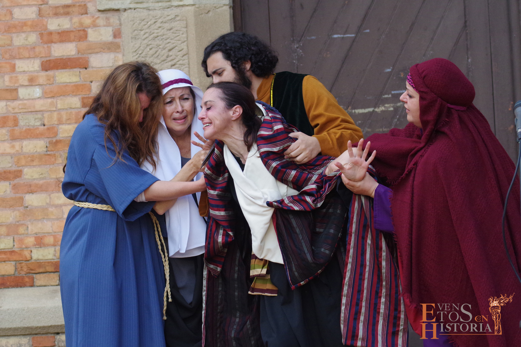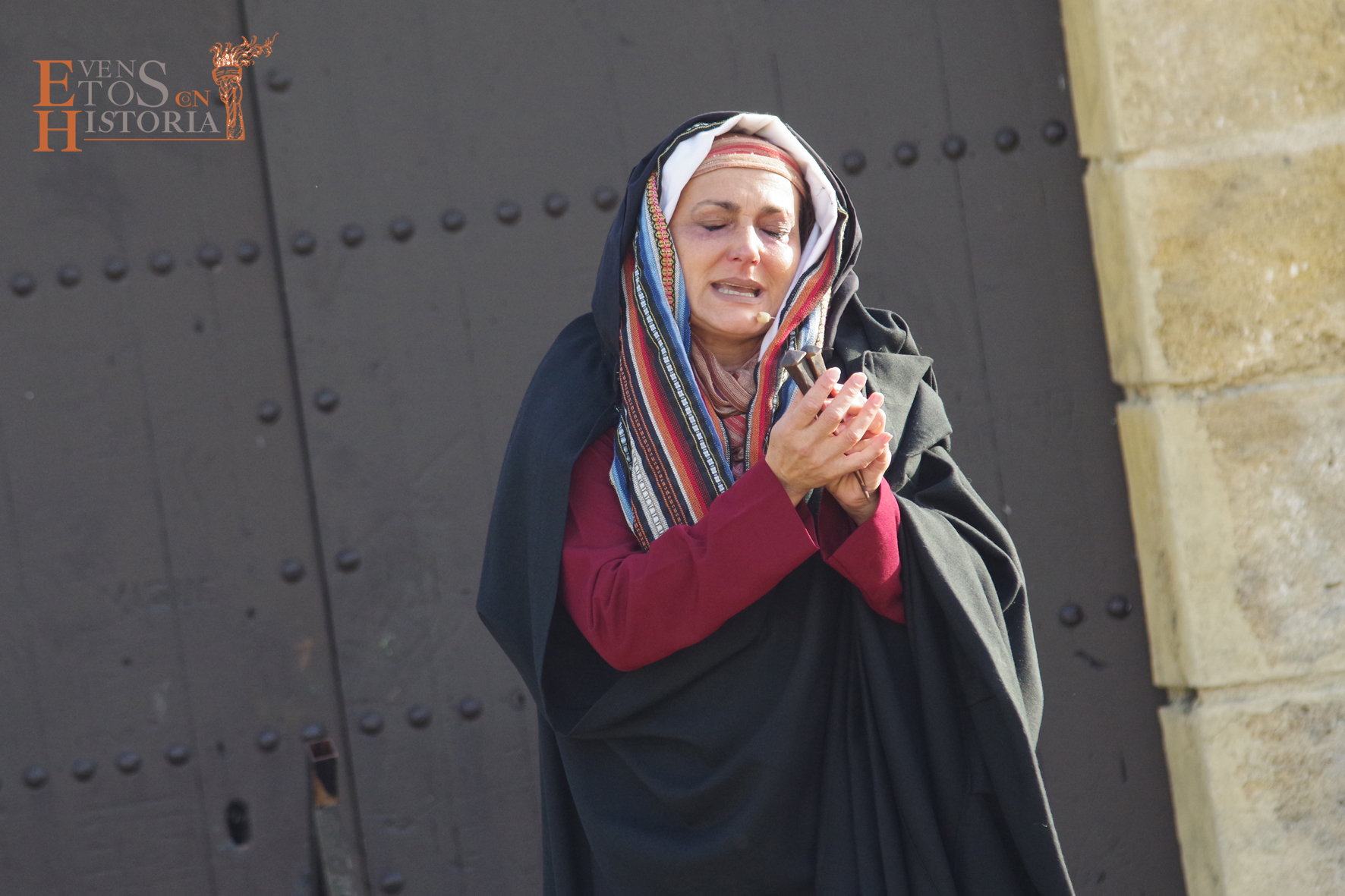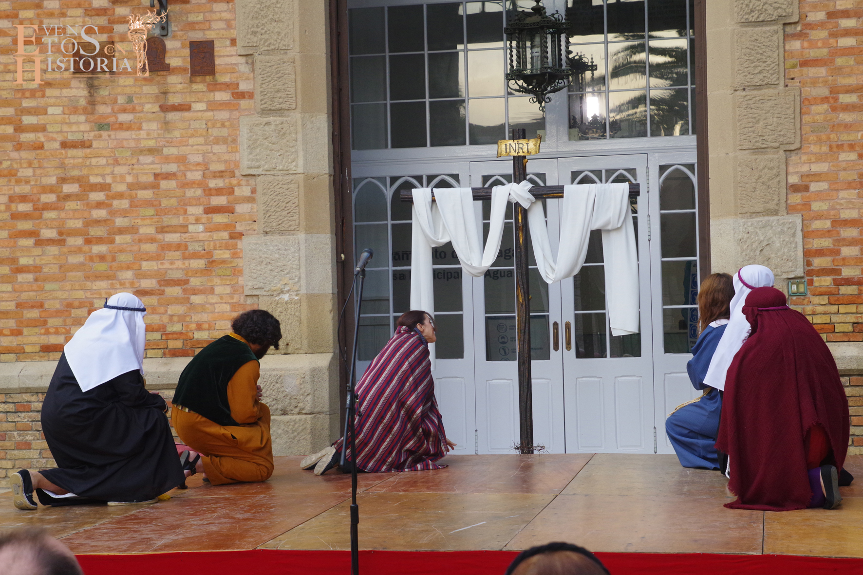 QUINTA ANGUSTIA. El Domingo de Resurrección 4 de abril pusimos en escena una adaptación del auto sacramental del mismo nombre de Juan Timoneda (siglo XVI) en los jardines del Hospital Noble de Málaga. Un solemne clima de luto y lamento se apoderó de este enclave, transportando al público asistente a aquellos momentos finales de la Pasión de Jesús. La cofradía del Sagrado Descendimiento de Málaga fue la encargada de organizar esta actividad para fines sociales de la hermandad y que contó con la colaboración del Ayuntamiento de Málaga y la participación de miembros de la Centuria Romana de Ntro. Padre Jesús Nazareno de la Misericordia de Campillos.