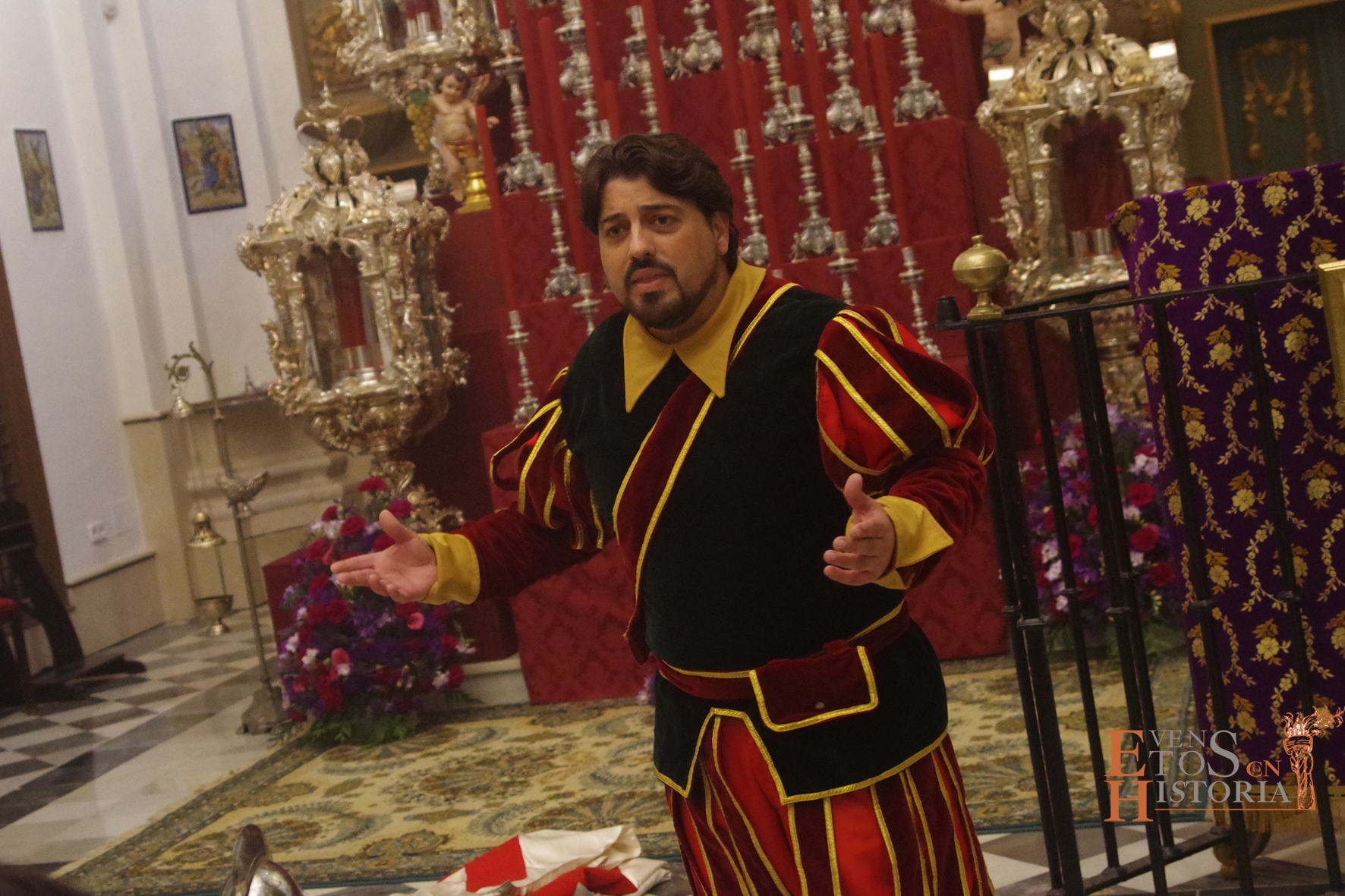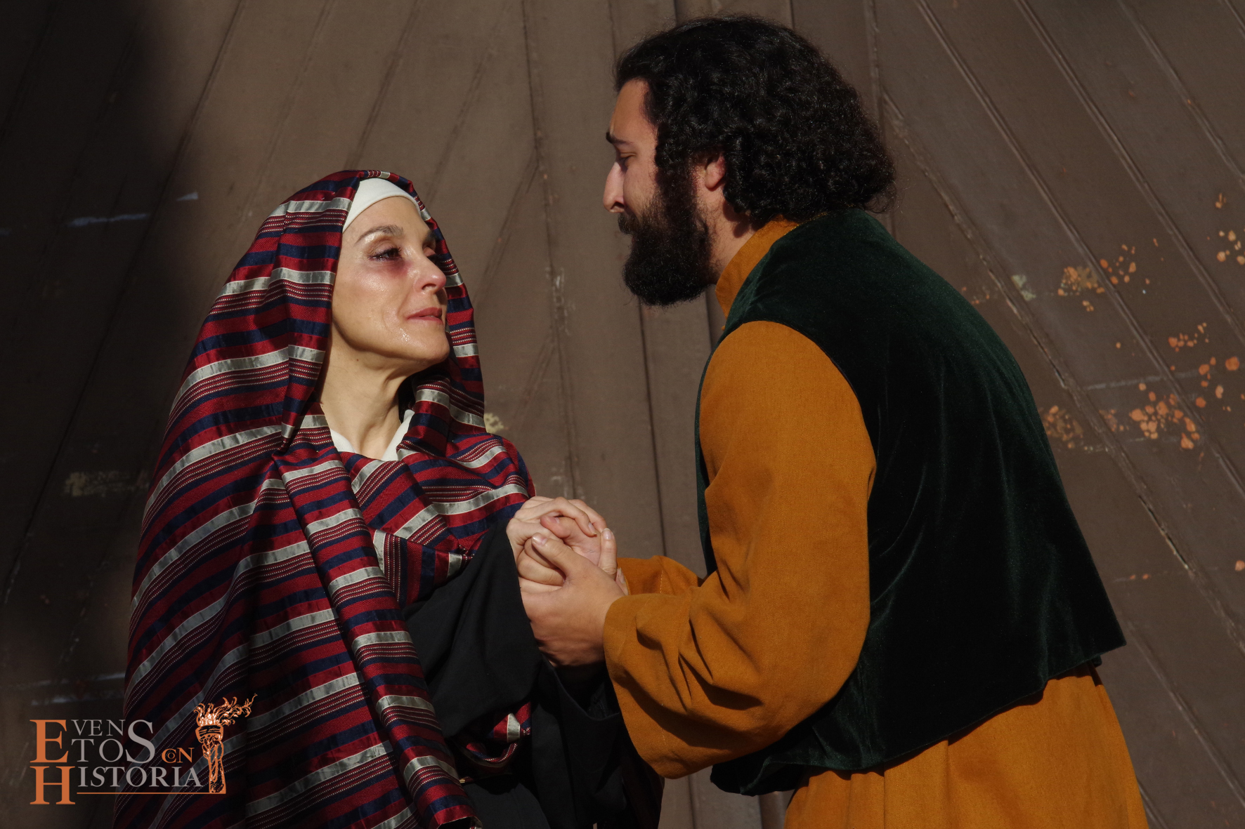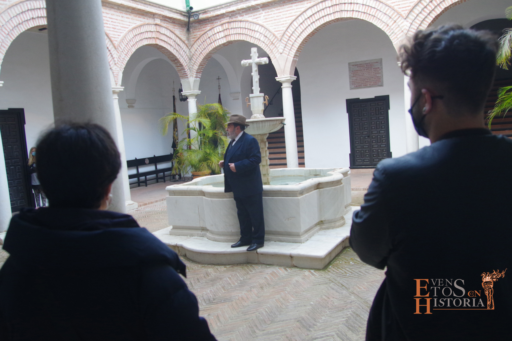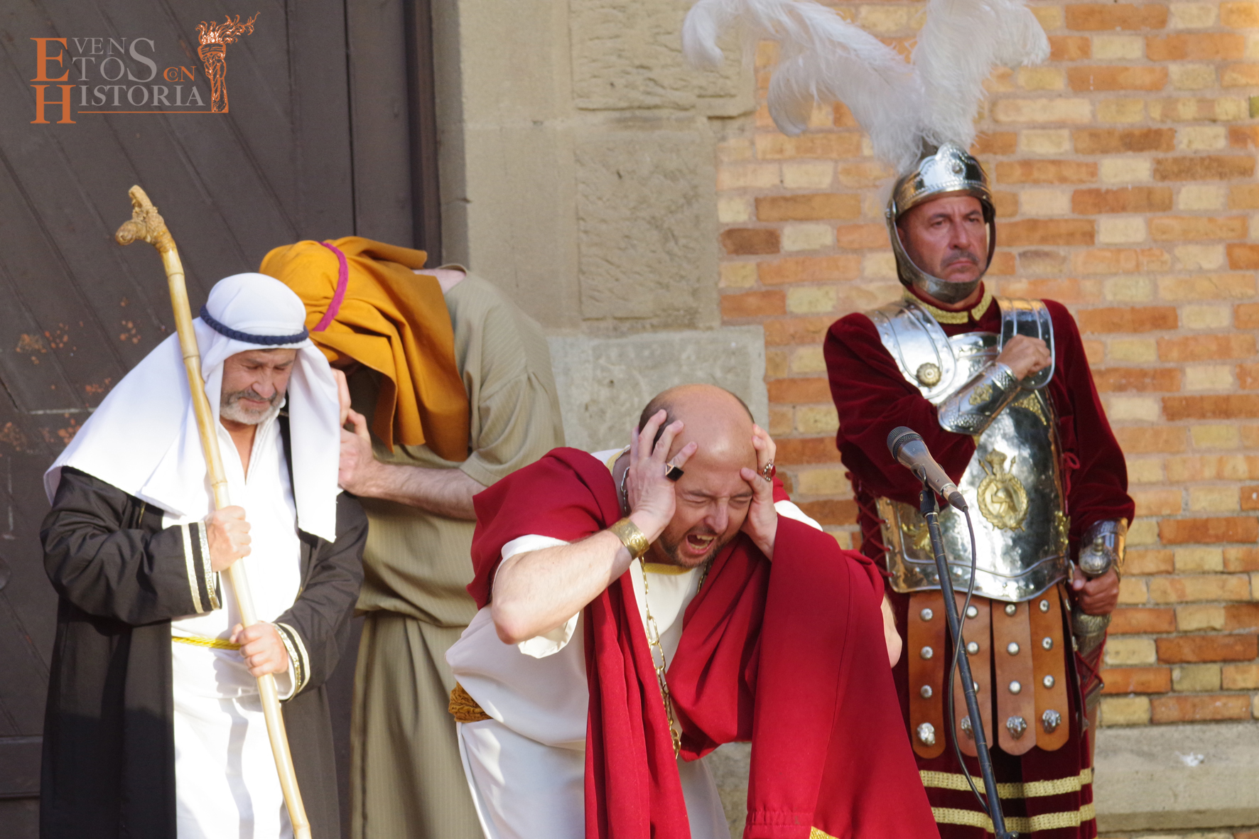 QUINTA ANGUSTIA. El Domingo de Resurrección 4 de abril pusimos en escena una adaptación del auto sacramental del mismo nombre de Juan Timoneda (siglo XVI) en los jardines del Hospital Noble de Málaga. Un solemne clima de luto y lamento se apoderó de este enclave, transportando al público asistente a aquellos momentos finales de la Pasión de Jesús. La cofradía del Sagrado Descendimiento de Málaga fue la encargada de organizar esta actividad para fines sociales de la hermandad y que contó con la colaboración del Ayuntamiento de Málaga y la participación de miembros de la Centuria Romana de Ntro. Padre Jesús Nazareno de la Misericordia de Campillos.