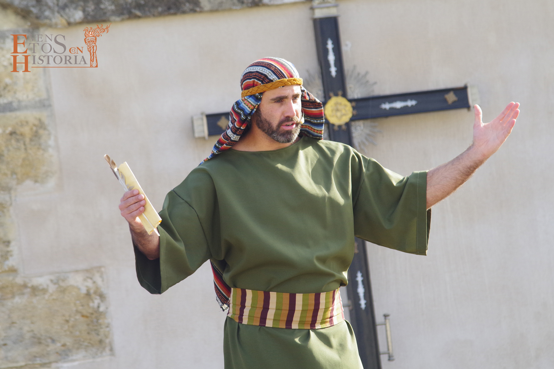 MONÓLOGO DE LA PASIÓN. El sábado 3 de abril representamos en la Casa Fuerte Bezmiliana del Rincón de la Victoria un Auto Sacramental que trata de los testimonios de los más allegados a Jesús después de su muerte. La obra es conducida por el personaje Judá Ben Hur, testigo de excepción que recogió en su pergamino lo que vio y oyó, y que, como si de un viajero del tiempo se tratara, hoy viene a nuestros días a mostrar esa verdad. El Área de Cultura del Rincón de la Victoria fue la organizadora de este emotivo evento que pudo disfrutar medio centenar de personas.