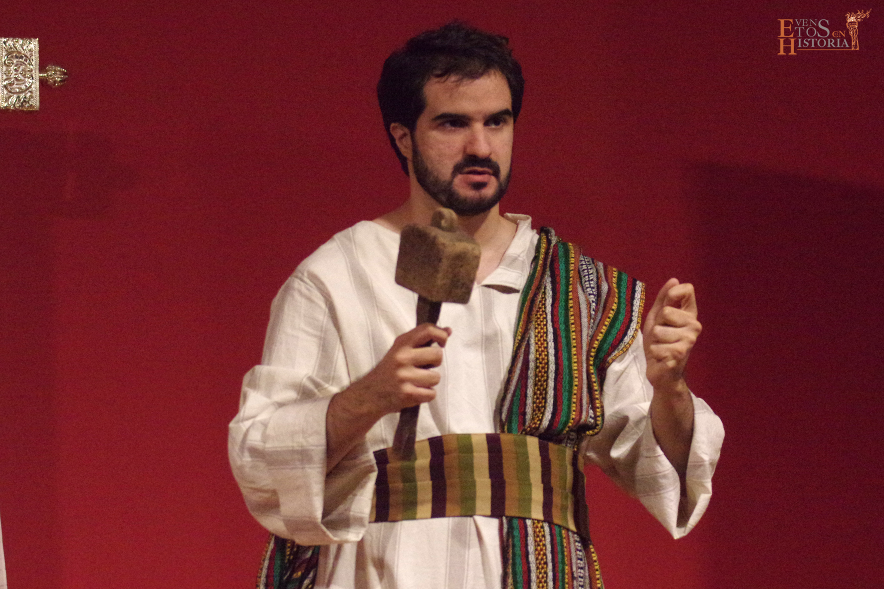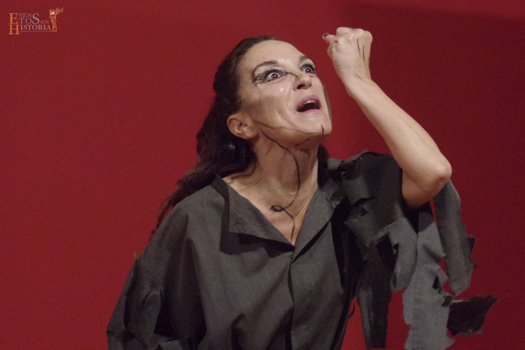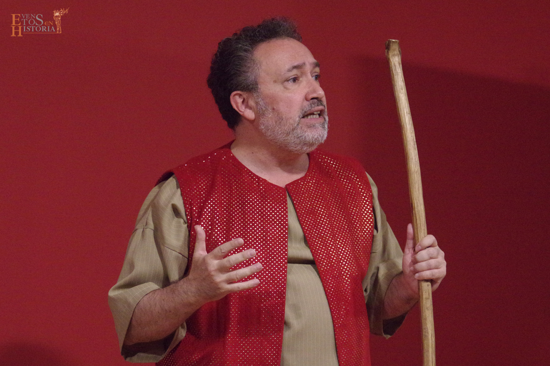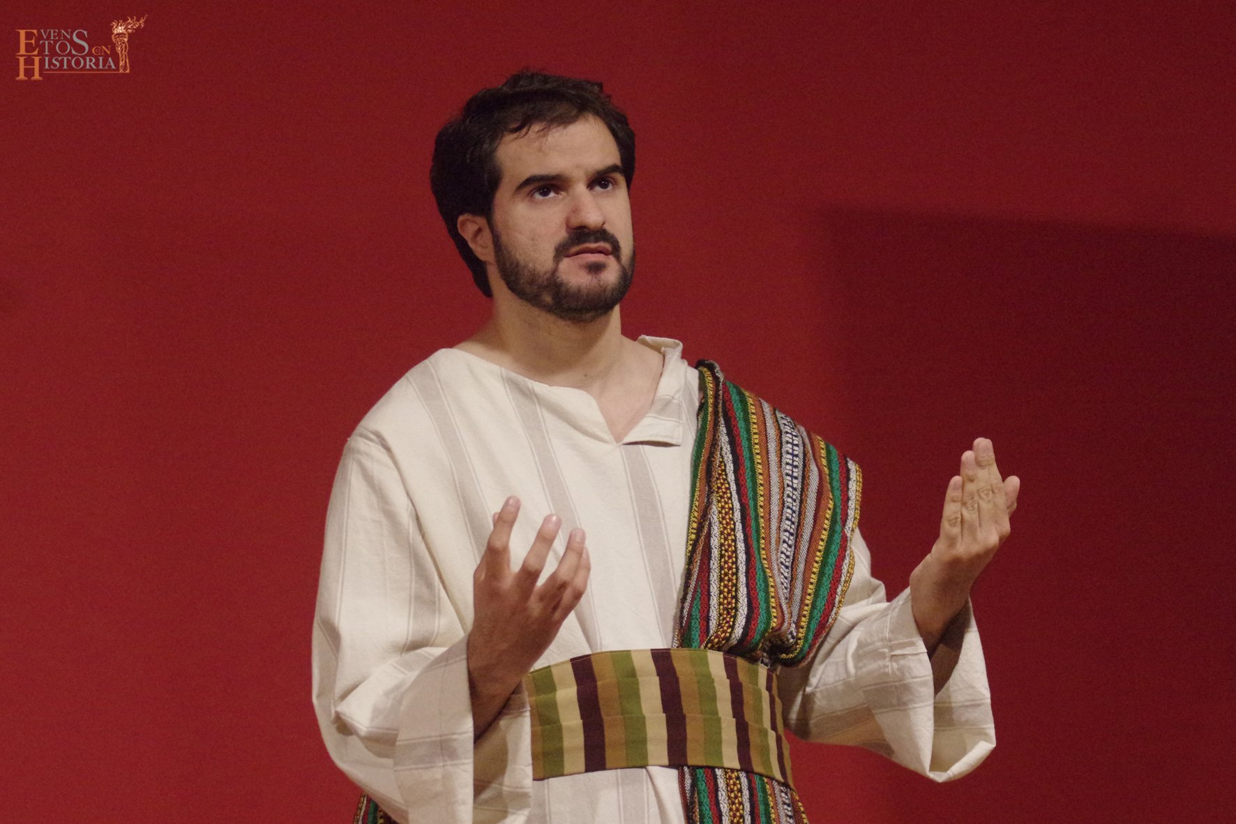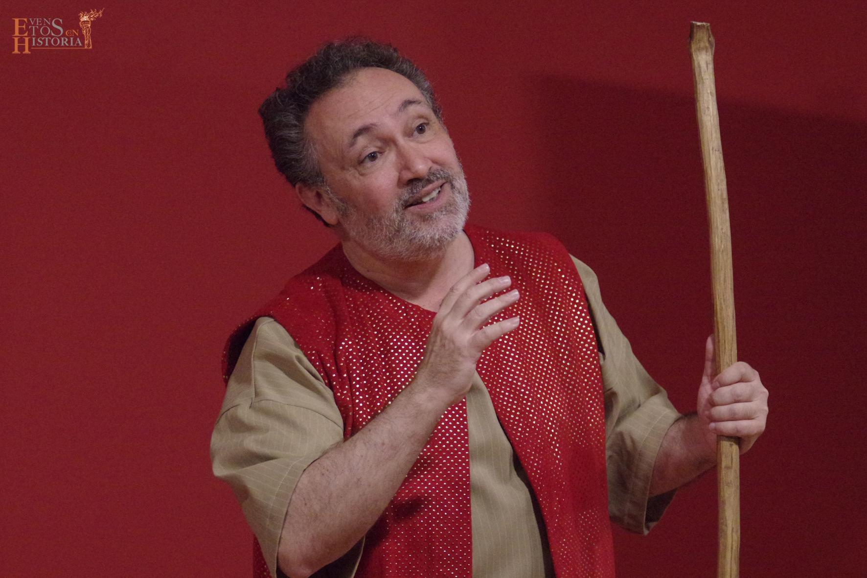 Nos trasladamos al monte Calvario ante una cruz desnuda, momentos después de la bajada de Cristo, sin nadie… todo era silencio y desolación. Y fueron entrando uno a uno cada testigo de los hechos que marcaron la historia final del Maestro introducidos por un narrador de excepción, Judá Ben Hur. Así, el público se fue envolviendo en una atmósfera indescriptible con los monólogos del soldado romano arrepentido Flavio, Nicodemo, José de Arimetea, la madre María y María Magdalena. La emoción de la sala se perturbó cuando entró él, el innombrable, el Ser de Oscuridad… con tono desafiante y arrogante mostró sus armas, su poder y casi su victoria en esta eterna batalla entre el bien y el mal.