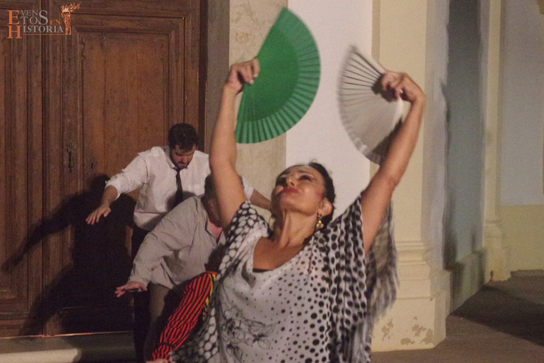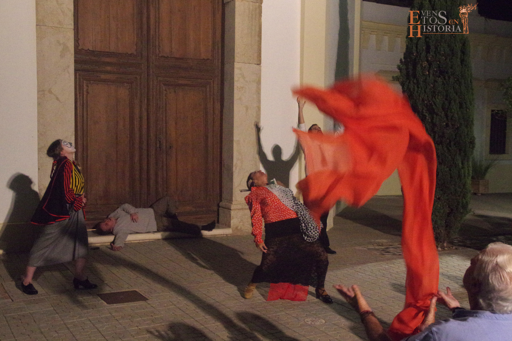 Una vez el público se congregó de nuevo en el espacio central del camposanto delante de la capilla de los Heredia, quisimos destacar el papel del descubridor del talento del joven Picasso, el pintor Joaquín Martínez de la Vega, en los momentos finales de tormento y desesperación que lo llevaría a la muerte. Y conectando con el dolor y el desgarro del sufrimiento humano, desgranamos el significado de uno de los cuadros más emblemáticos del artista malagueño con una alegoría de la Guerra, que en forma de danza flamenca expresó los diferentes elementos picassianos de esta obra desde el lenguaje del cuerpo y la emoción.