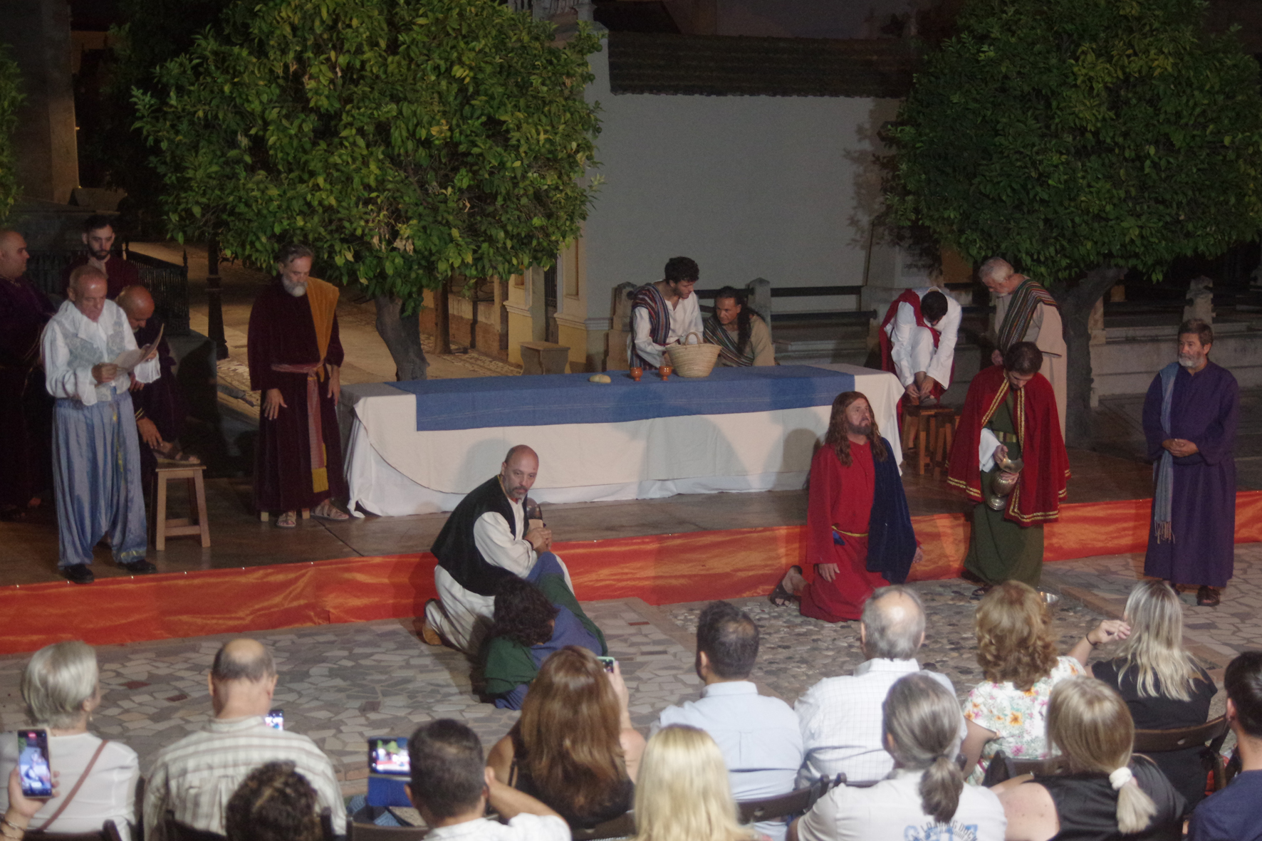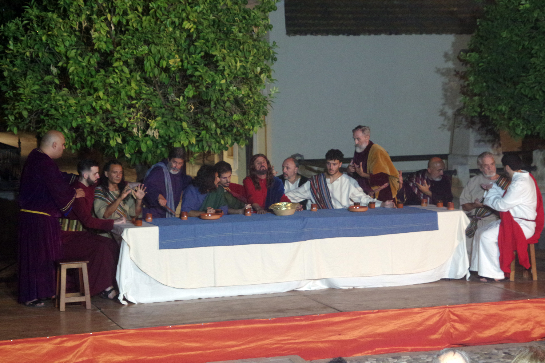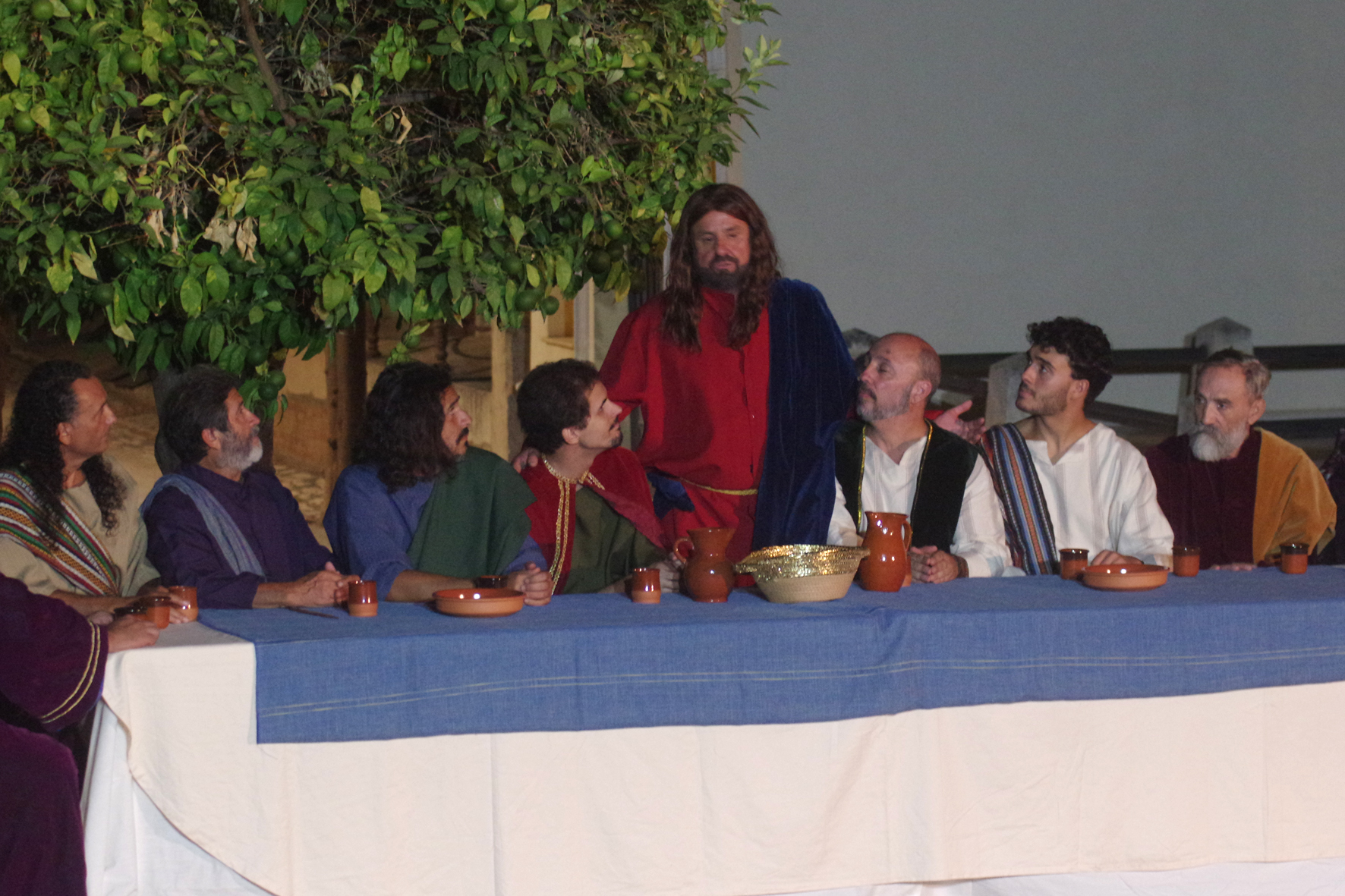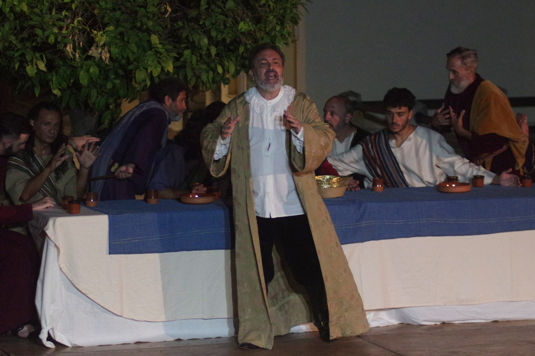 Un equipo de más de 30 personas dio lo mejor de sí para llevar a través de cinco obras de arte los momentos previos y posteriores a la Sagrada Cena de Cristo en forma de auto sacramental donde no sólo el teatro, sino el baile y el arte de la pintura y la imaginería estuvieron presentes.