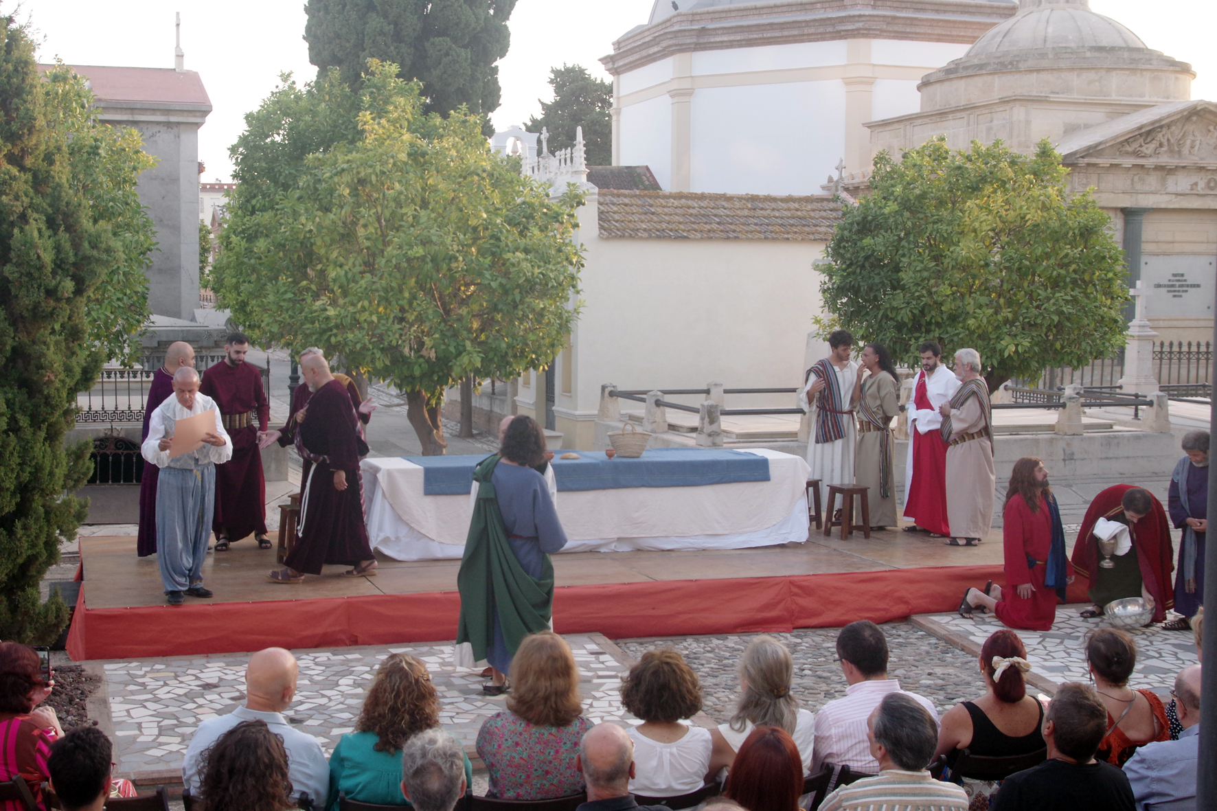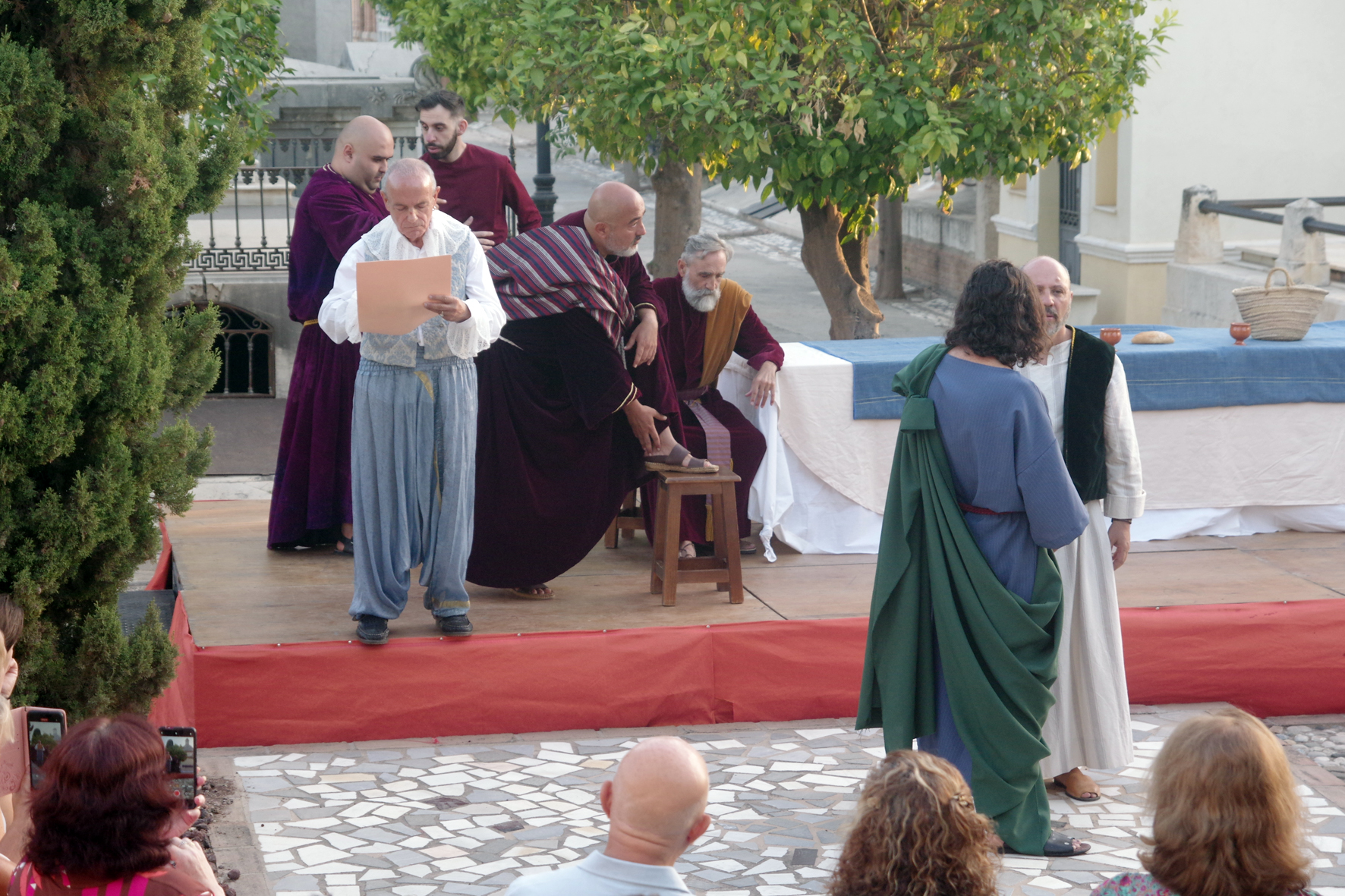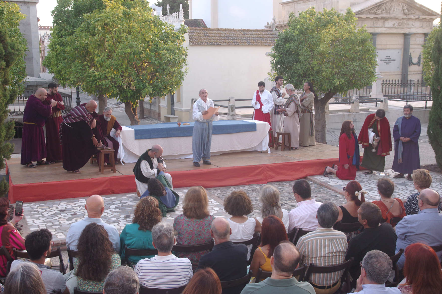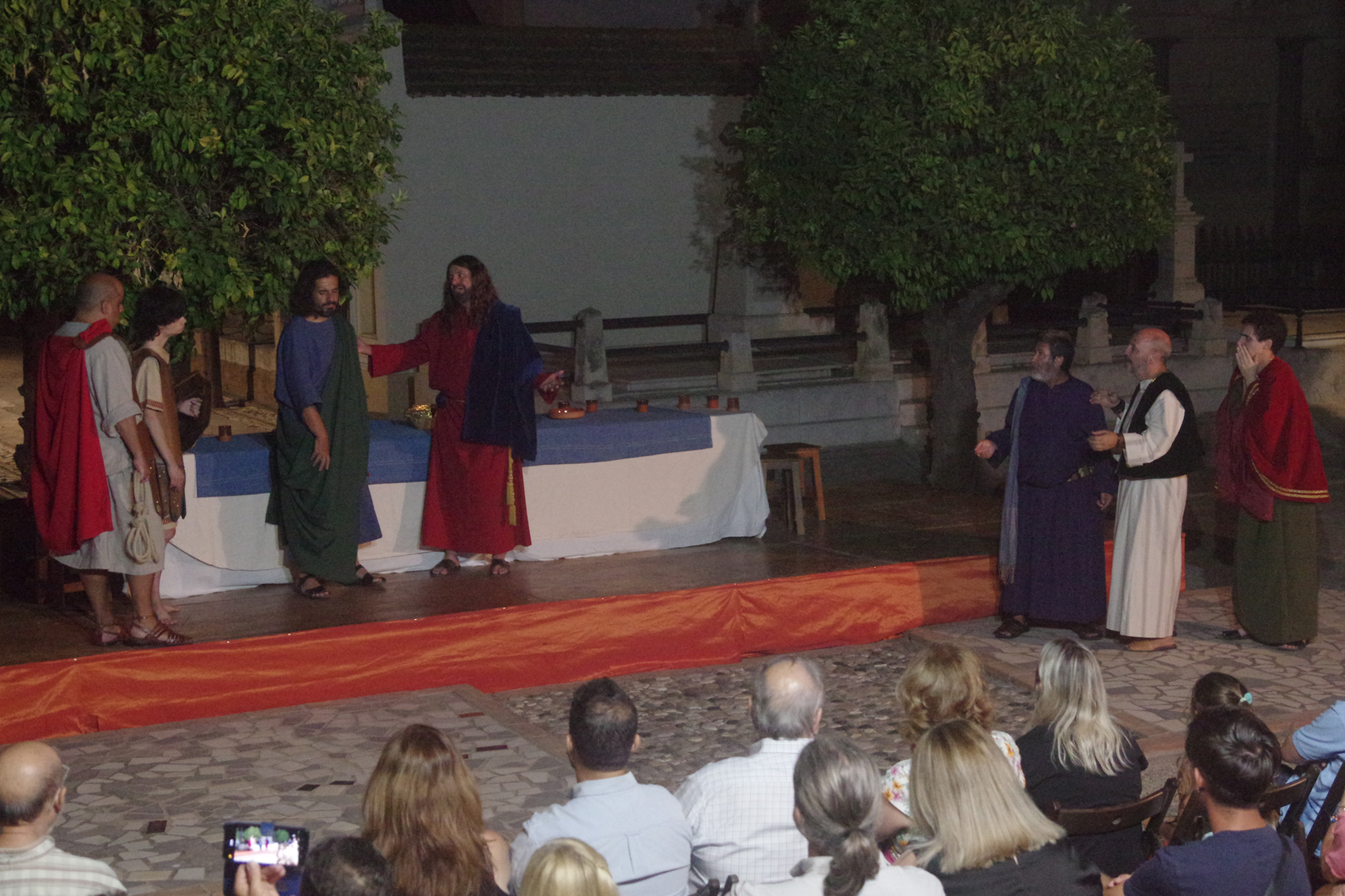 Un equipo de más de 30 personas dio lo mejor de sí para llevar a través de cinco obras de arte los momentos previos y posteriores a la Sagrada Cena de Cristo en forma de auto sacramental donde no sólo el teatro, sino el baile y el arte de la pintura y la imaginería estuvieron presentes.