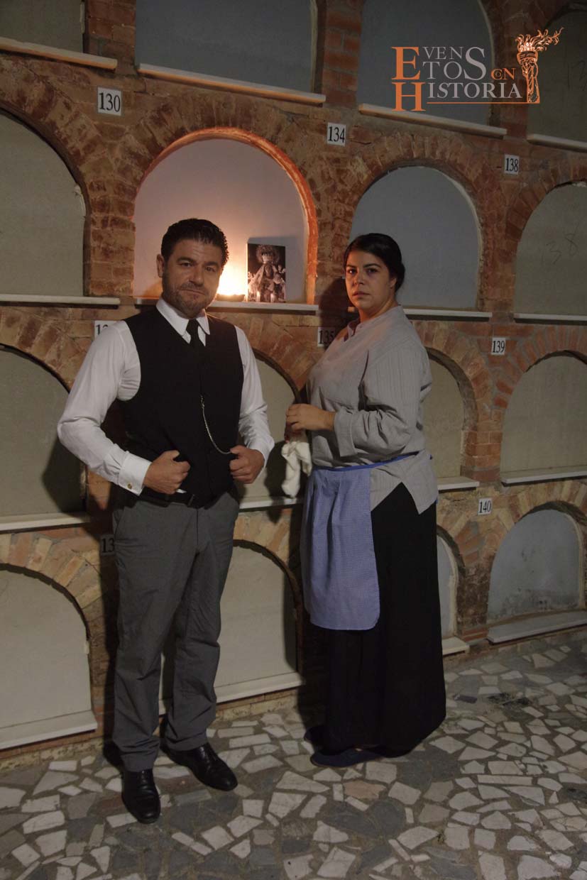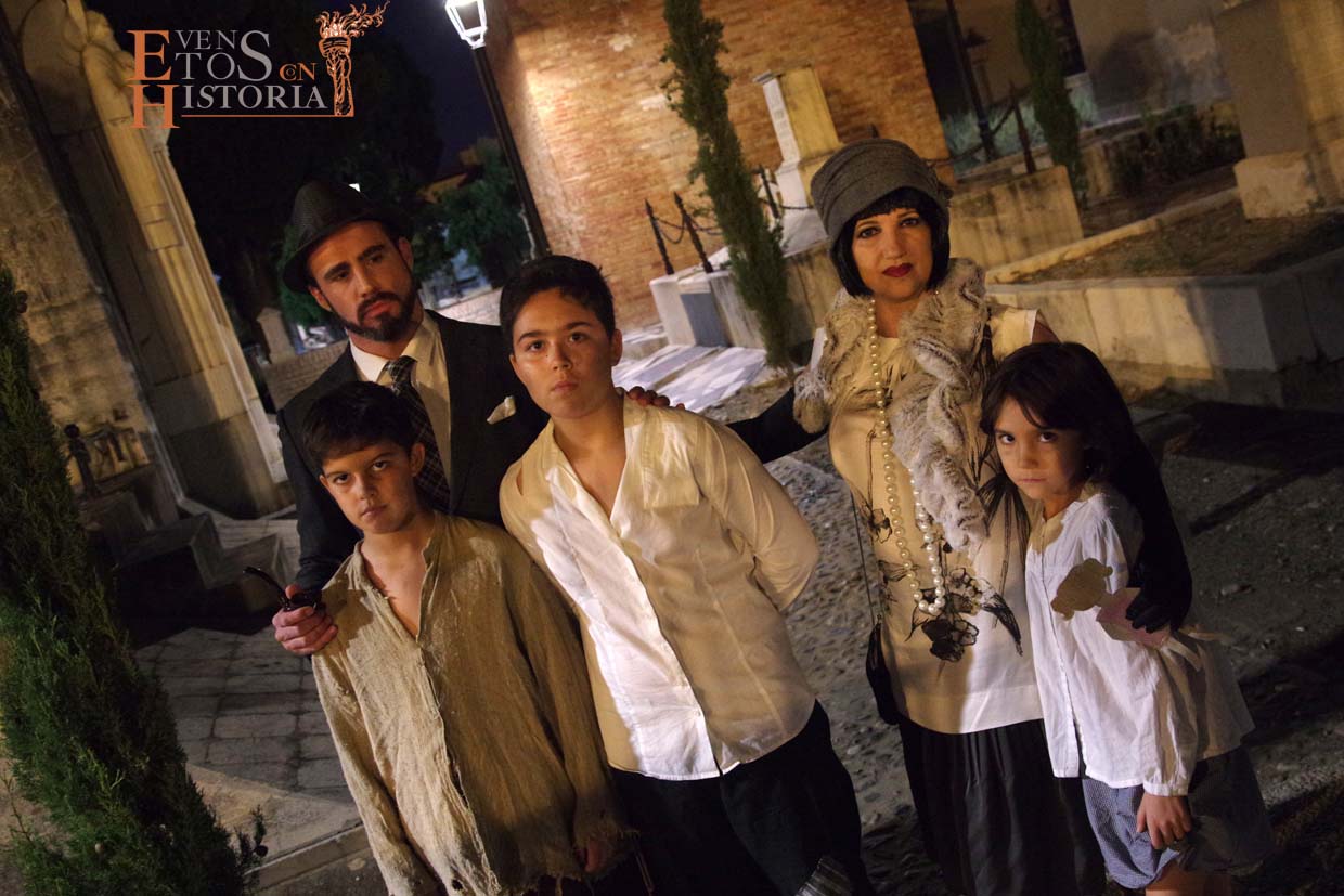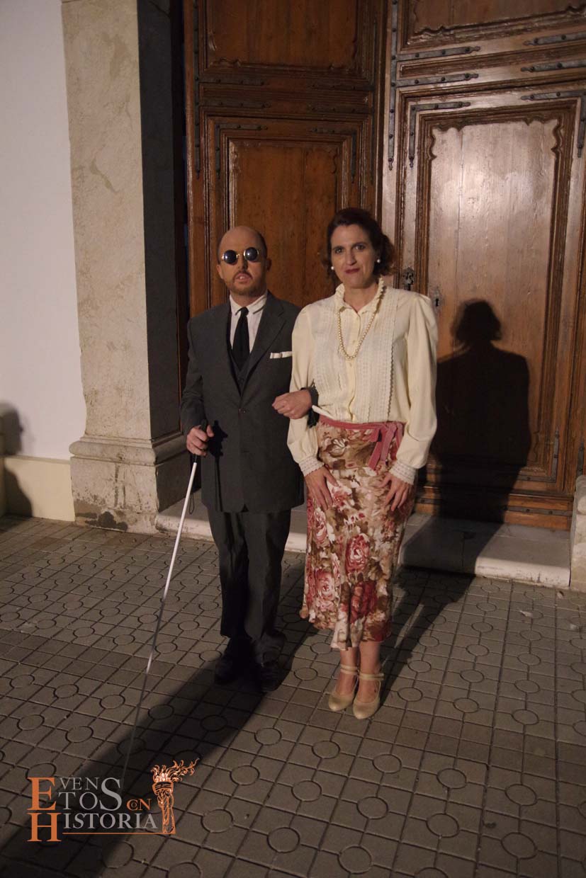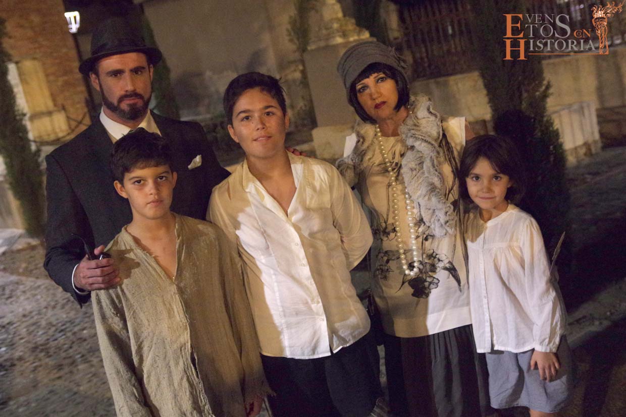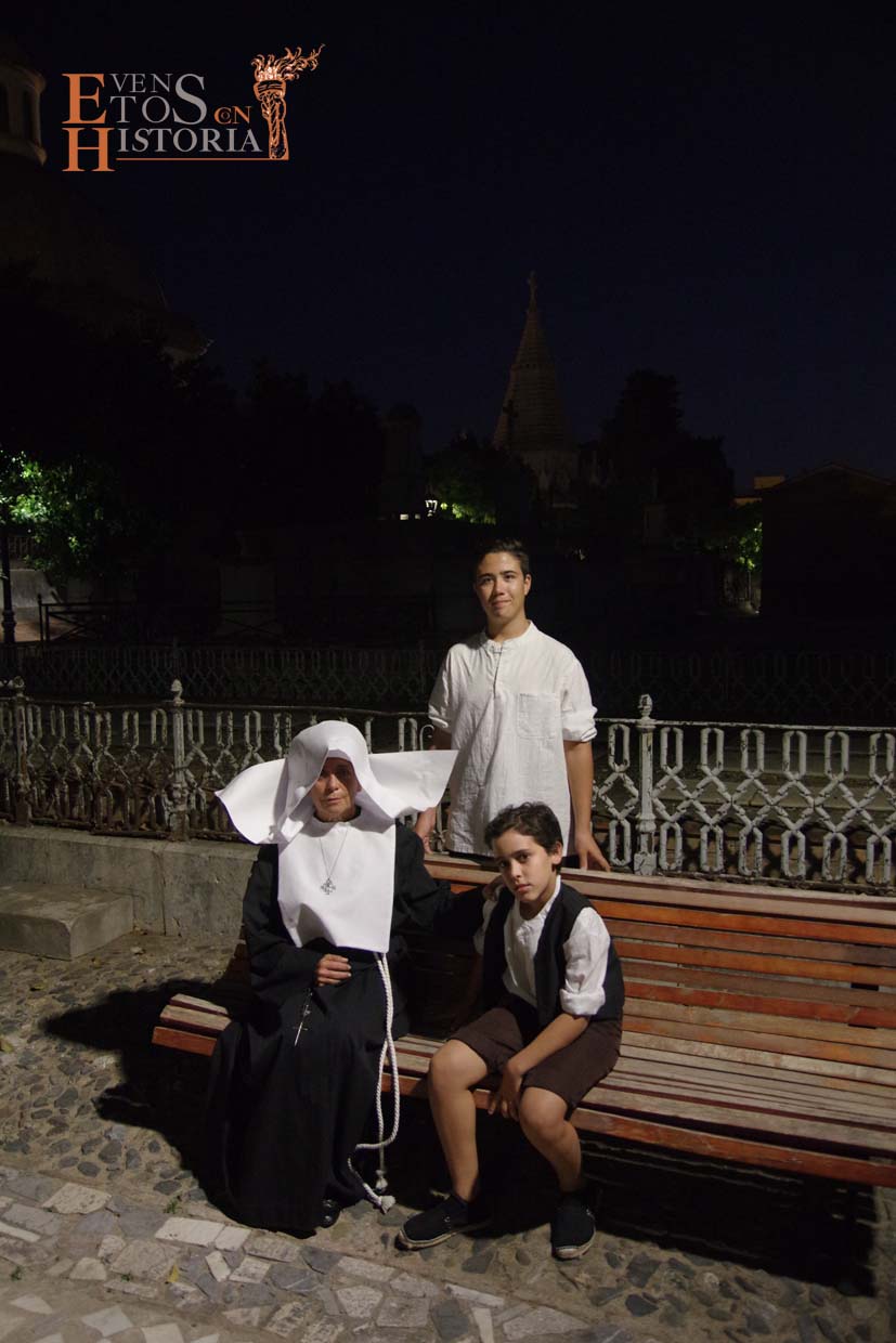 Cuatro anfitrionas hicieron de cicerone, recorriendo las calles de esta ciudad de las almas entre anécdotas, curiosidades, arte funerario y melodías que salían de un violín que lleva acompañando a nuestros viajeros del tiempo desde que se iniciaron estas mágicas noches en San Miguel. La elegancia de Dña. Catalina Solís de la Plata, la chispa de Dña. Jimena, la dulzura de Dña. Julia Madrid y el arte de Dña. Rosario Soler fueron compañeros de viaje entre tramo y tramo hasta llegar a nuestros protagonistas.