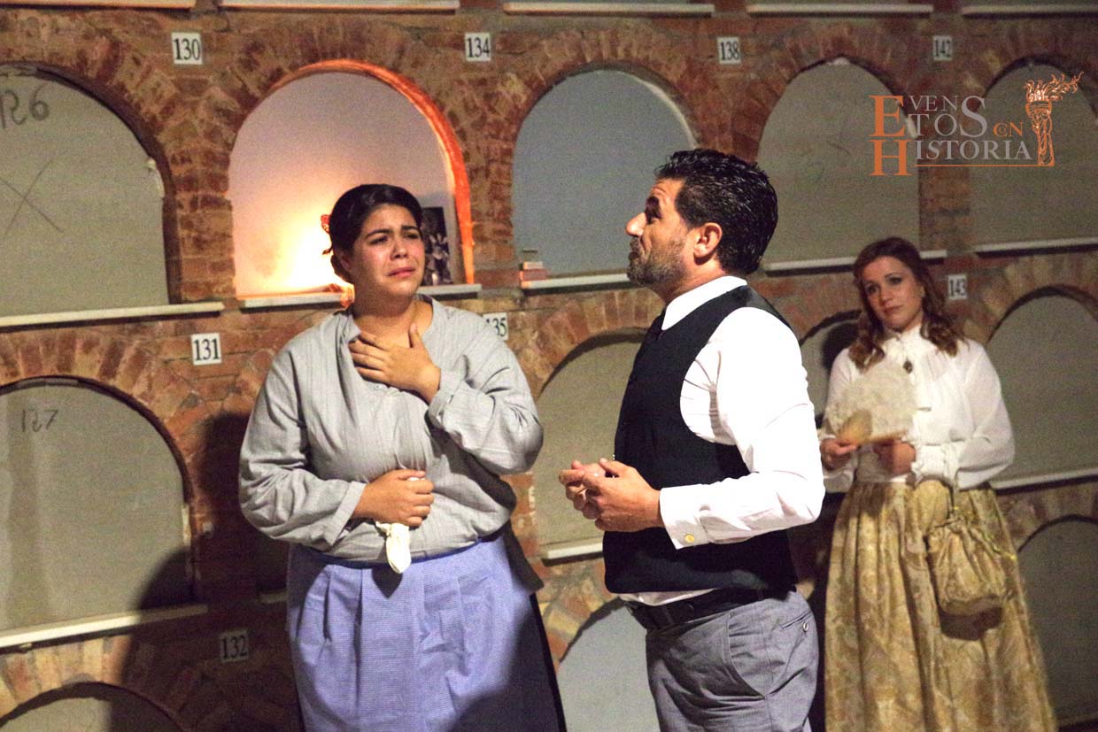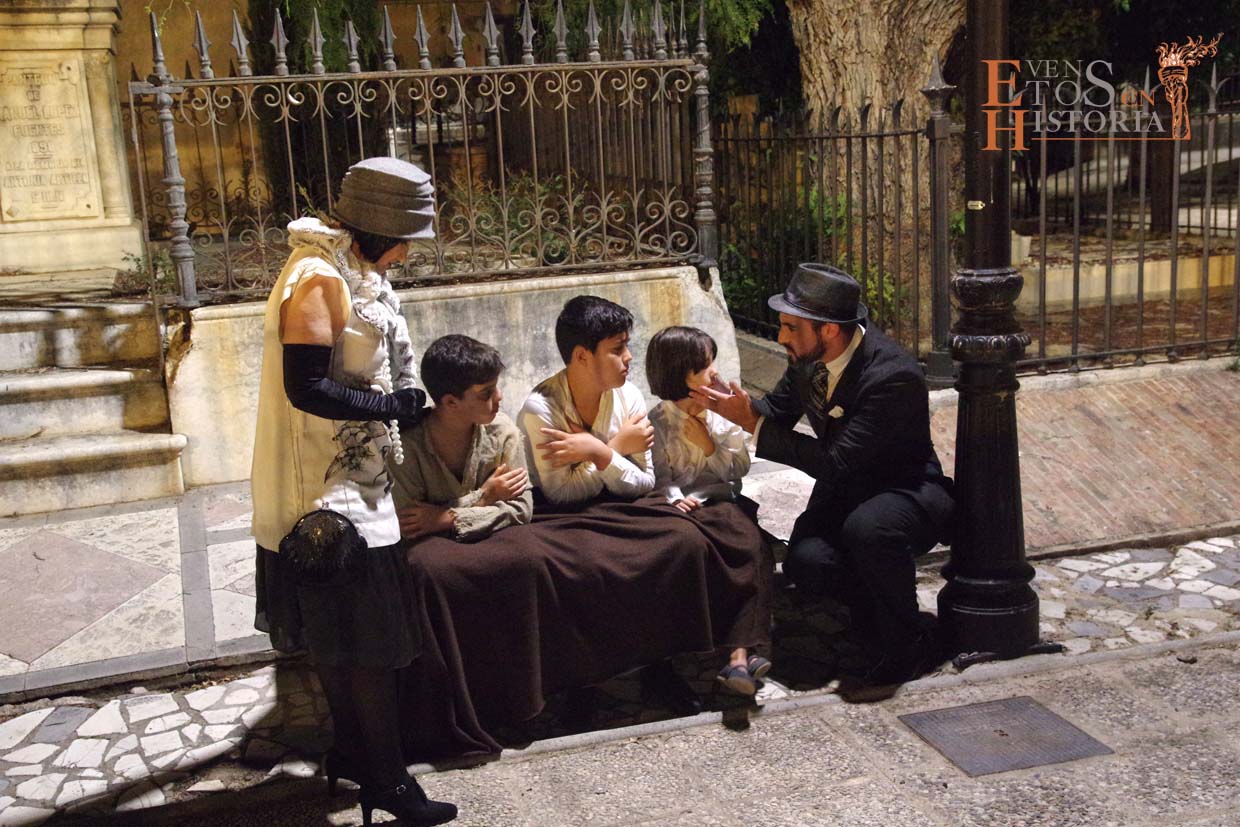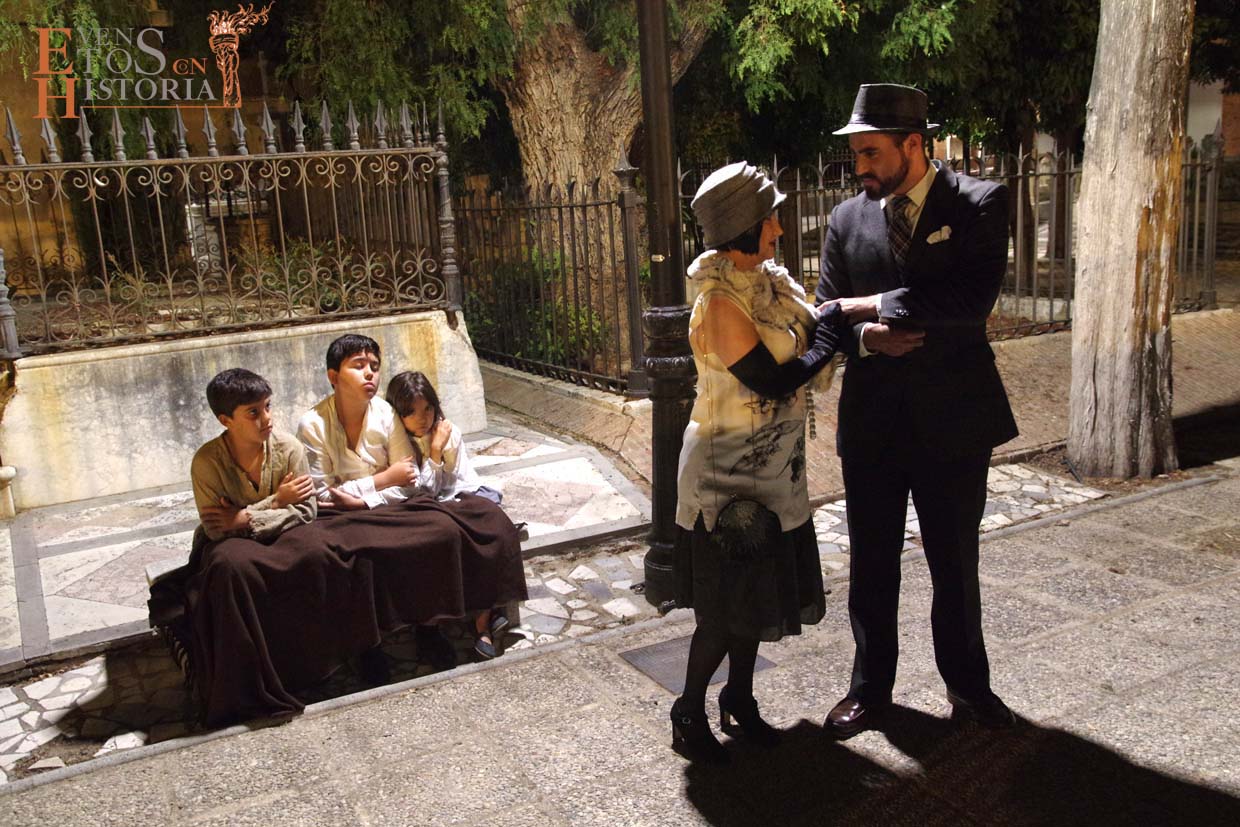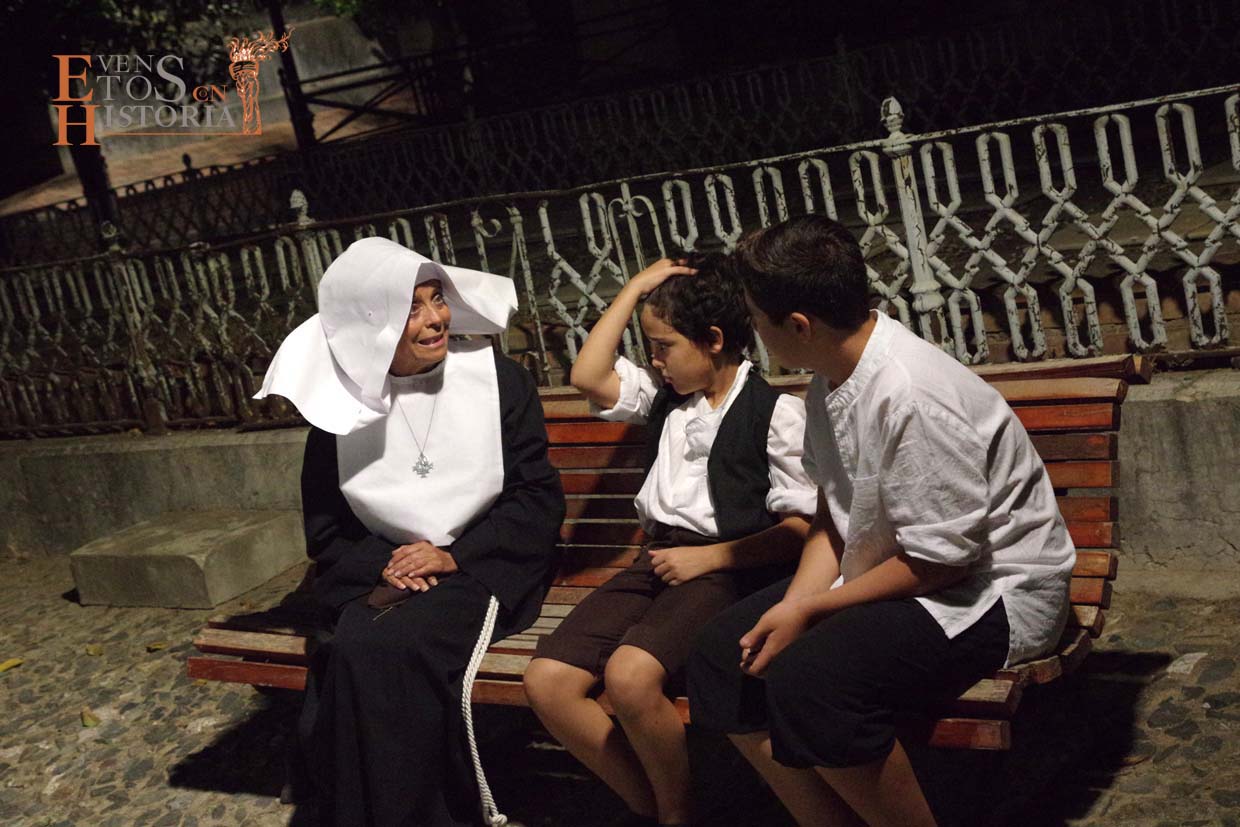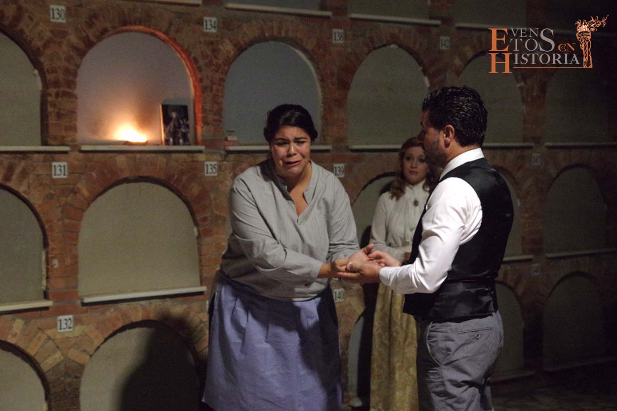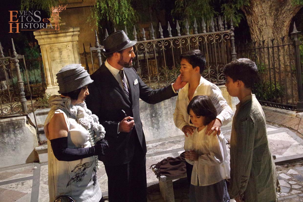 Cuatro anfitrionas hicieron de cicerone, recorriendo las calles de esta ciudad de las almas entre anécdotas, curiosidades, arte funerario y melodías que salían de un violín que lleva acompañando a nuestros viajeros del tiempo desde que se iniciaron estas mágicas noches en San Miguel. La elegancia de Dña. Catalina Solís de la Plata, la chispa de Dña. Jimena, la dulzura de Dña. Julia Madrid y el arte de Dña. Rosario Soler fueron compañeros de viaje entre tramo y tramo hasta llegar a nuestros protagonistas.