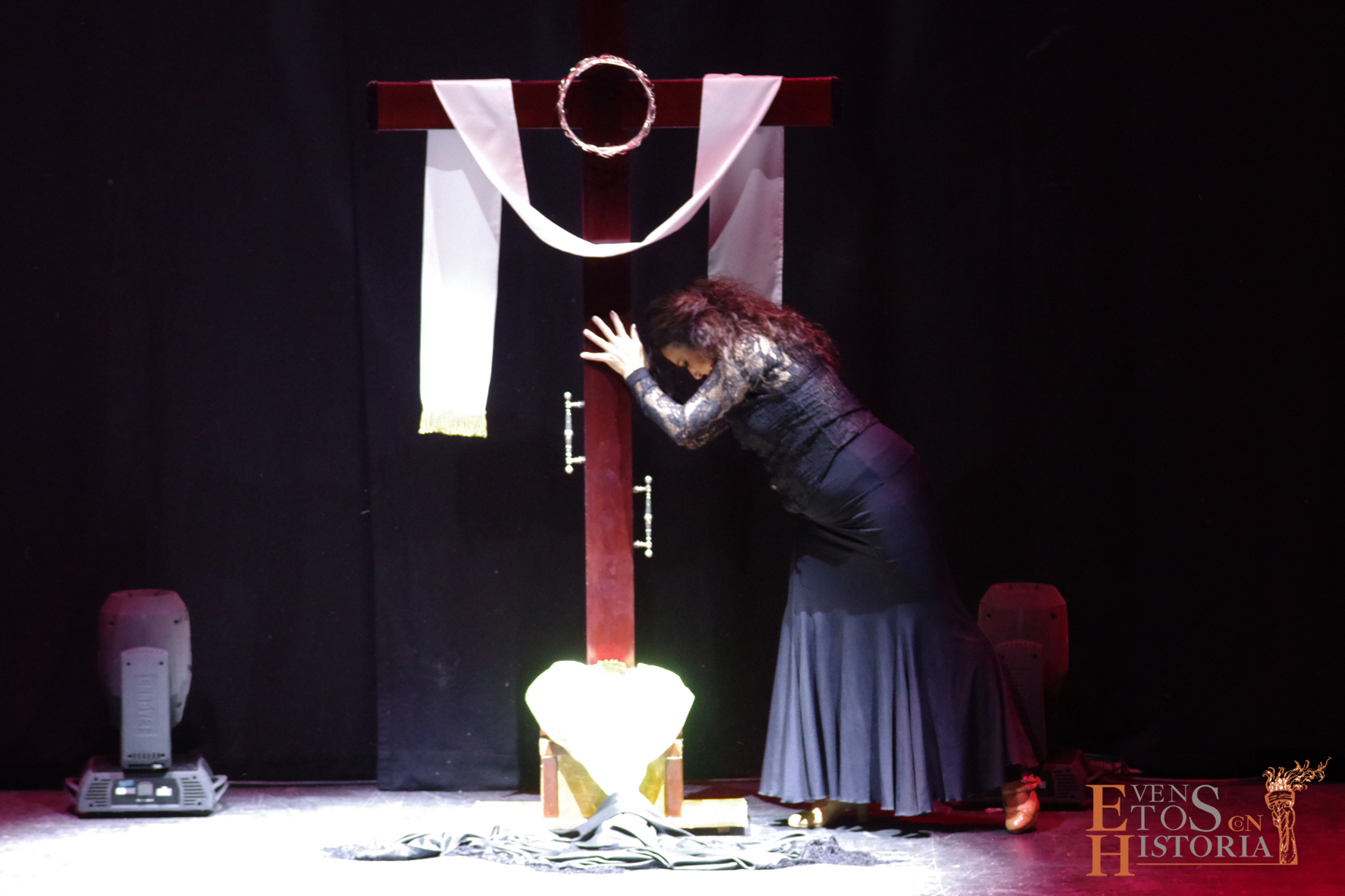 Los pétalos de la flor del flamenco abrieron el acto con “Buscando a Jesús”. Ángeles Reyes, al timbre de Rocío Jurado y Juan Peña “EL Lebrijano”, fue expresando desde la cruz desnuda el dolor de una madre que ya no encuentra a su hijo…