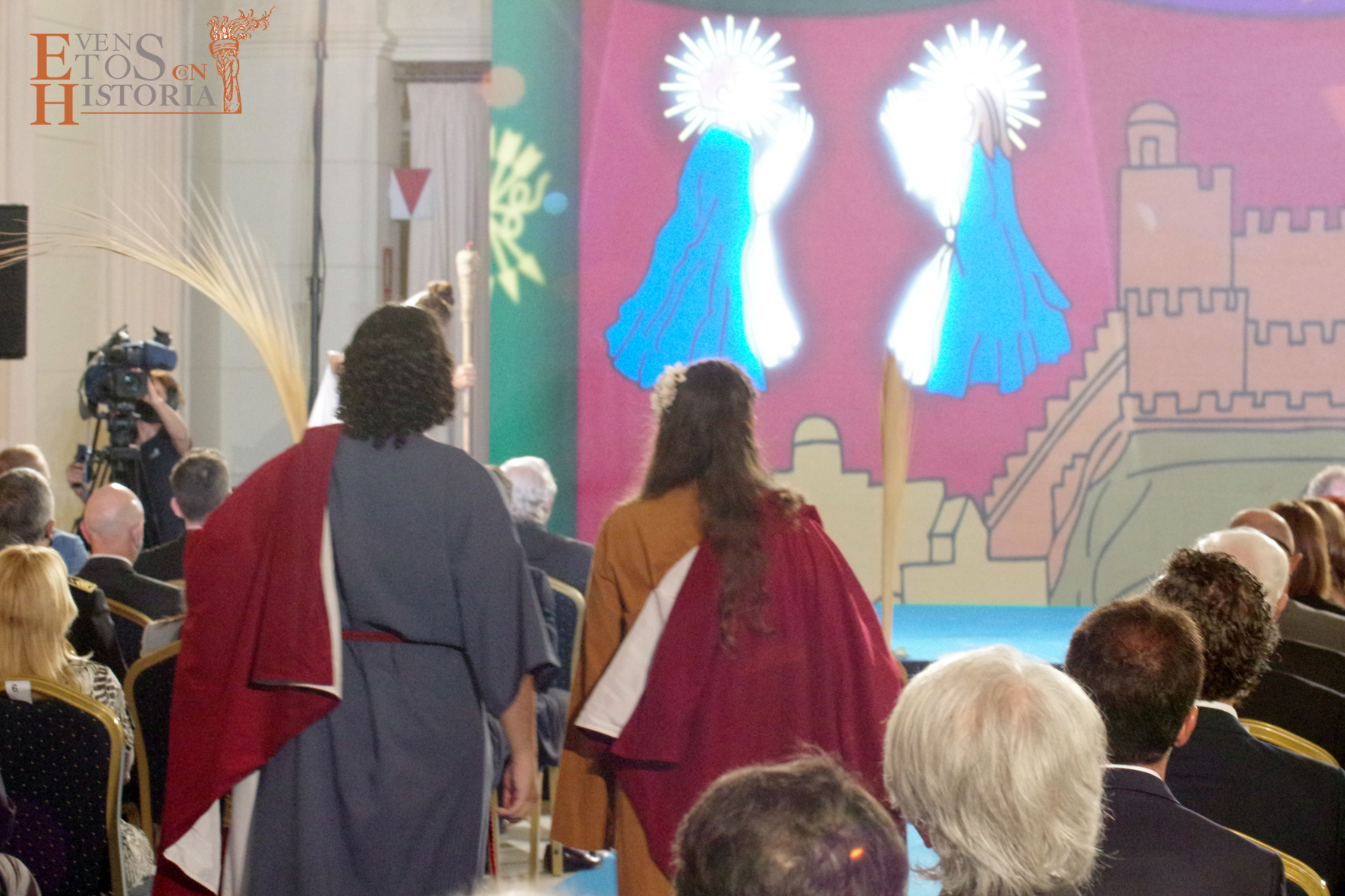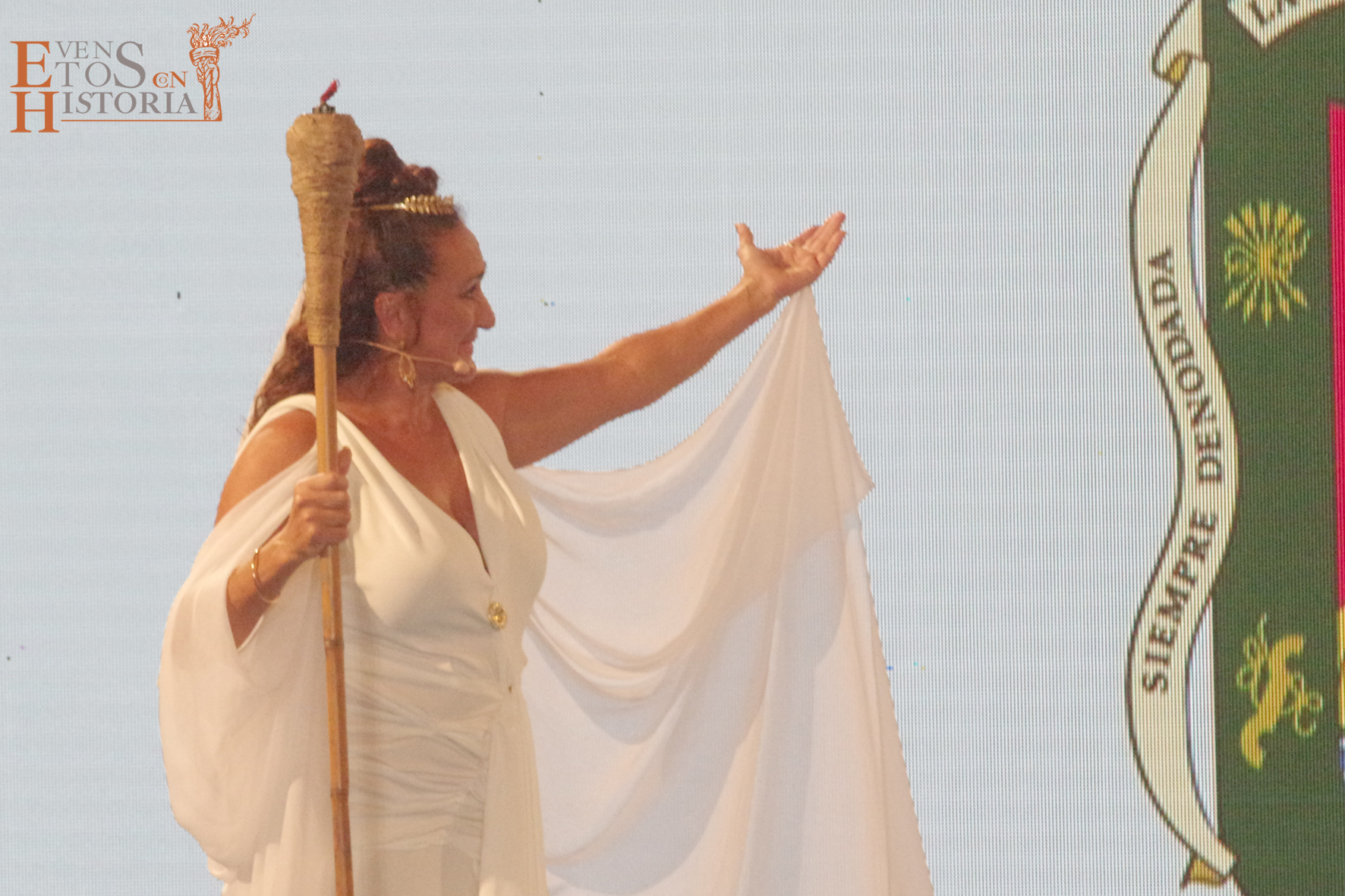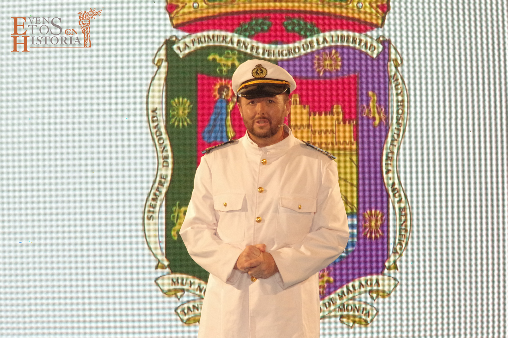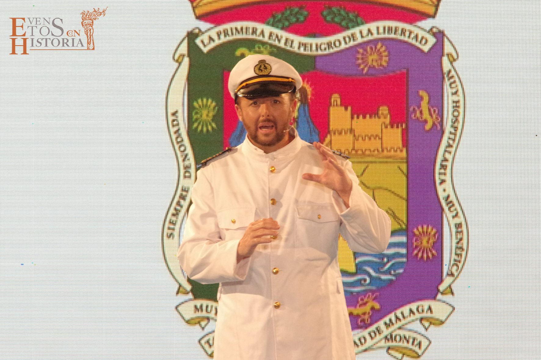 Eventos con Historia abrió la ceremonia de entrega de los galardones de los Premios Ciudad de Málaga 2021 con la teatralización del Escudo de la ciudad. La alegoría de Málaga irrumpió entre el público para contarnos su historia. Habló de cómo nació y fue evolucionando hasta ir consiguiendo todos los títulos que en la actualidad la distinguen: