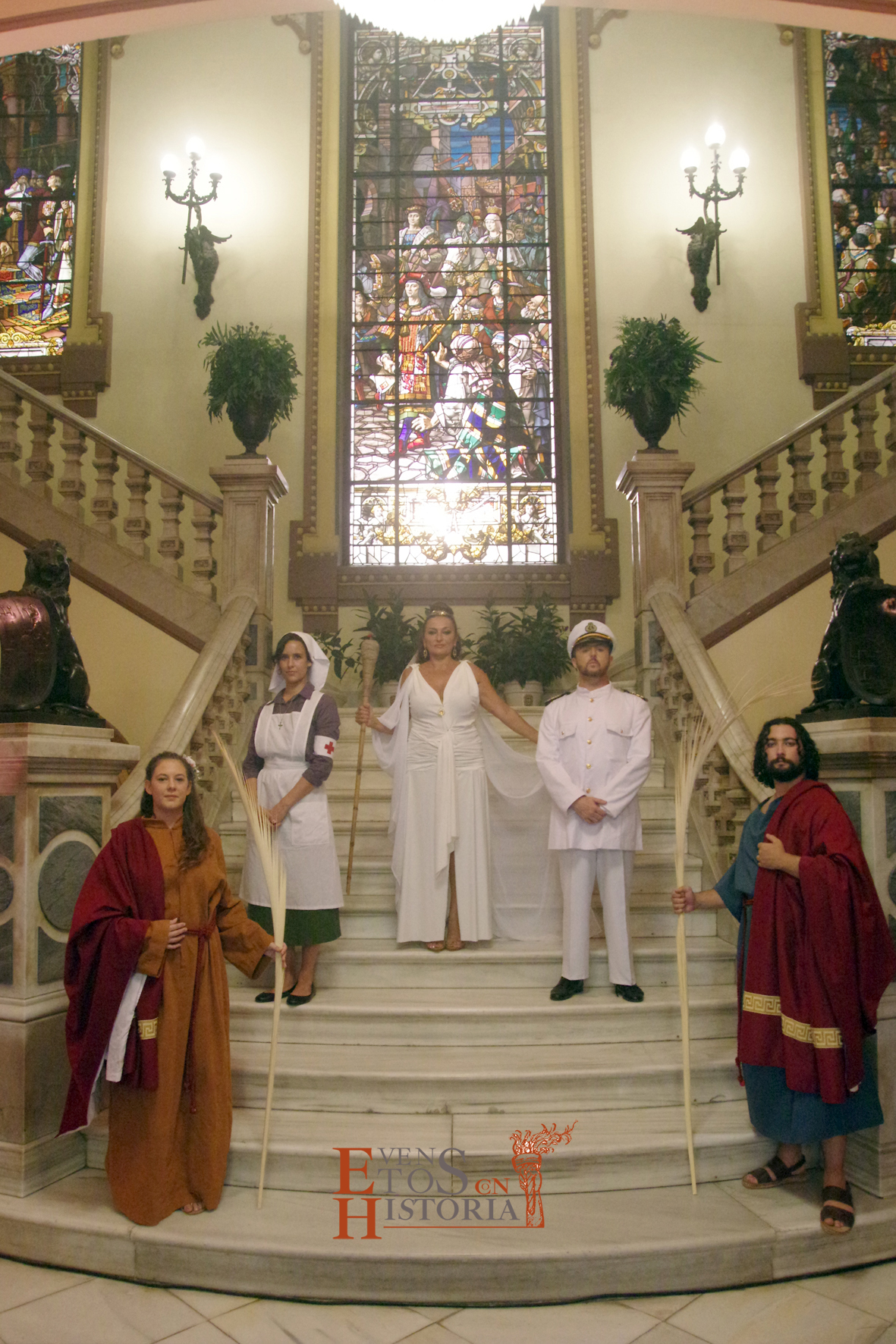 De todos ellos, dos fueron representados: Muy Benéfica en la personificación de una enfermera anónima que atendió a los heridos en la guerra de África y Muy Hospitalaria a través de Otto Lhemberg, uno de los marinos rescatados del naufragio de la fragata alemana «SMS Gneisenau».