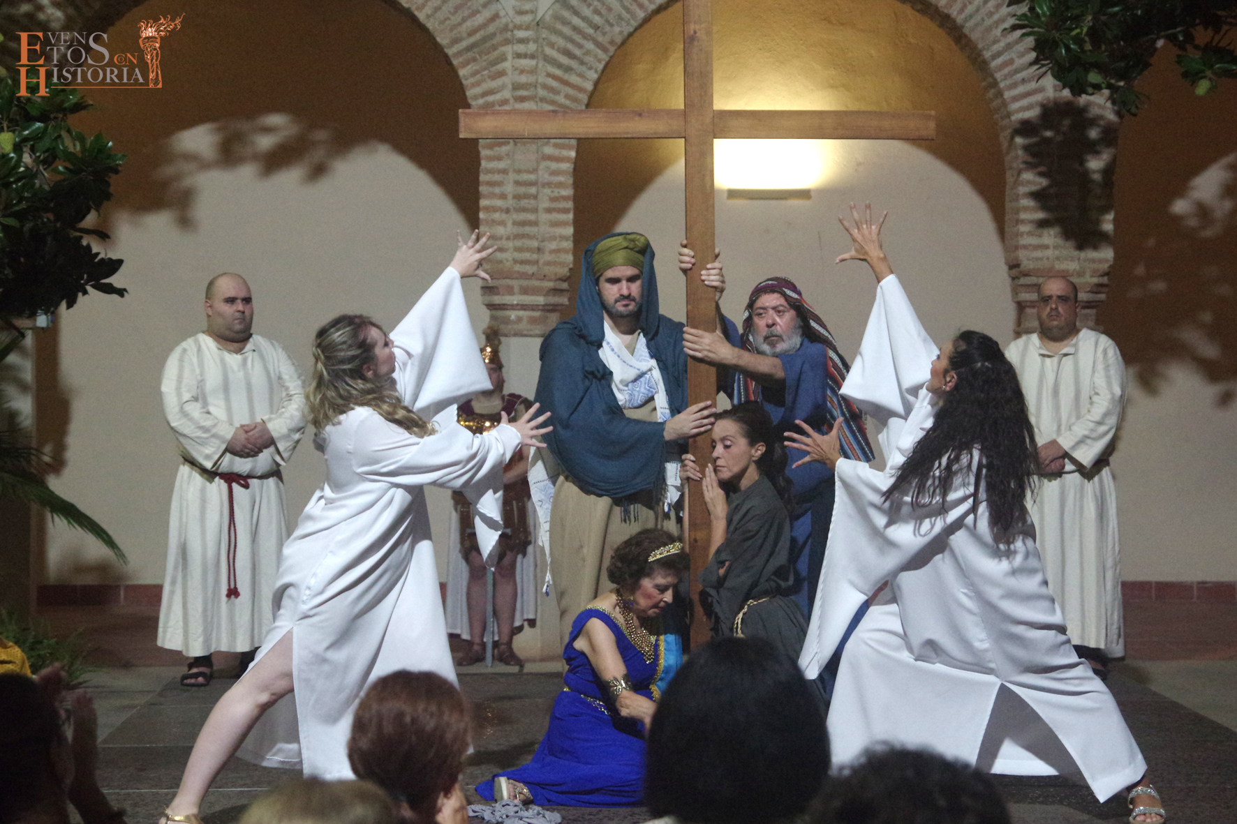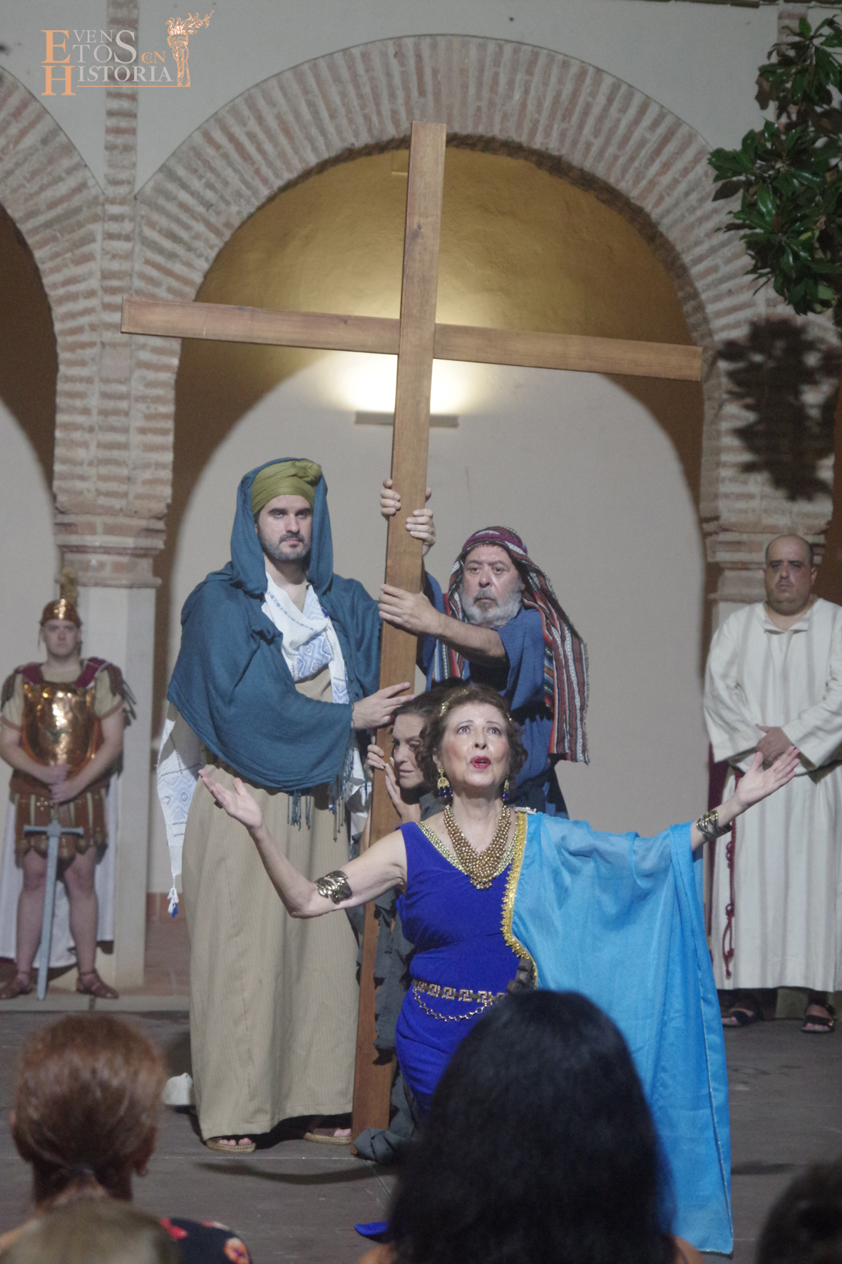 La obra teatral arrancaba con un solemne cortejo para introducir a Santa Elena y a su hijo, el emperador Constantino. La santa emprende el viaje y una danza a modo de ofrenda a sones de Jerusalén presagia lo que iba a suceder: la empresa exitosa del hallazgo de la cruz donde murió Jesucristo, trama central de la obra llena de emoción, acción, giros dramáticos, sorpresa, musicalidad y una gran puesta en escena.