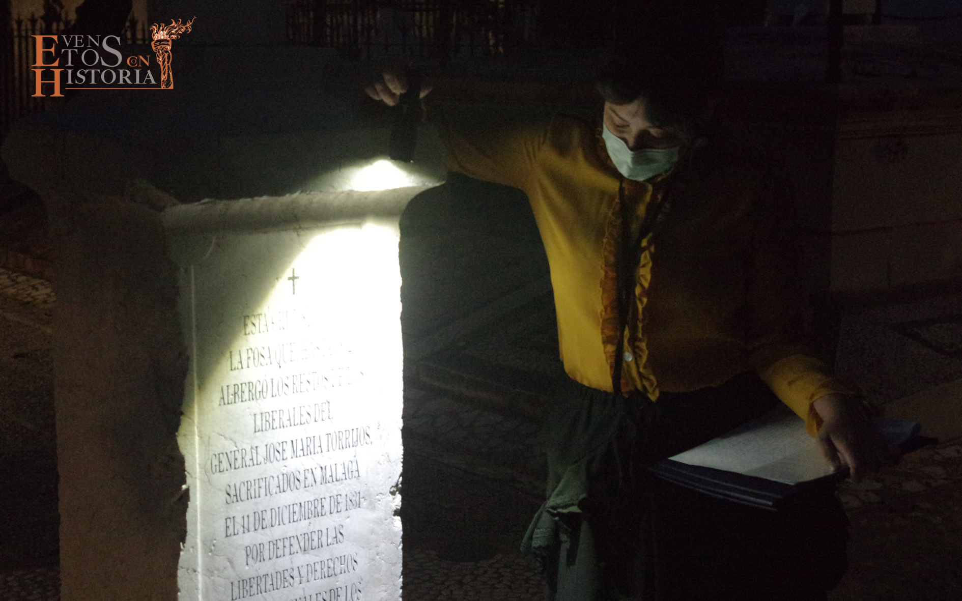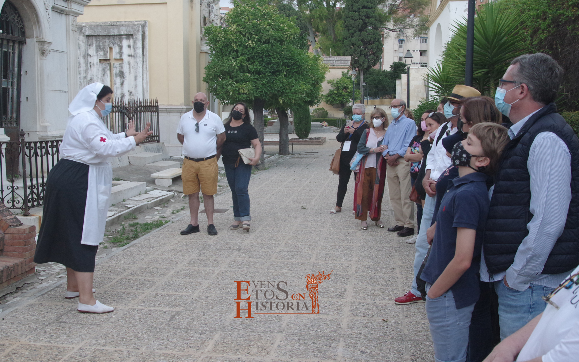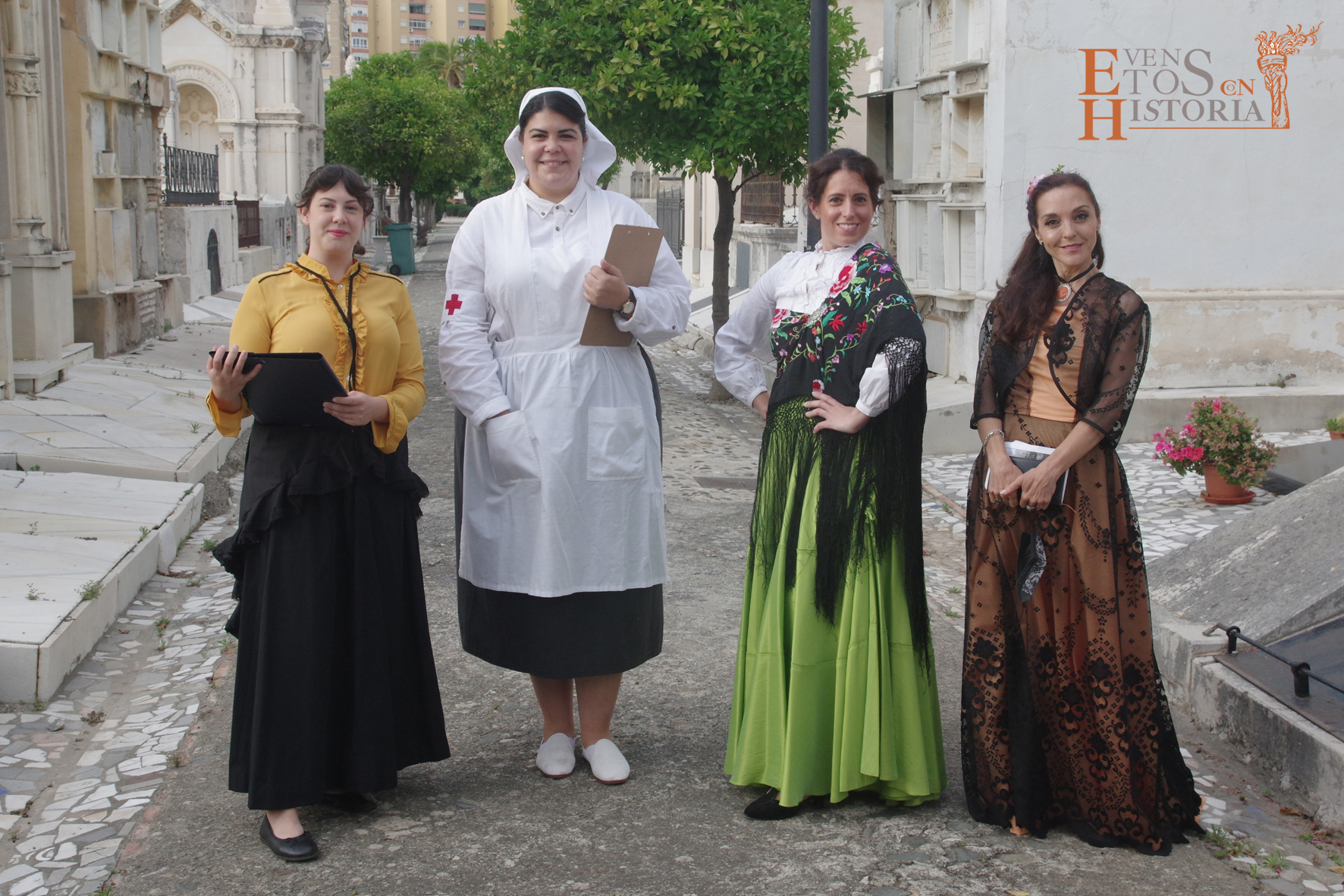 Cuatro fueron los grupos que desde las ocho de la tarde y cada cuarto de hora fueron adentrándose en este viaje al camposanto a través de unas anfitrionas muy singulares: la actriz Rosario Pino, hija predilecta de Málaga; la enfermera María Cruz, que formaba parte del equipo del Dr. Gálvez Ginachero; la célebre y distinguida Amalia Heredia y la prematura viuda del general José Mª Torrijos, Luisa Sáenz de Viniegra, quien escribiera sus memorias.