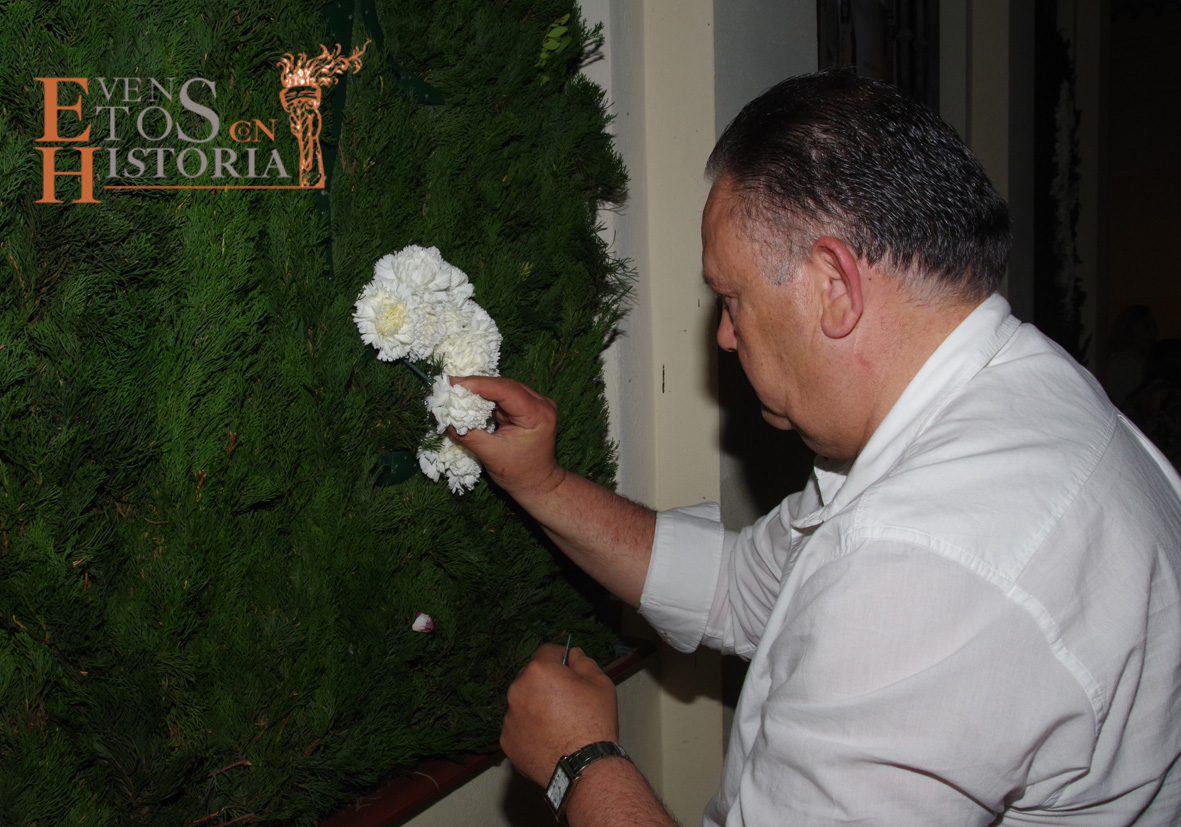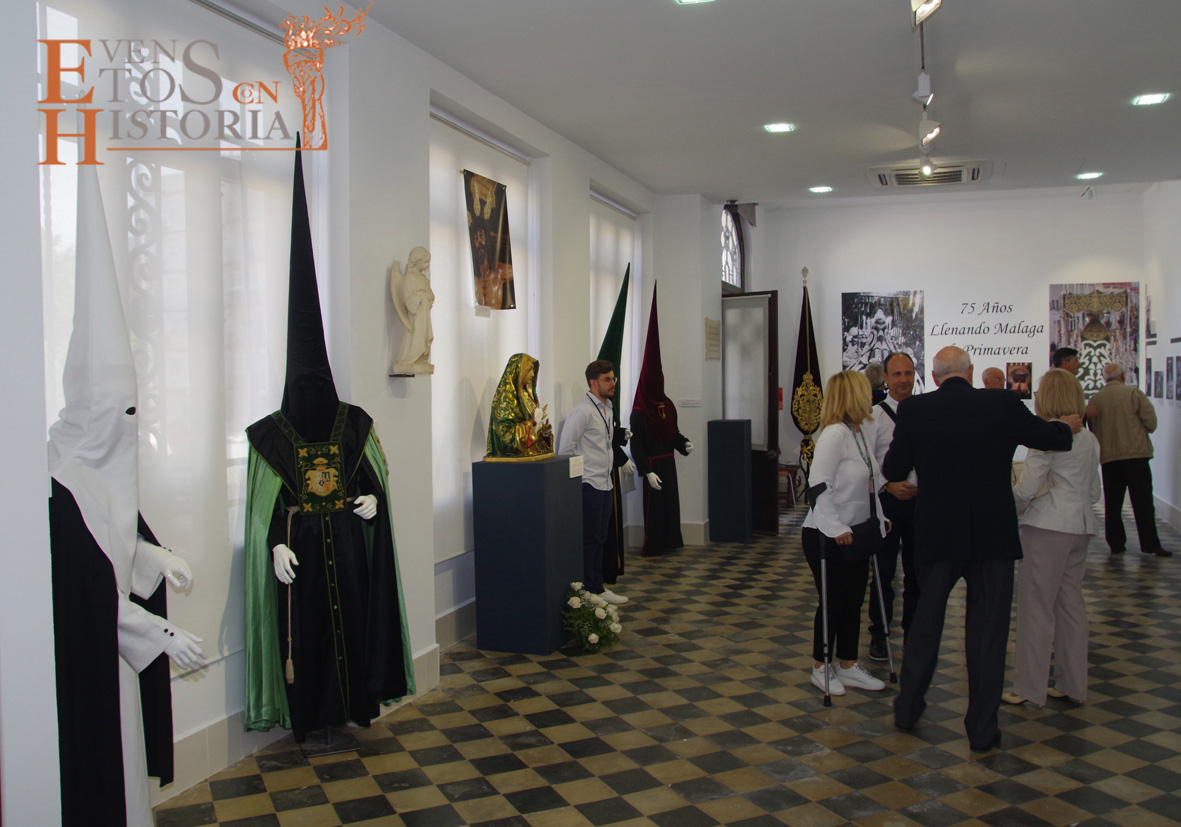 Pero esta actividad no fue todo lo que se pudo ver en San Miguel. La exposición dedicada a la historia del manto de la Virgen de Las Penas «75 Años Llenando Málaga de Primaveras», organizada por la Hermandad de Las Penas, fue inaugurada en la antigua Sala de Duelos, hoy Sala de Actos Culturales, contando con la presencia del comisario de dicha exposición, Miguel Navas; el director de San Miguel, Jorge Serra; la Hermana Mayor de esta corporación nazarena, Ángela Guerrero, y Salvador Navas, diseñador de la exposición. Fueron muchas las personas que acudieron a esta cita, no solo público de una noche mágica, sino empresas florales que hicieron demostraciones en directo de la colocación de diferentes flores en una estructura con un fondo de cipreses similar a la que lleva la Virgen de las Penas en su trono procesional.