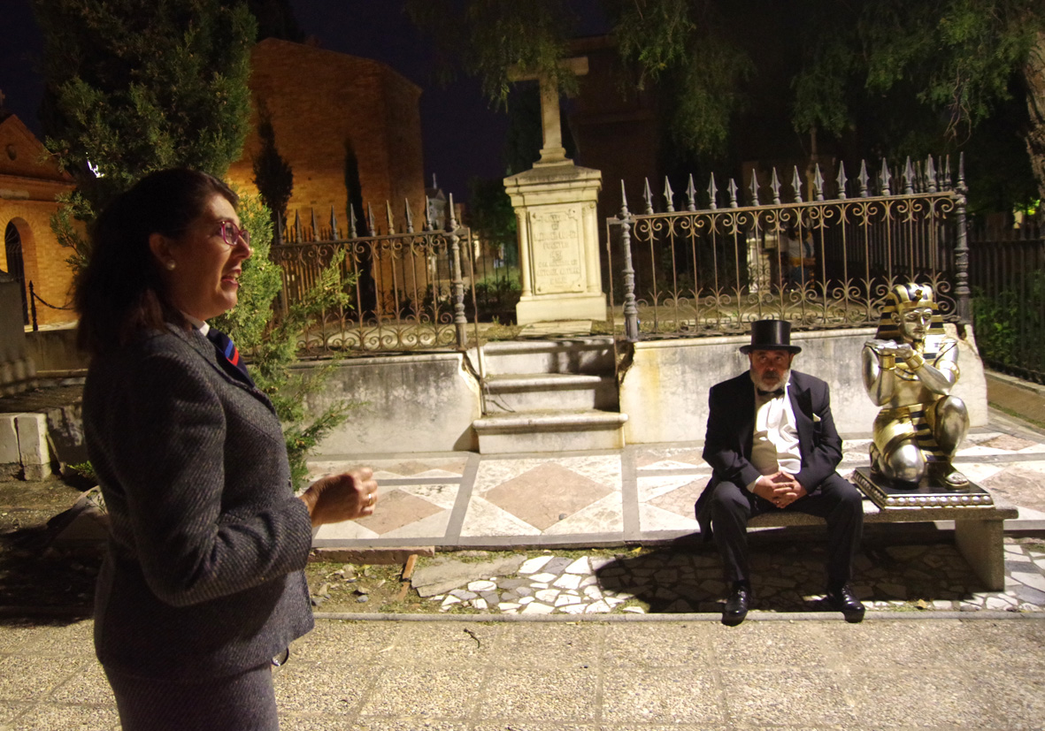 Damos nuestra más sincera enhorabuena a todo el equipo de Eventos con Historia y agradecemos a Parcemasa el seguir confiando en nosotros para producir visitas tan inolvidables como esta. Asimismo, agradecemos la colaboración de la Fundación Málaga, la empresa de transportes Arsán y Visitas Virtuales Monumentia, que aportaba un zeppelin virtual a la entrada del camposanto que debido a las fuertes rachas de viento no se pudo instalar.