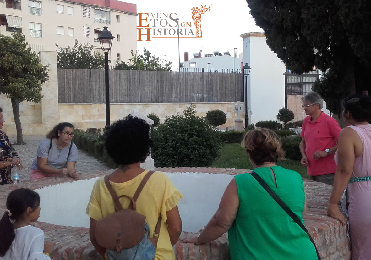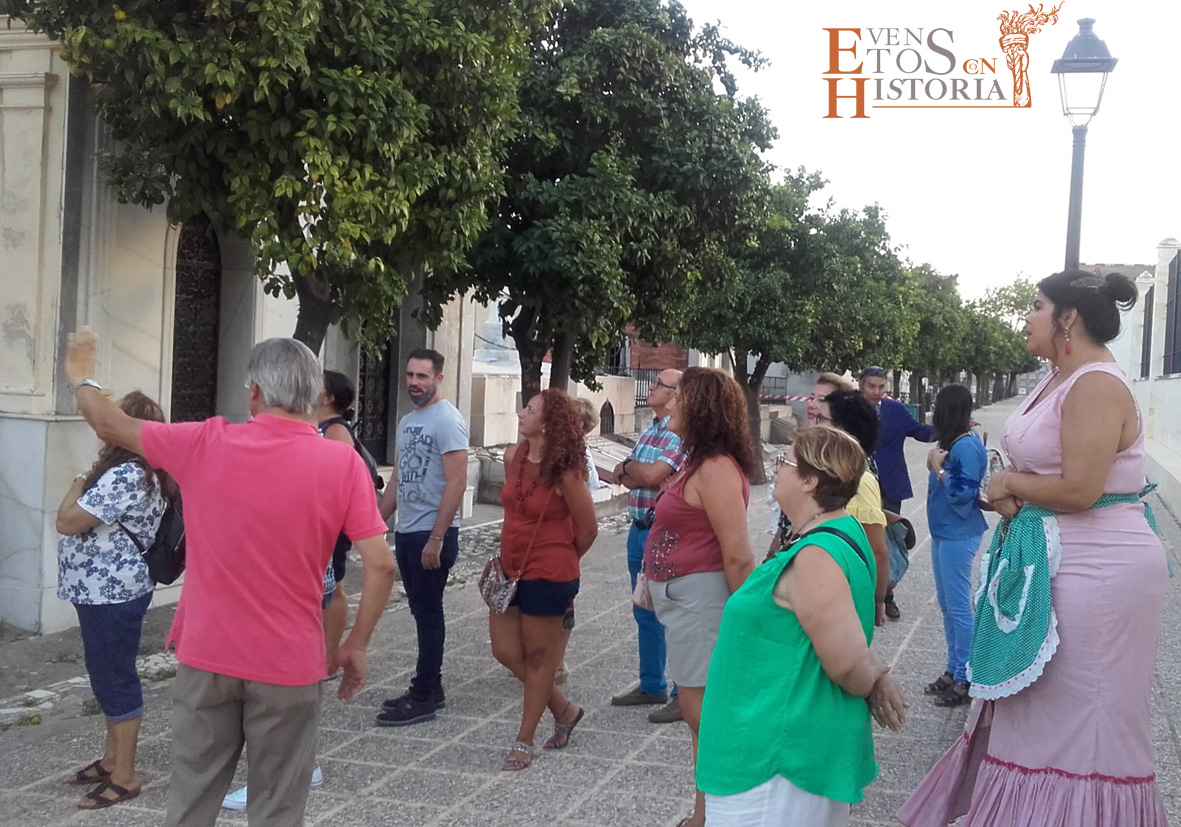 El grupo comenzó la explicación en el interior de la solemne capilla de los Heredia. Una vecina del barrio que pasaba por allí, interpretada por Carolina Aguilar, puso la sorpresa a la actividad pues con su desparpajo contribuyó a la explicación de Eduardo aportando algún que otro dato y anécdota al respecto. De esta forma, se hizo más amena la visita que tomó un carácter participativo. Así, entre piedras, datos, anécdotas y risas, fue pasando la tarde noche de la jornada hasta llegar a su fin.