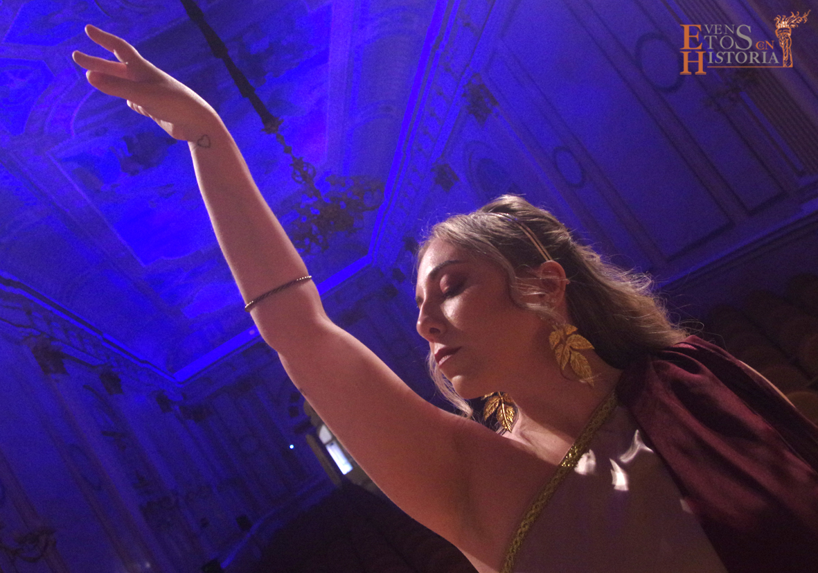 Dentro de la programación de La Noche en Blanco de Málaga, la Sala Unicaja de Conciertos María Cristina acogió una visita guiada teatralizada en la que se hicieron presentes divinidades de la mitología griega. Algunas de ellas están plasmadas en pinturas de este espacio y a la vez fueron ellas quienes inspiraron a los artistas que las llevaron a la eternidad. En esta mágica noche aparecieron para los tres grupos que se dieron cita.